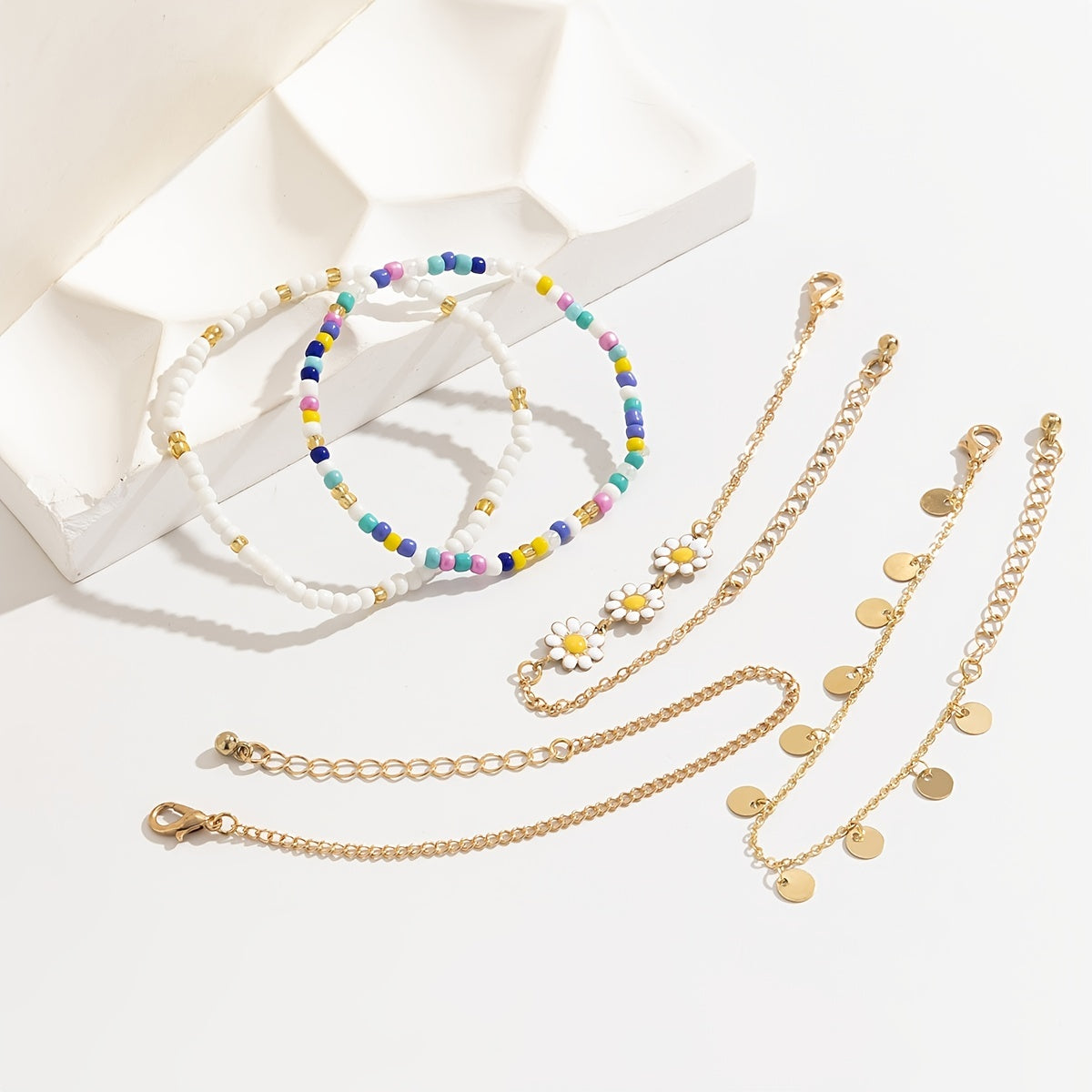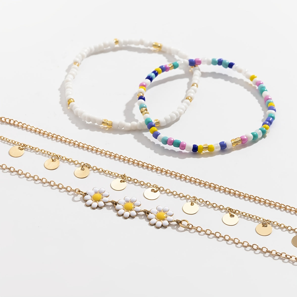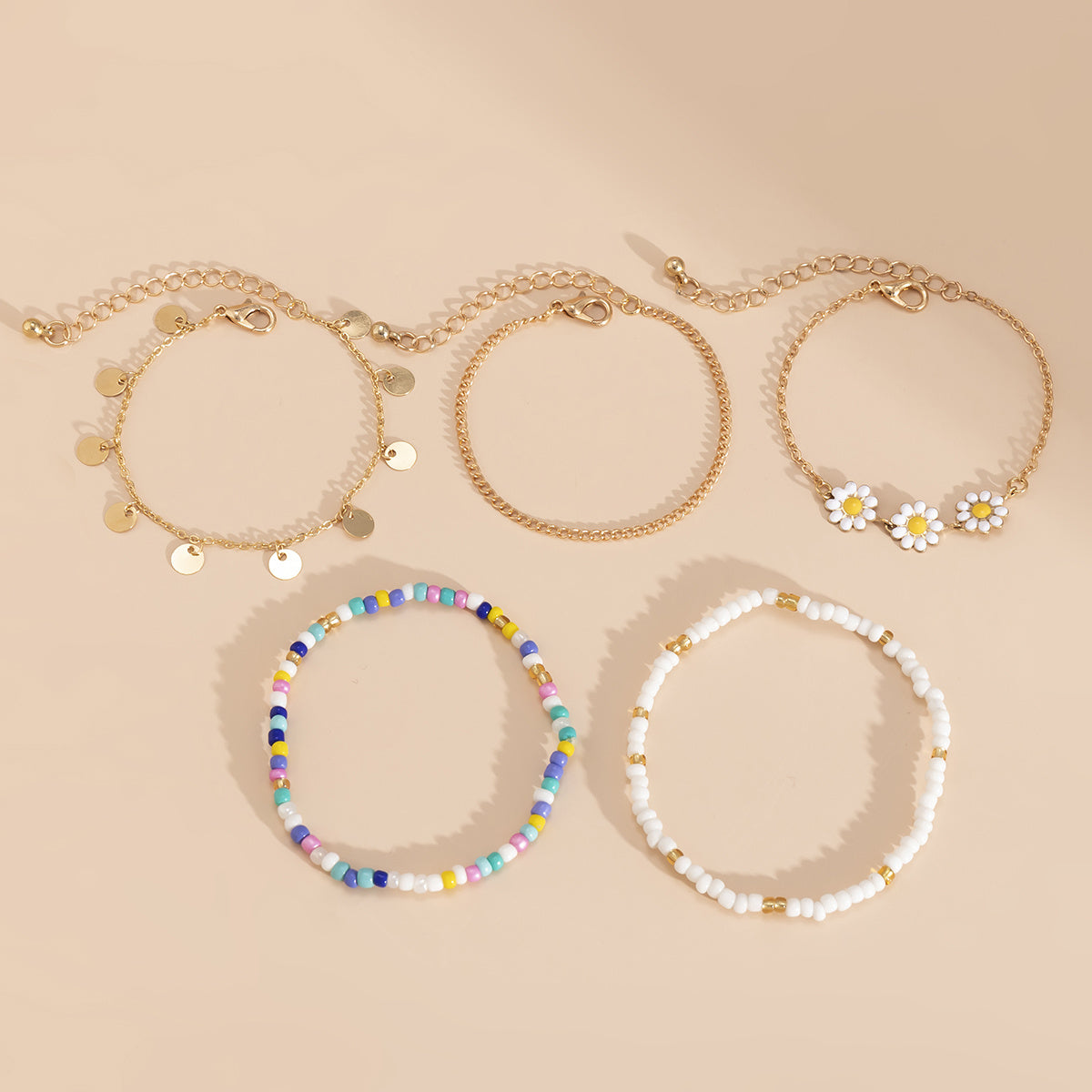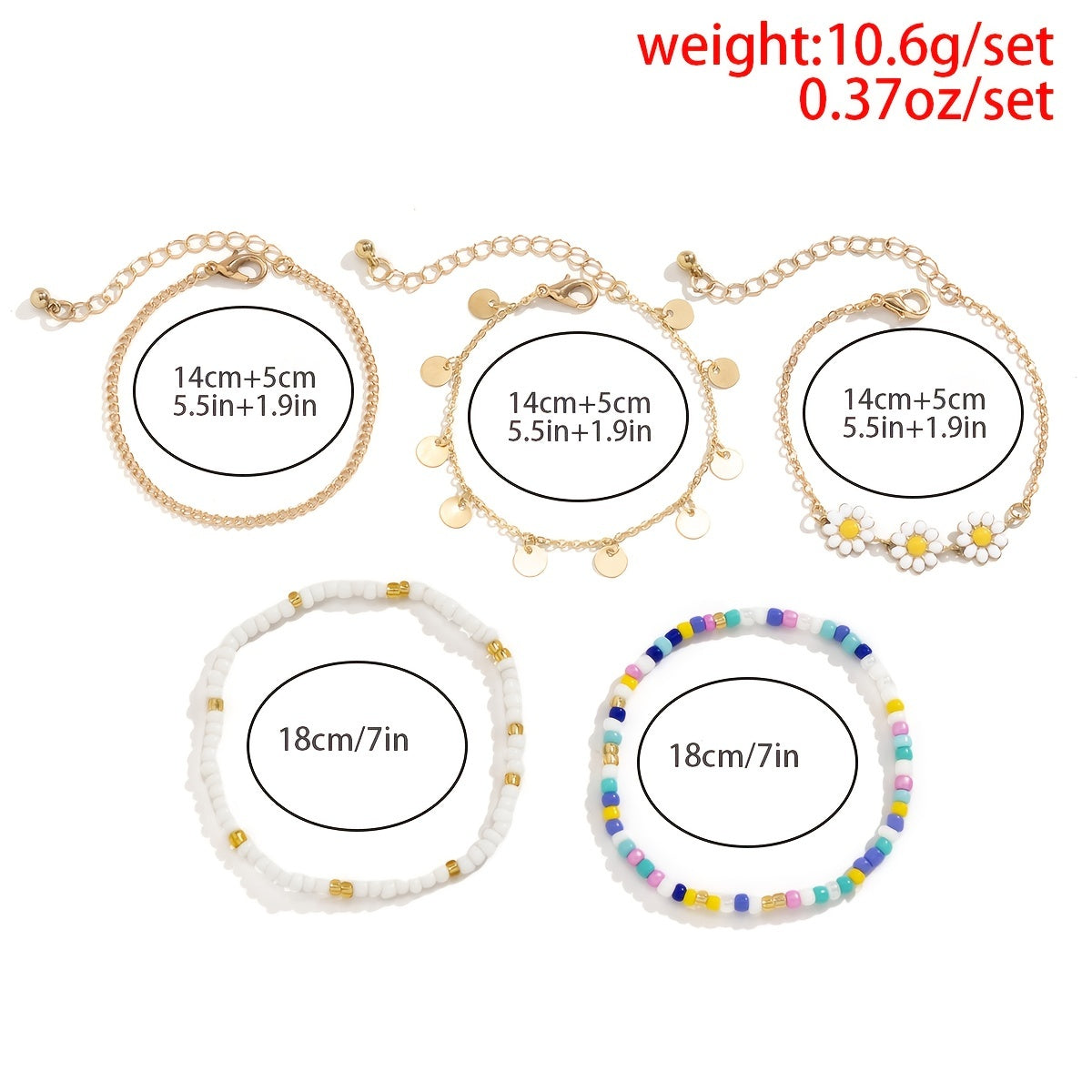 Enhance your summer beach look with this 5-piece bracelet set. Perfect boho style accessories to complement your outfits.