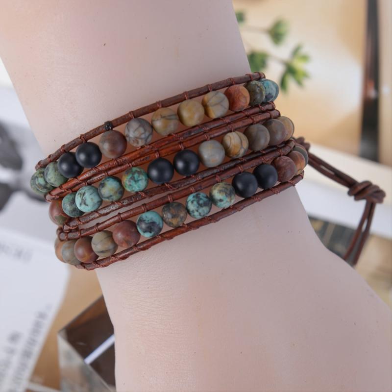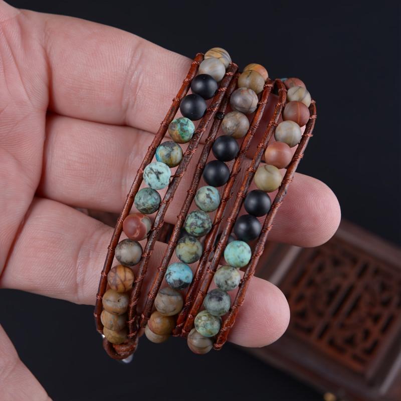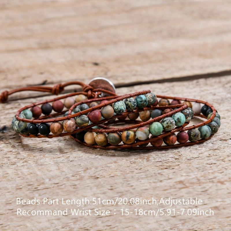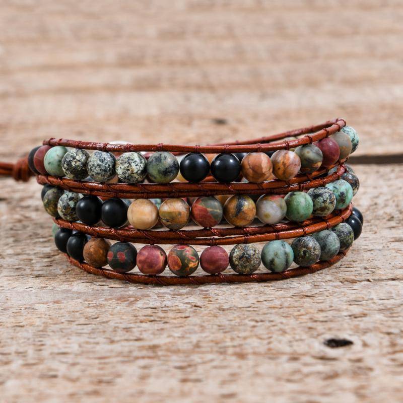 Elevate your bohemian look with this natural stone beaded bracelet that wraps around your wrist three times. Perfect for adding a touch of earthy charm to any outfit.