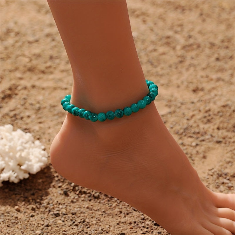 Add a touch of boho charm with this round turquoise beaded anklet. This vintage-inspired ocean style ankle bracelet is perfect for women and girls.
