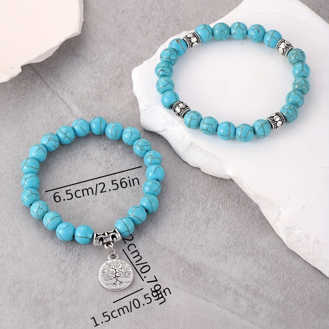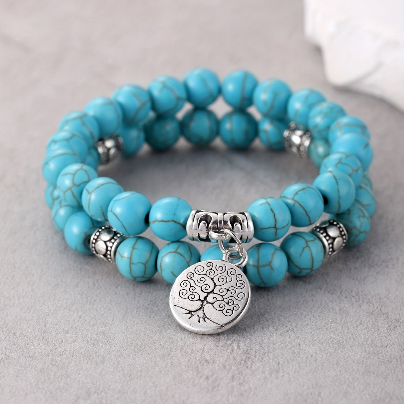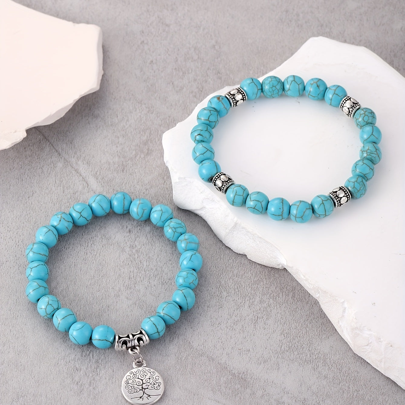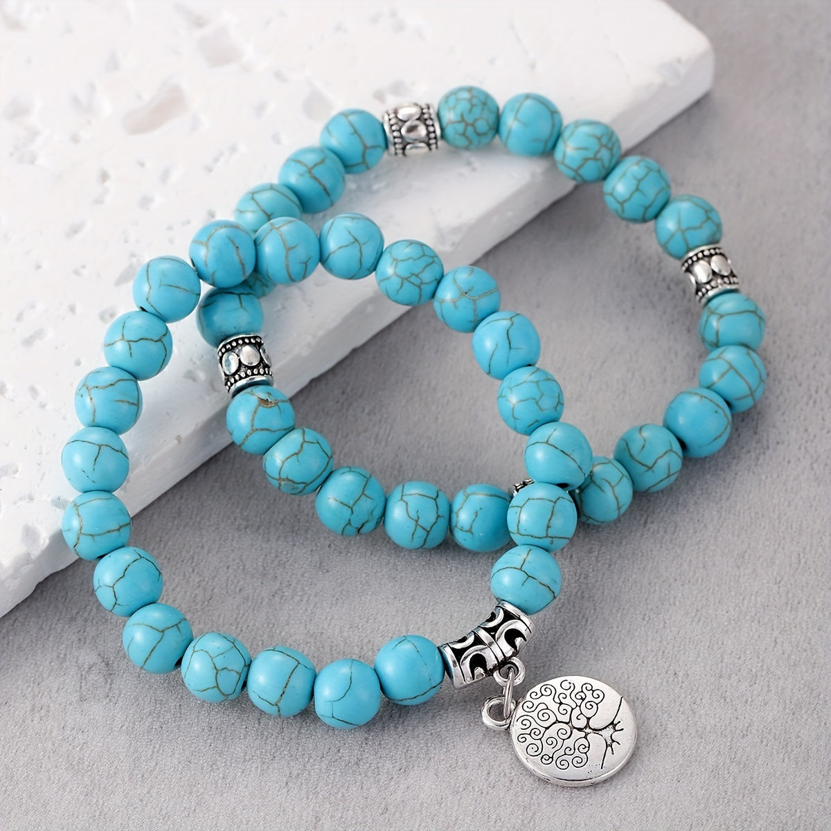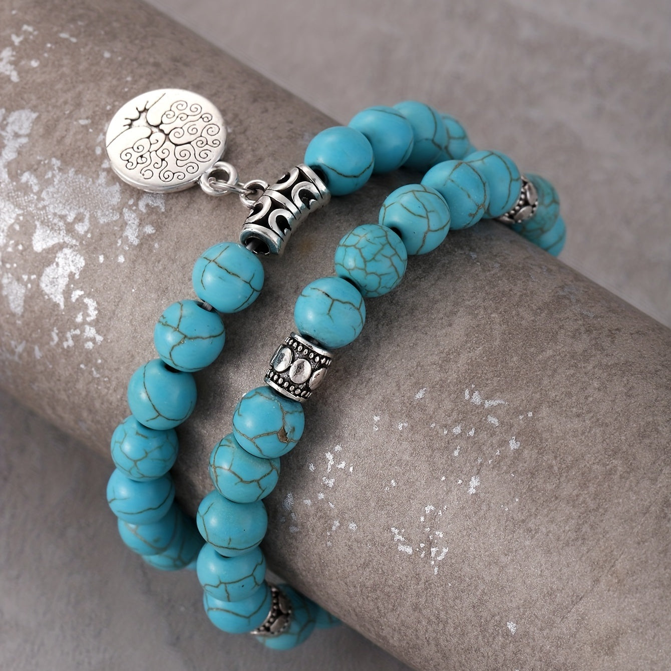 Boho Turquoise Tree Of Life Charm Yoga Bracelets Set