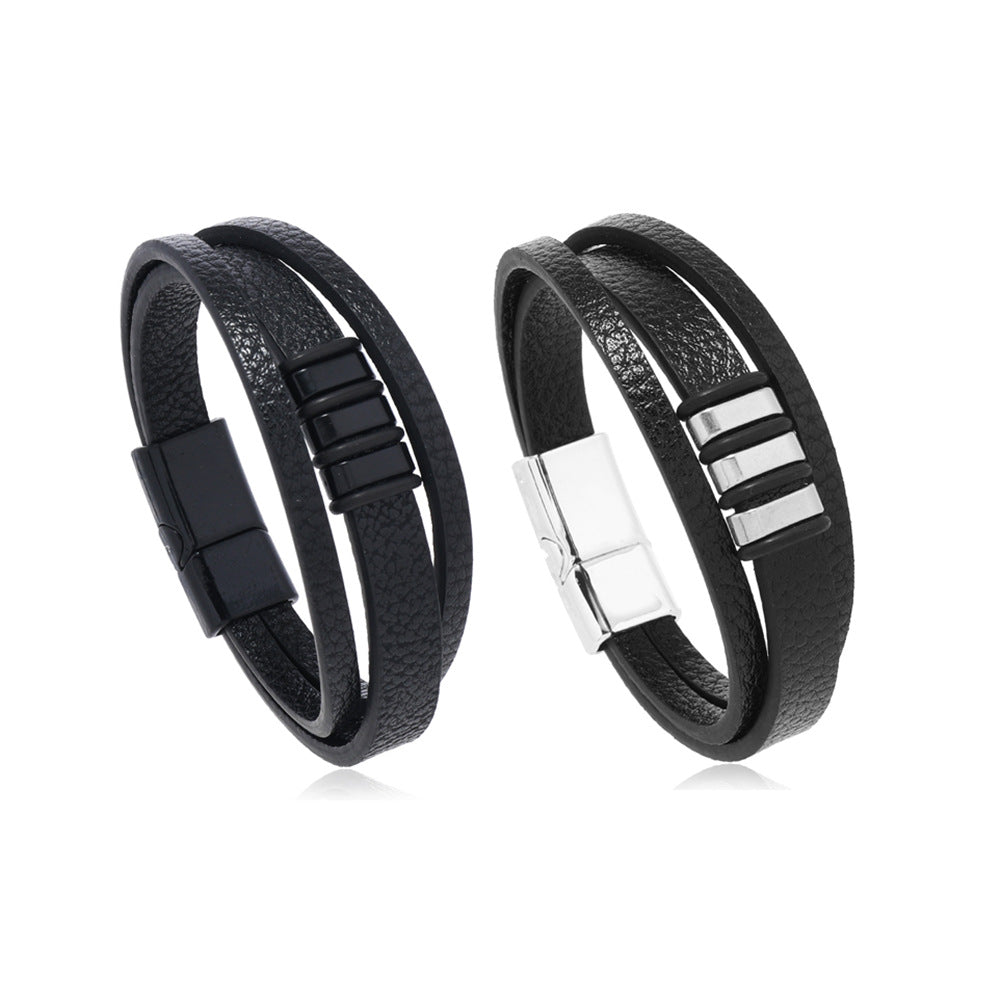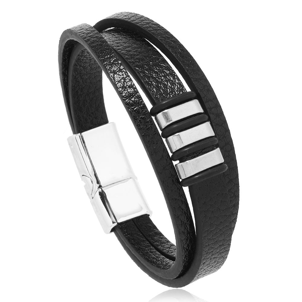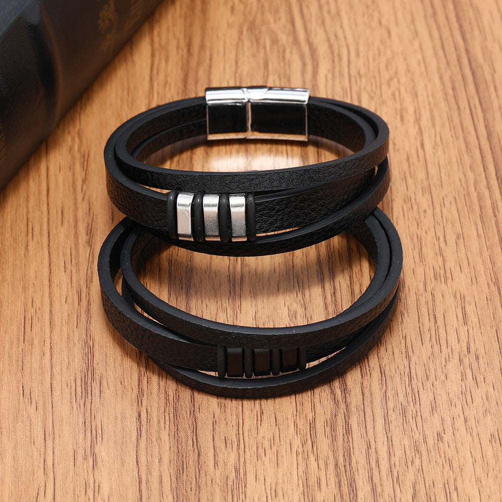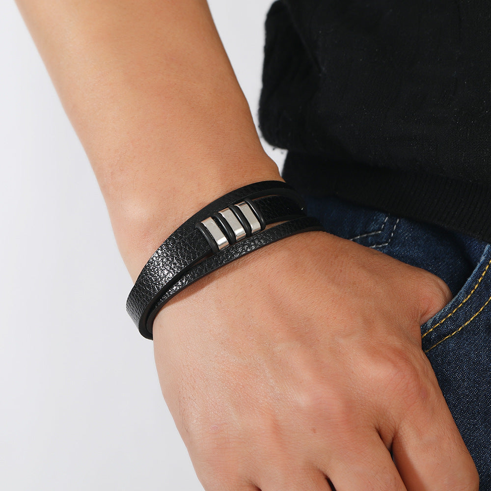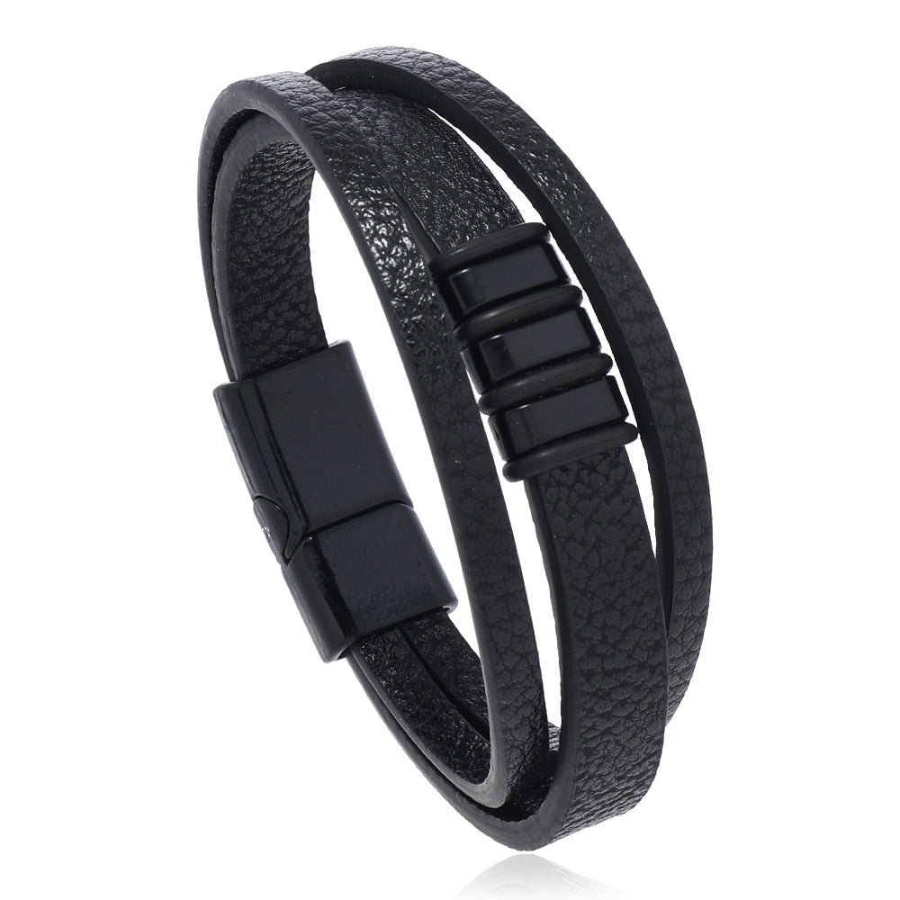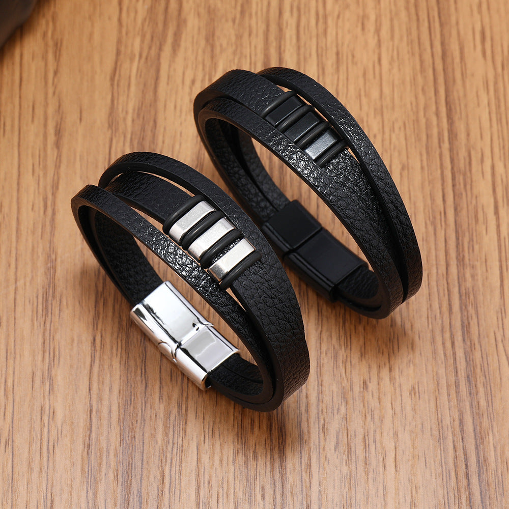 Braided Leather Bracelet Retro Leather Bracelet Magnetic Cuff Bracelet