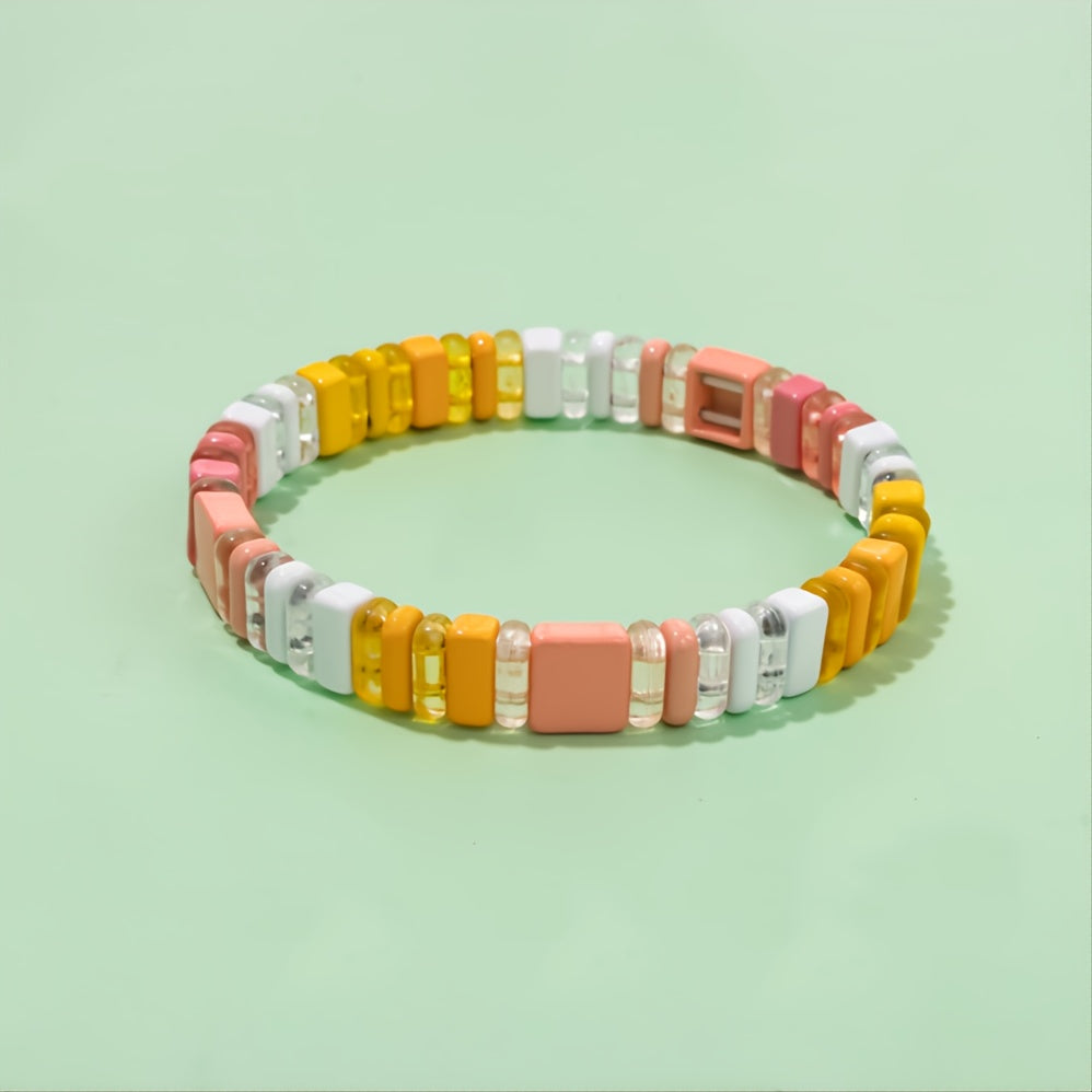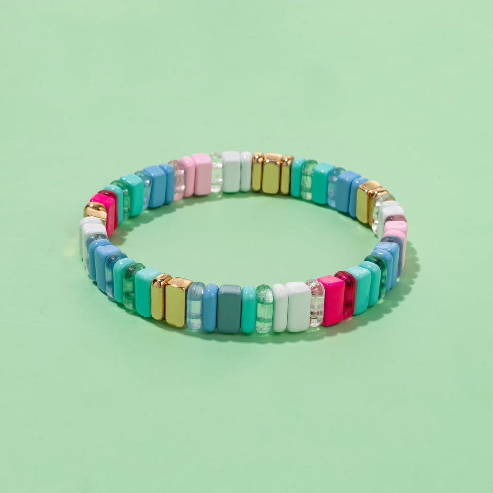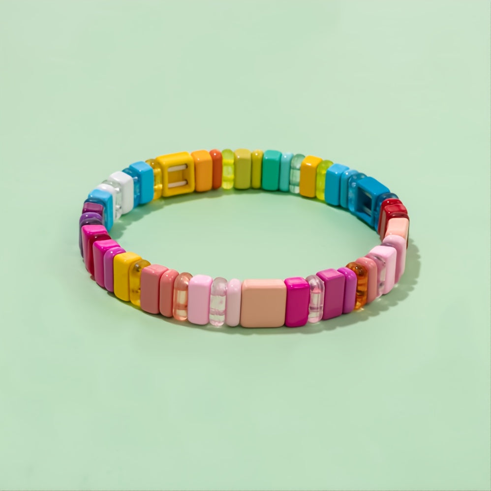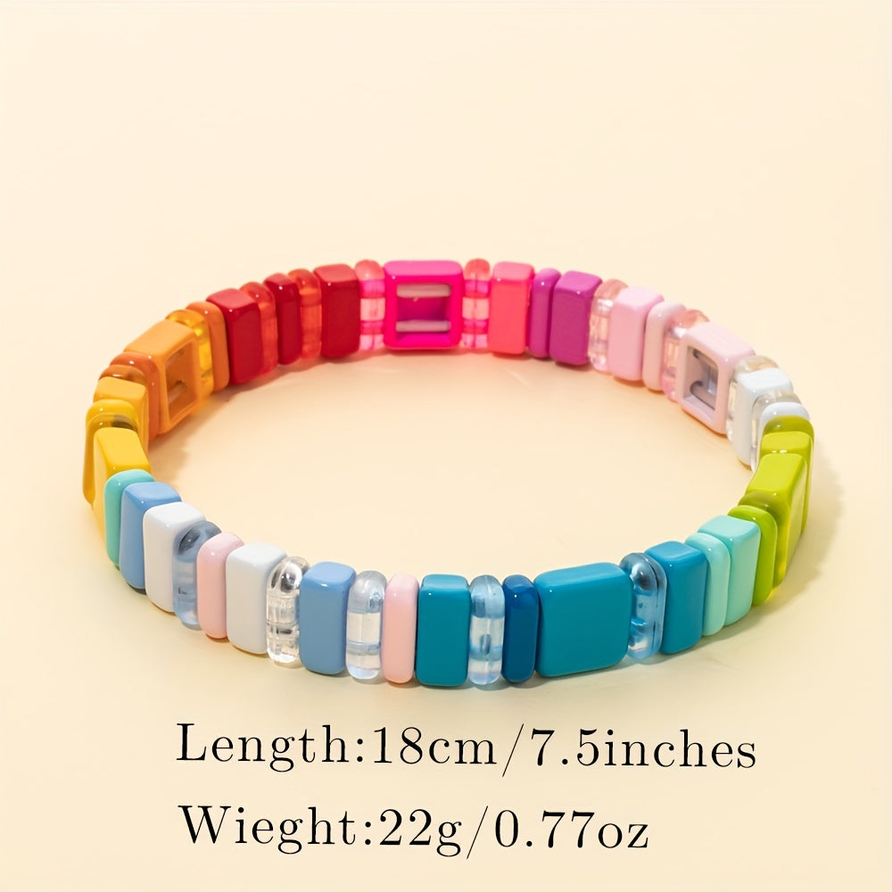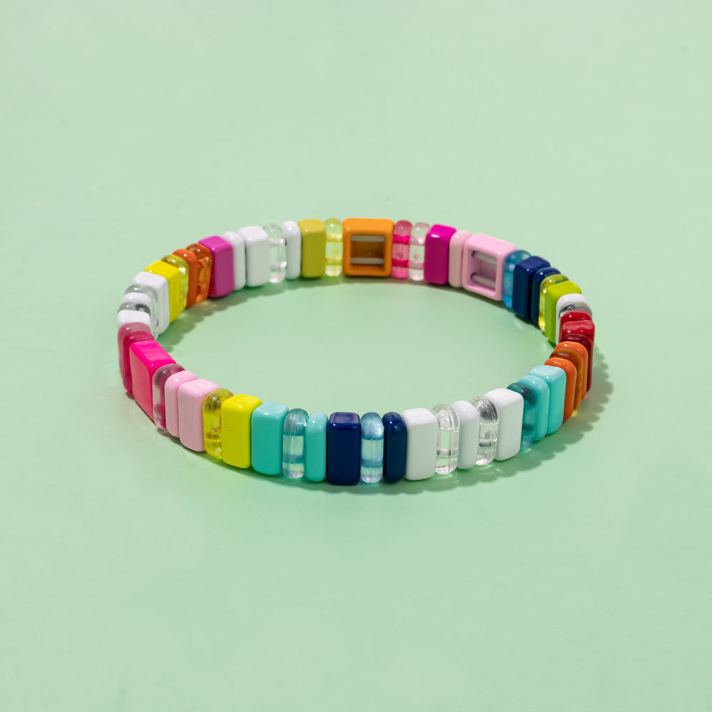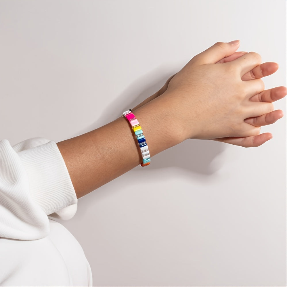 Add a pop of color to your outfit with this vibrant enamel beaded bracelet. This elastic bracelet is designed for women and makes a perfect gift for any occasion.