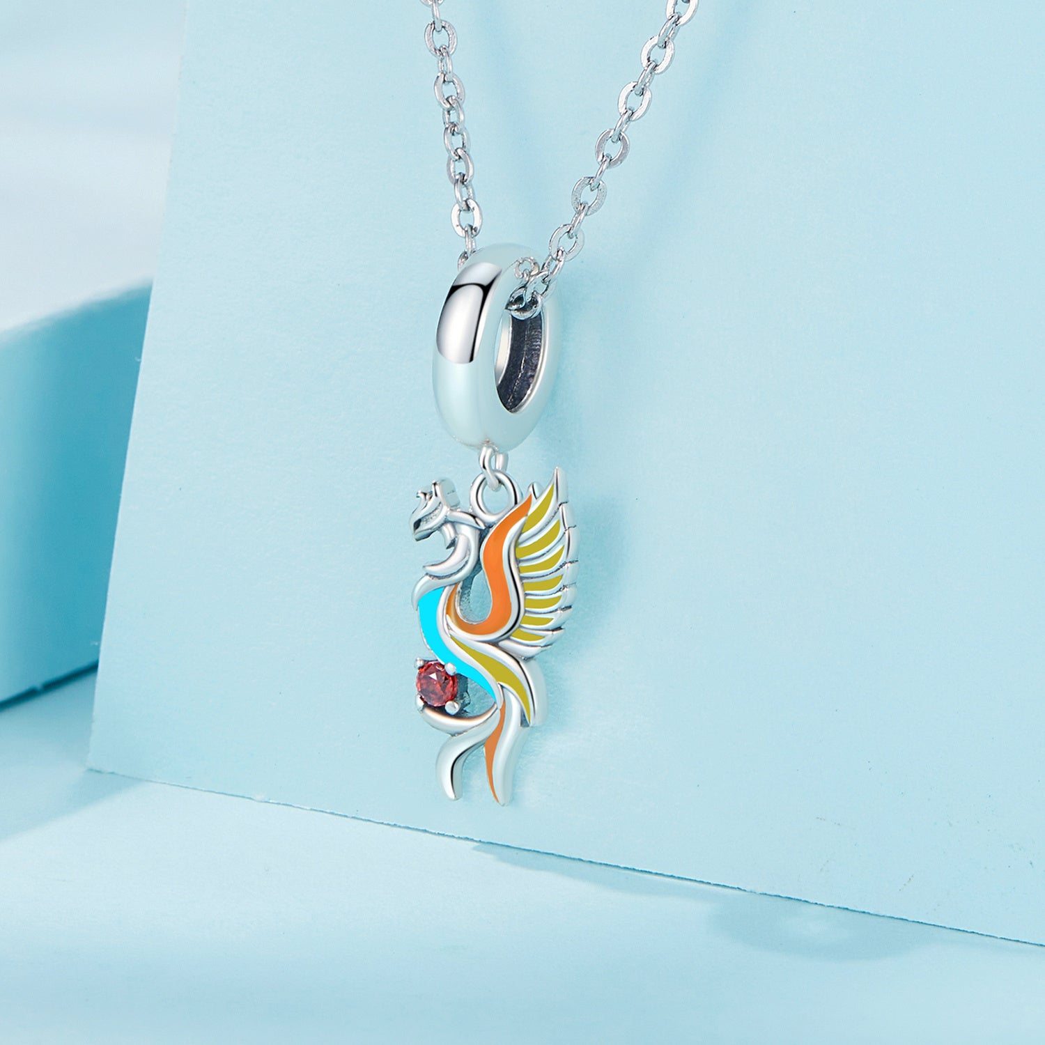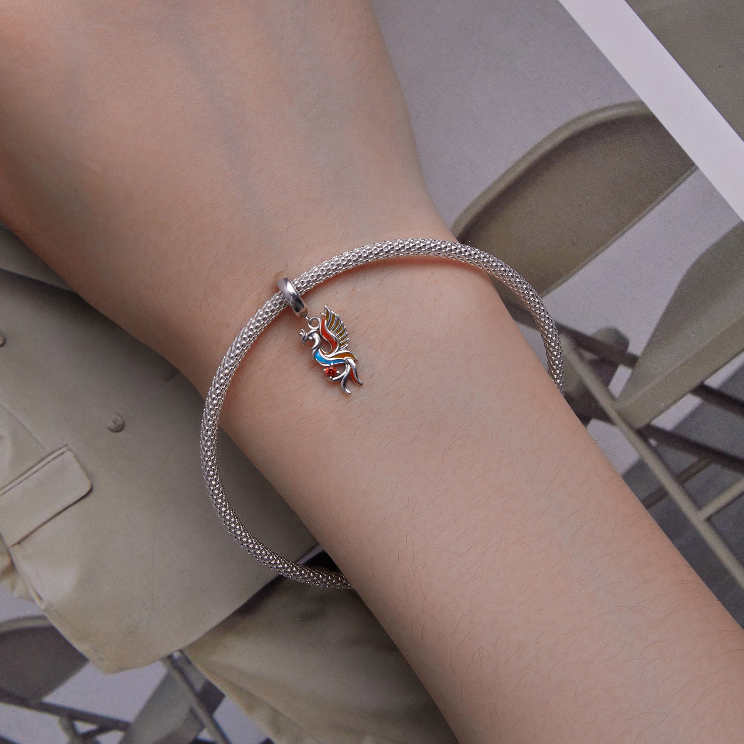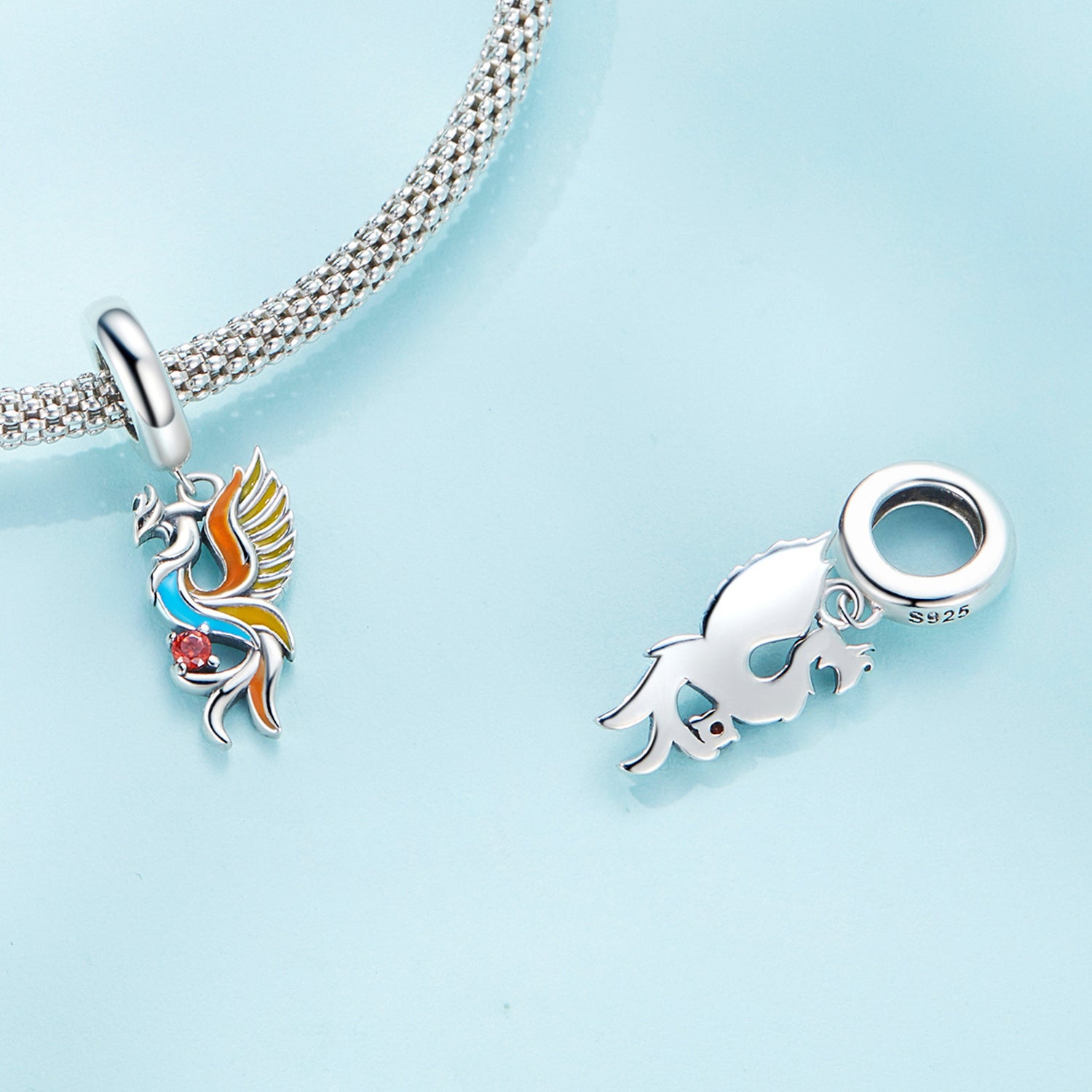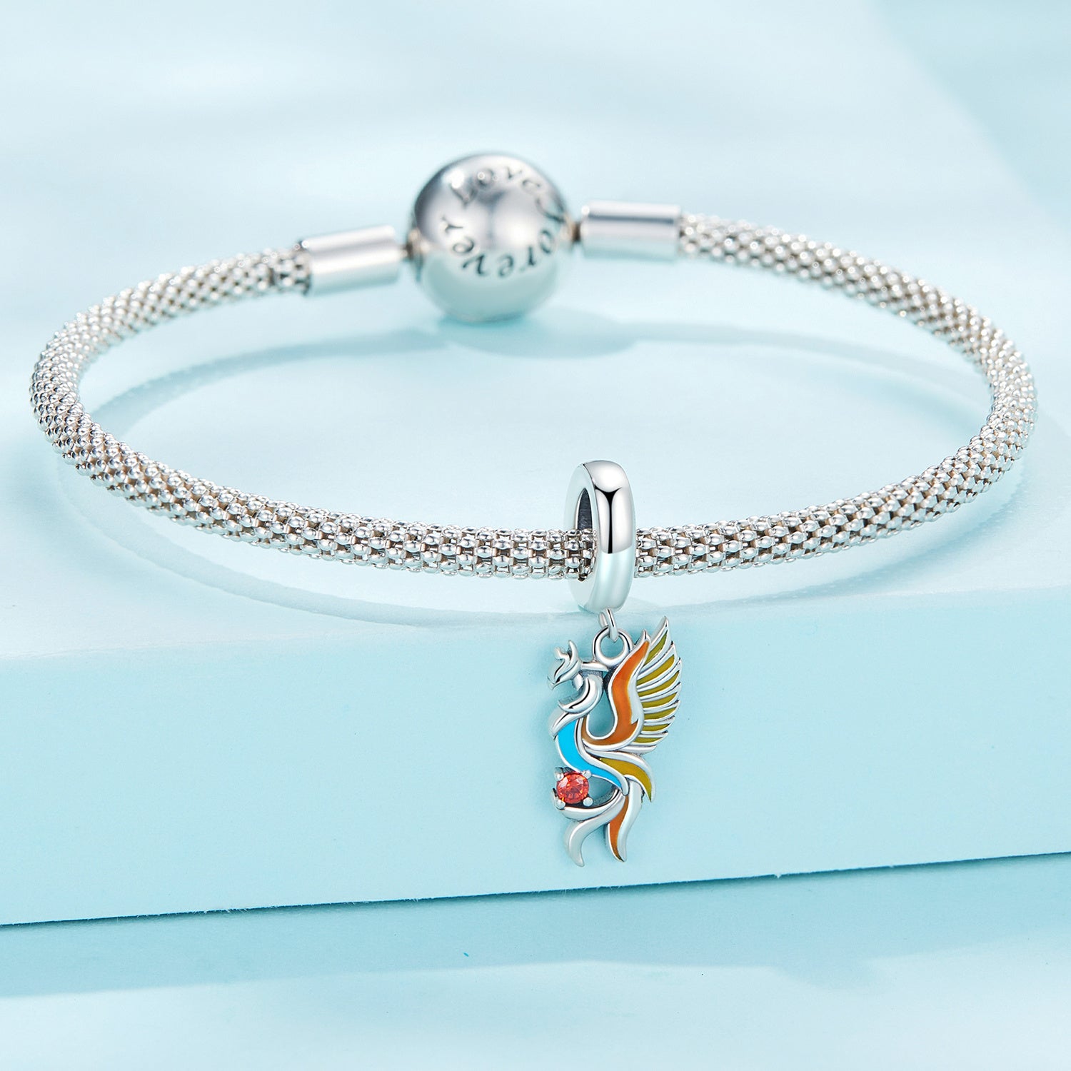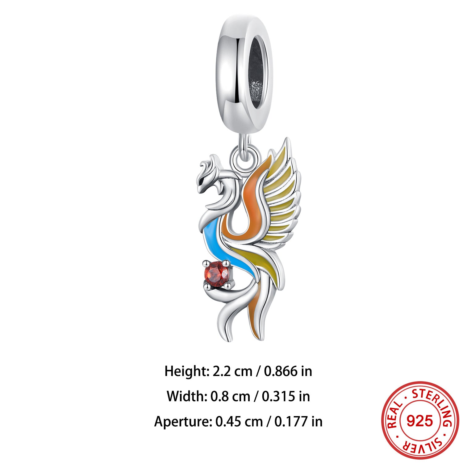 Add a touch of beauty with this colorful phoenix-shaped charm pendant that fits 3mm bracelets. Made of 925 silver, it's perfect for DIY jewelry making. Great as a gift!