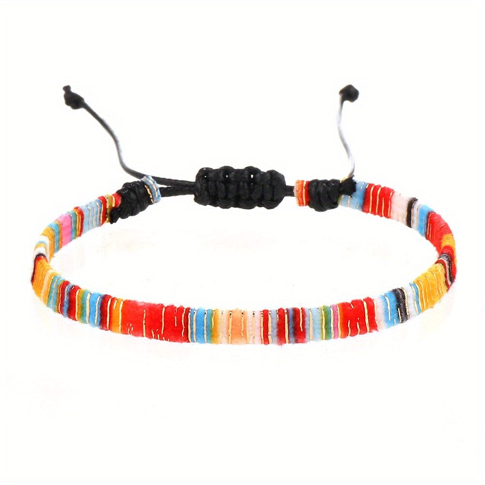 This colorful woven bracelet anklet is a stylish accessory for men. It features vibrant colors and a durable design that is perfect for everyday wear.