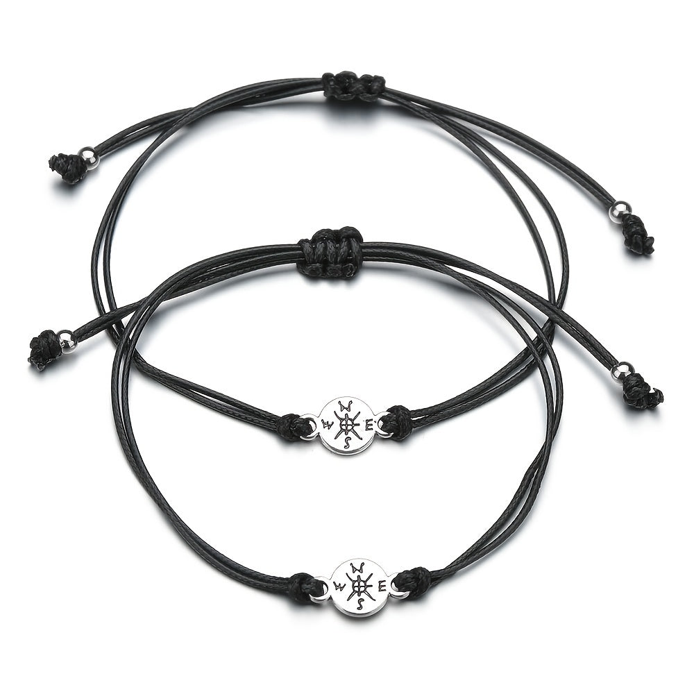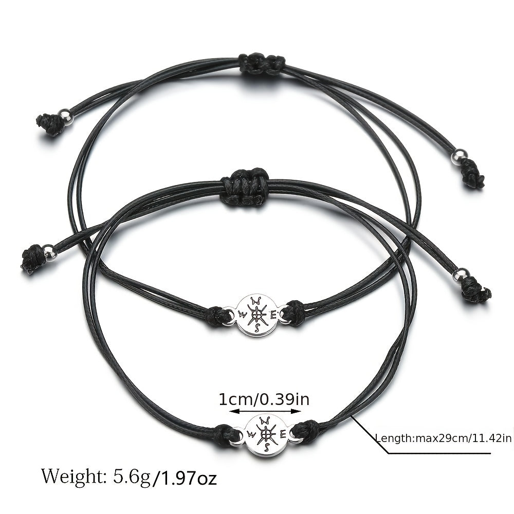 Get this 2-piece bracelet kit for you and your friend or partner. The vintage style compass design adds a unique touch to the adjustable braided wax rope. Perfect as a friendship or birthday gift.