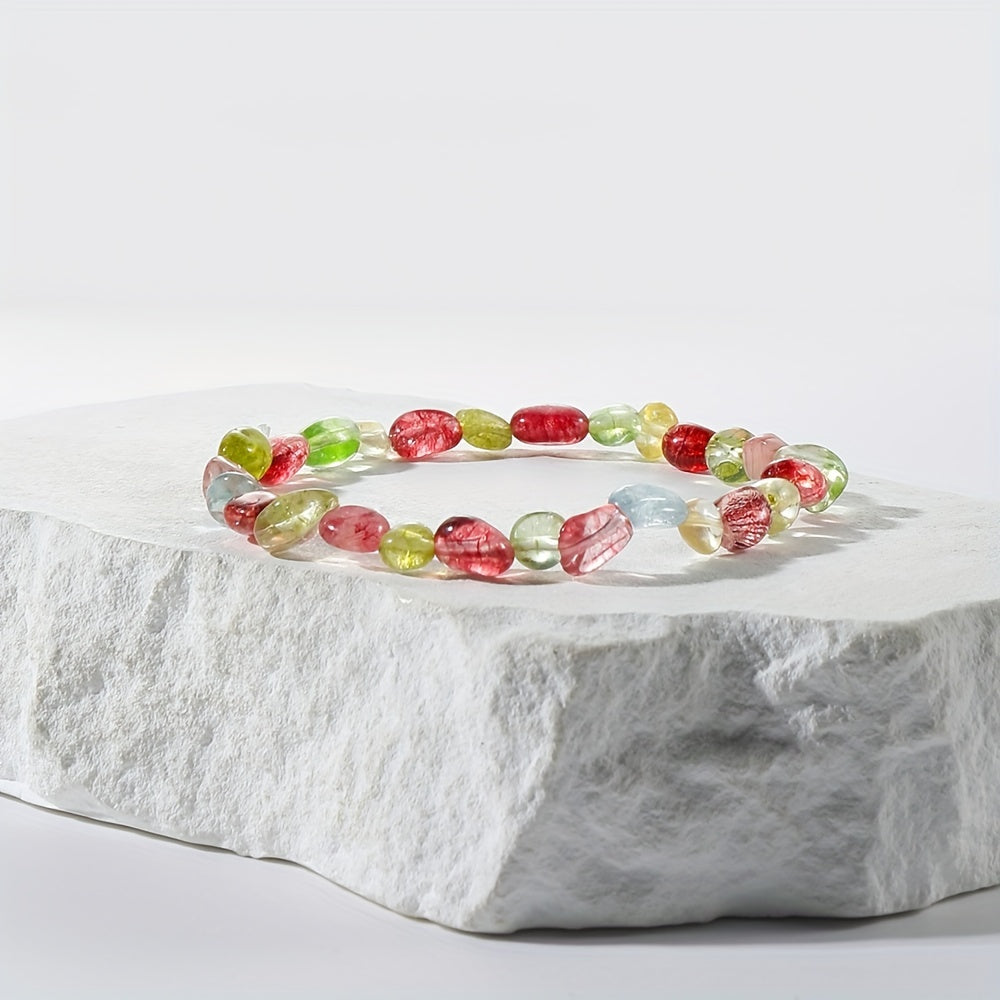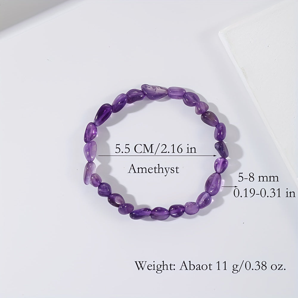 This beautiful bracelet features natural amethyst gem crystal on an elastic rope. Perfect gift for girls.