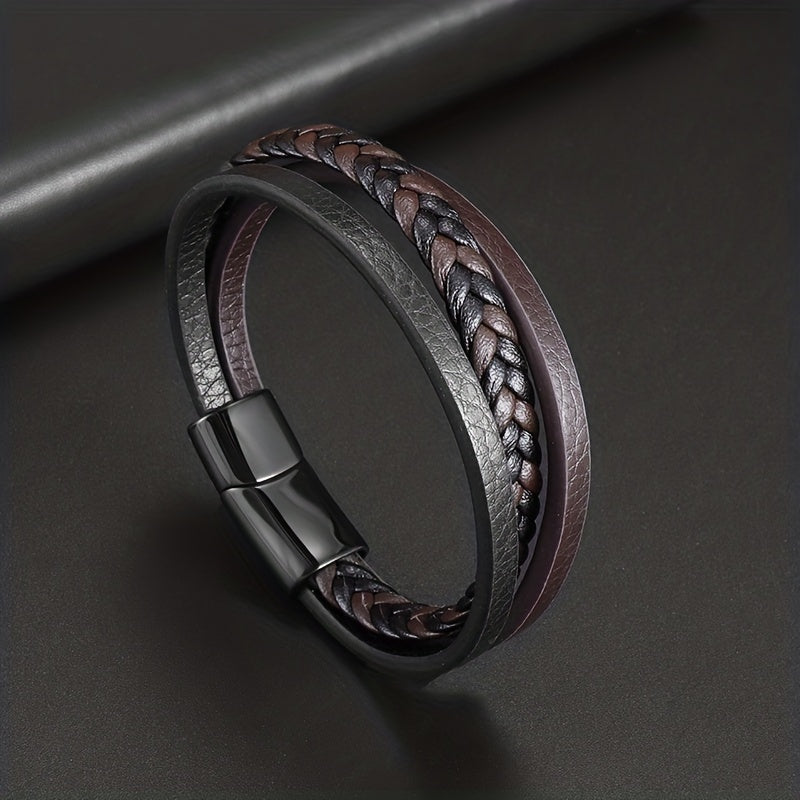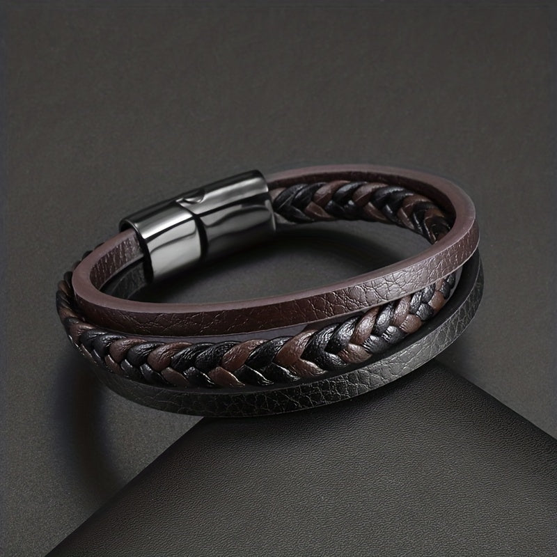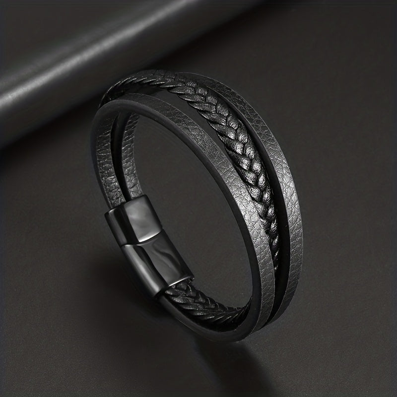 This hand-woven leather bracelet is perfect for casual wear, parties, or rock-inspired style. Makes a great gift for any occasion.