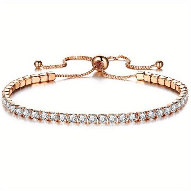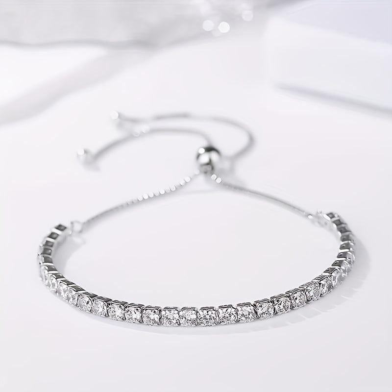 Elegant tennis bracelet with sparkling crystals, adjustable to fit most wrist sizes.
