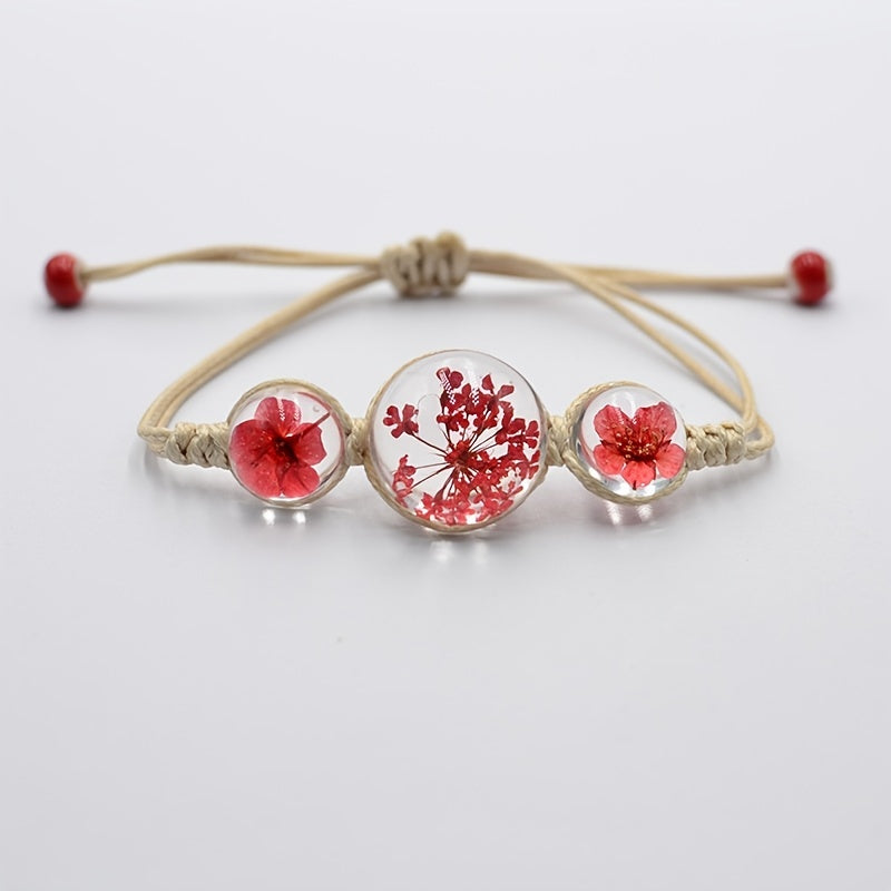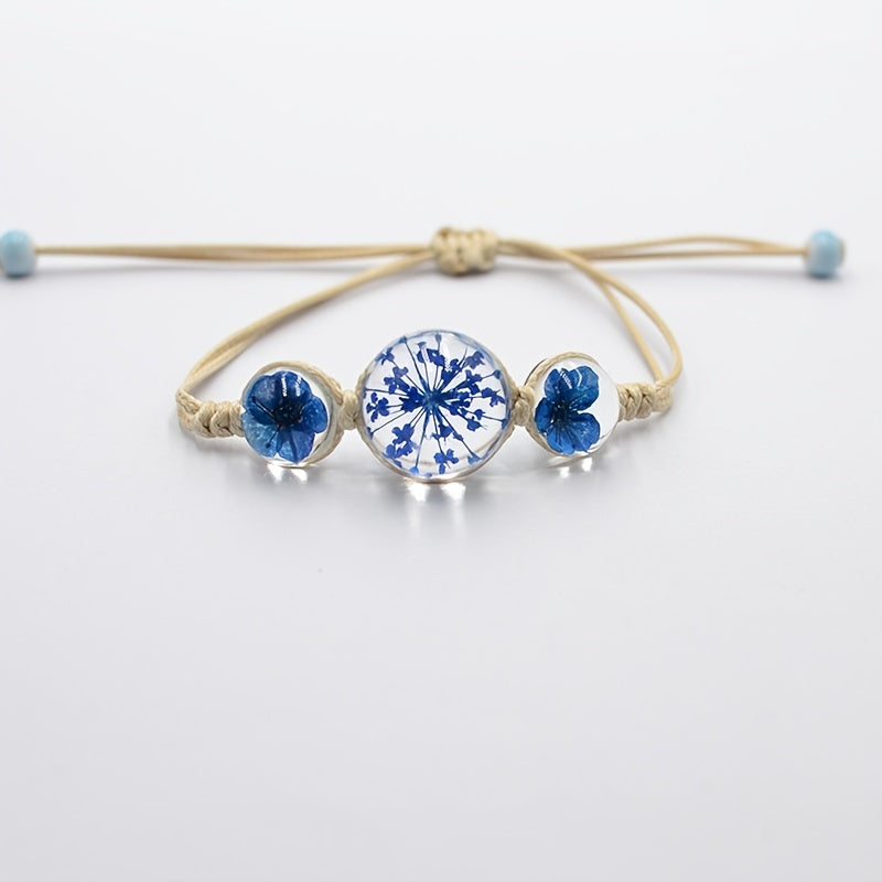 This unique bracelet features a combination of dry flower braid and crystal weave design, perfect for brides or as a gift. Add a touch of personality to your hand jewelry collection.