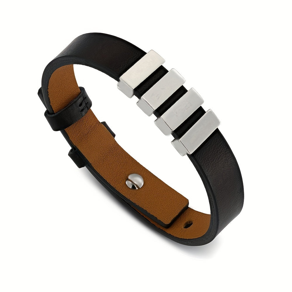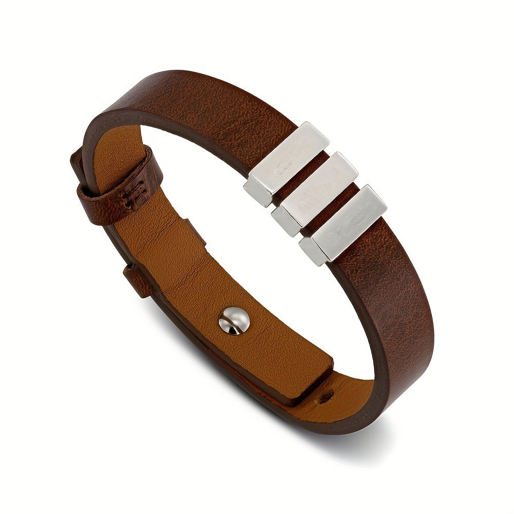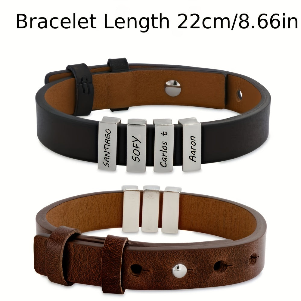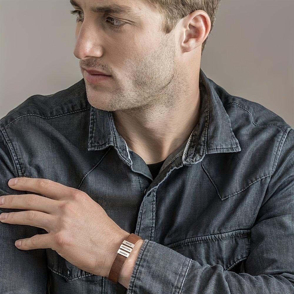 Personalized stainless steel bracelet with engraved family name. Perfect holiday or birthday gift for your boyfriend, family members, and friends.