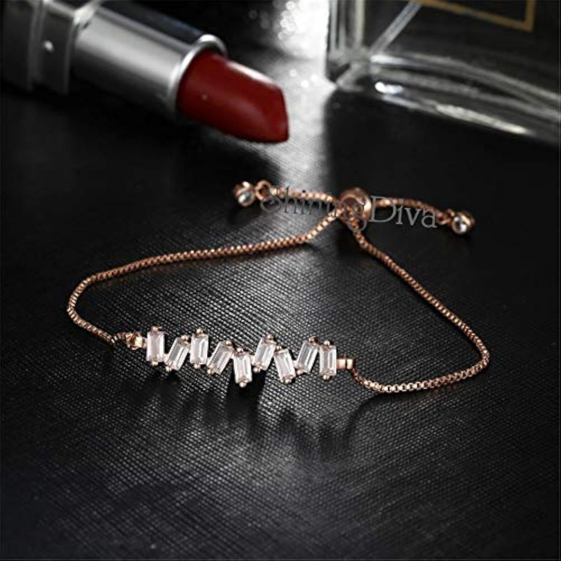Elegant and stylish charm bracelet featuring cubic zirconia crystals. Perfect for adding a touch of sparkle to any outfit.