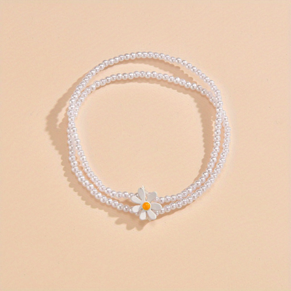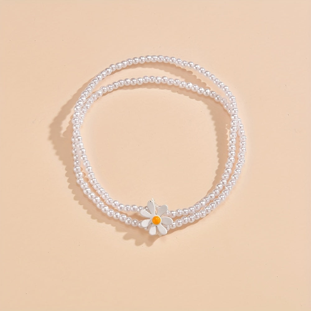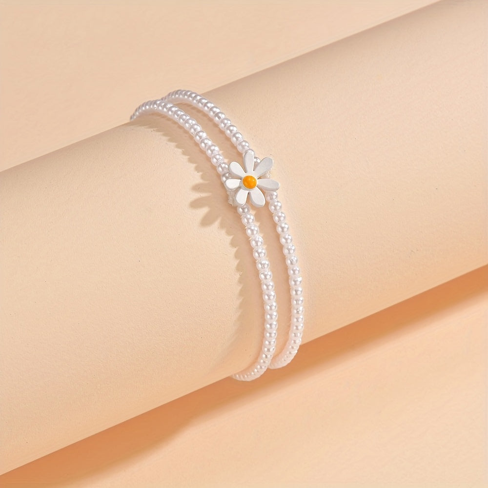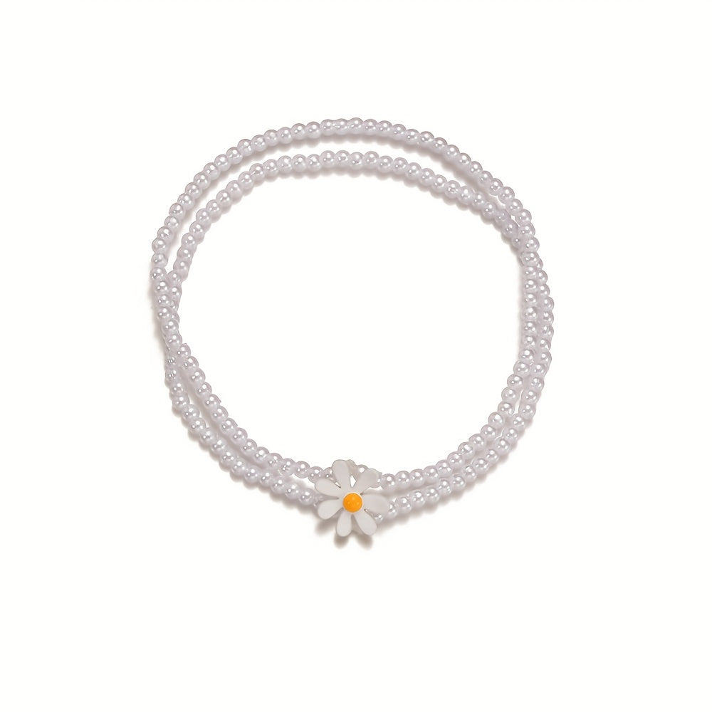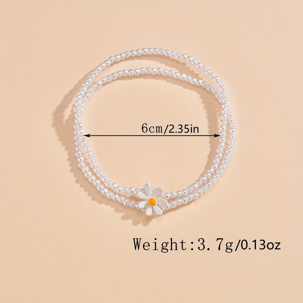Elevate your style with this stunning daisy beaded anklet featuring faux pearls. Perfect for adding a touch of elegance to any outfit.