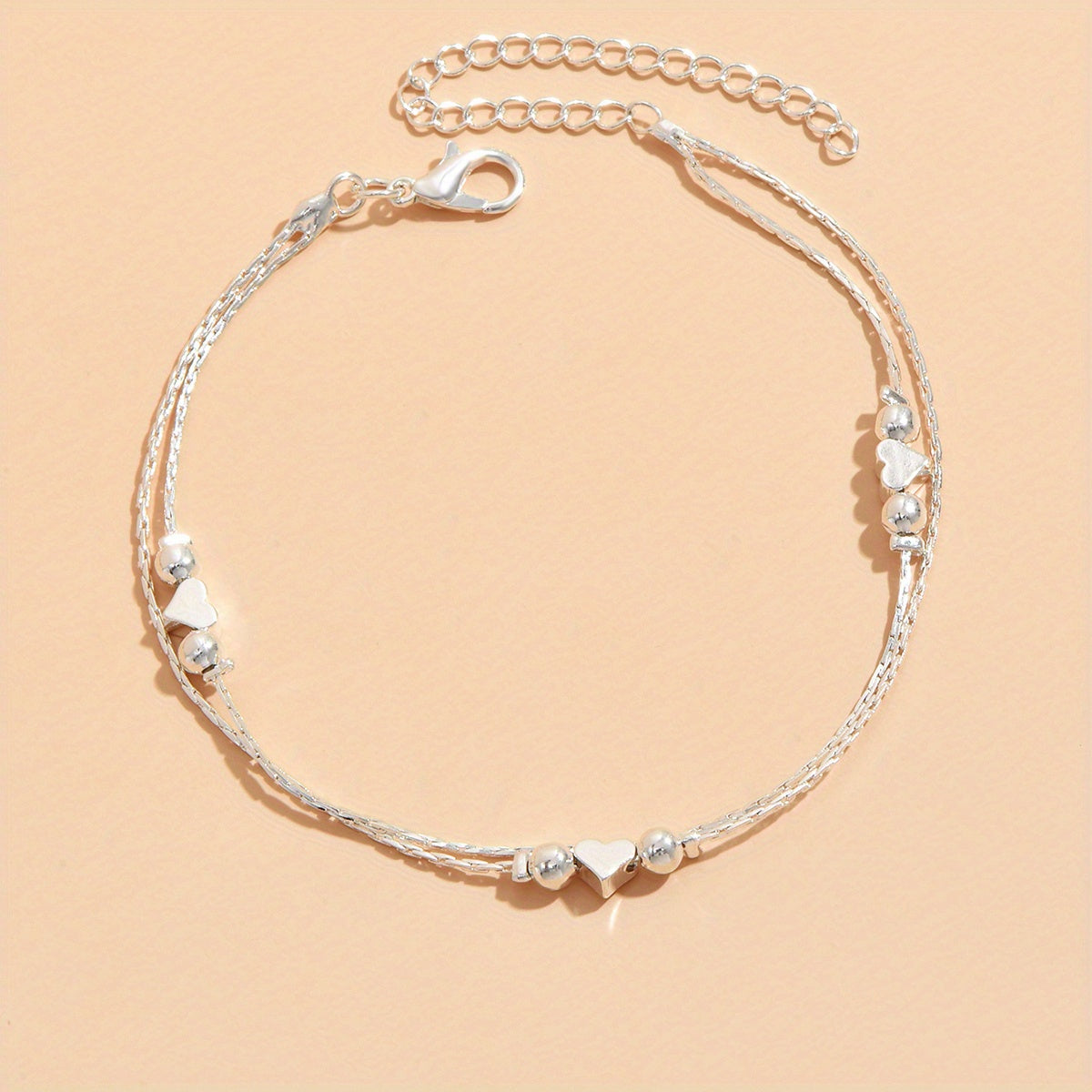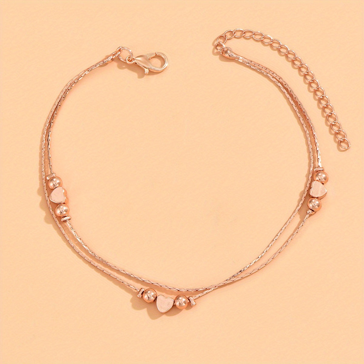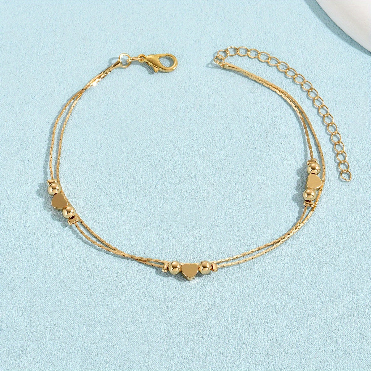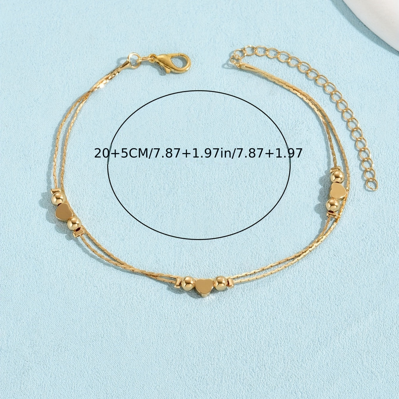 This minimalist chain anklet features a double layers design with mini love heart beads for a stylish look.