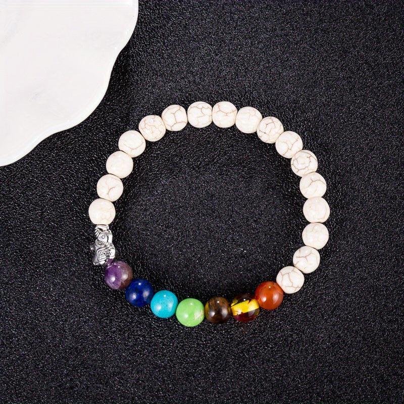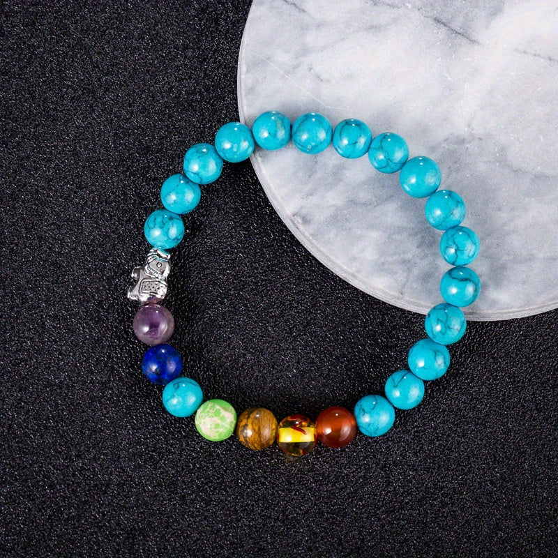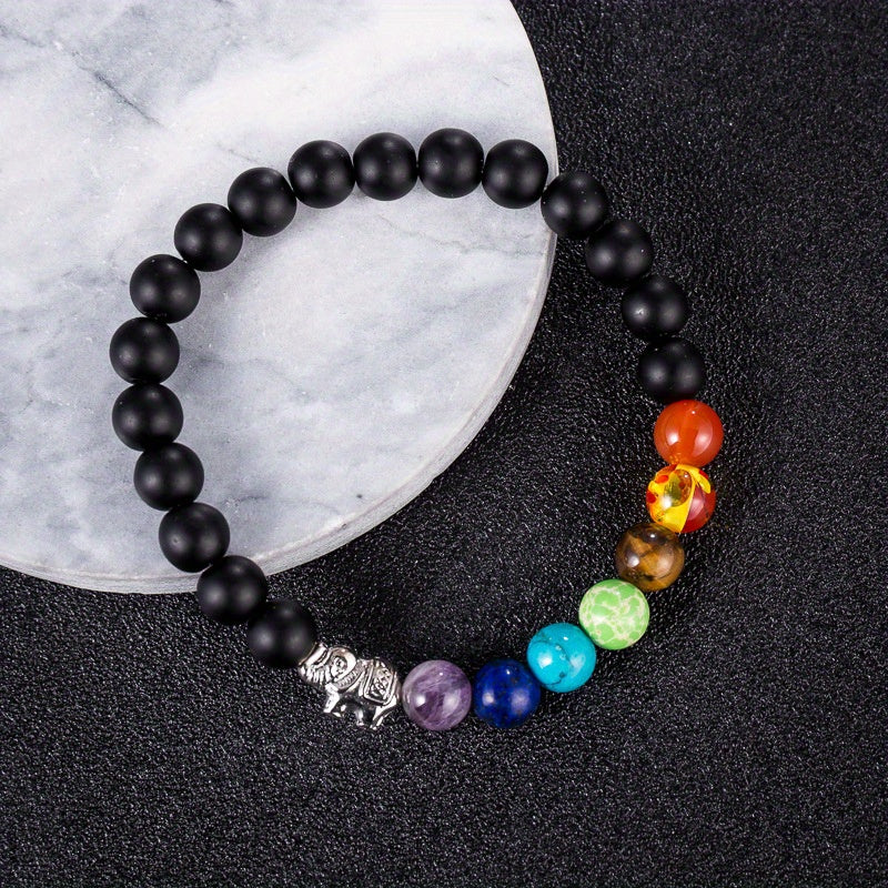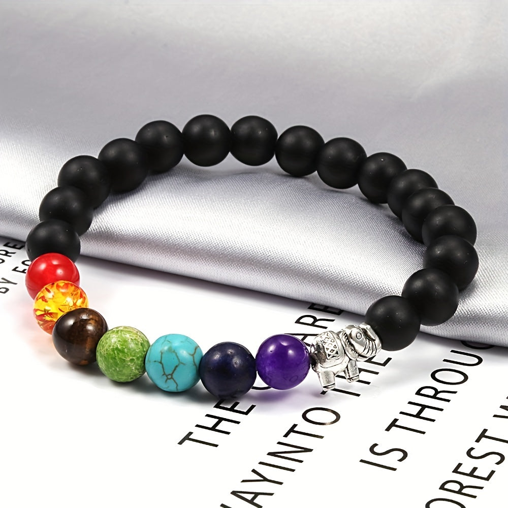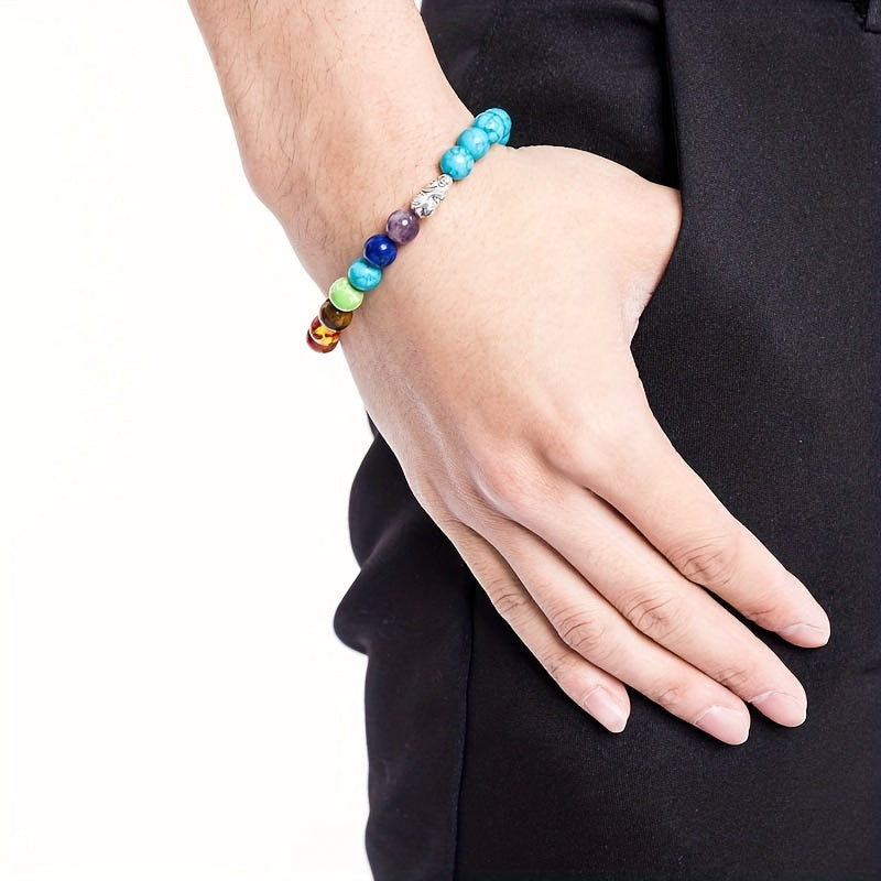 This bracelet features 7 chakra stones to promote healing and balance. It is great for men and includes a Buddha prayer for added positivity and protection.