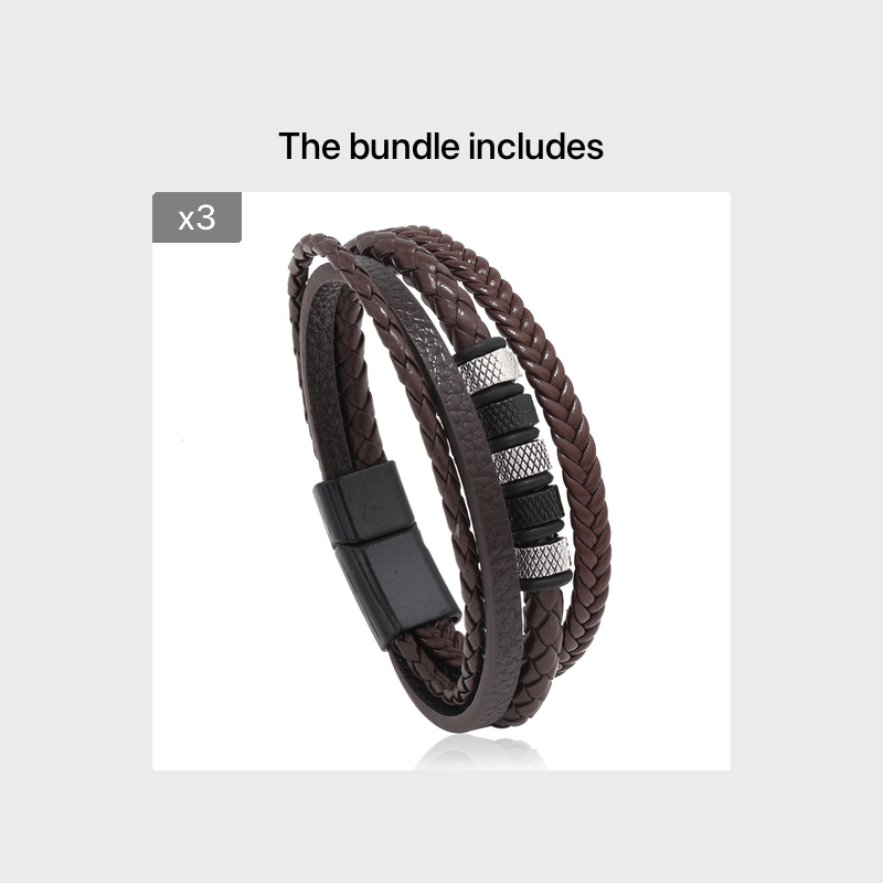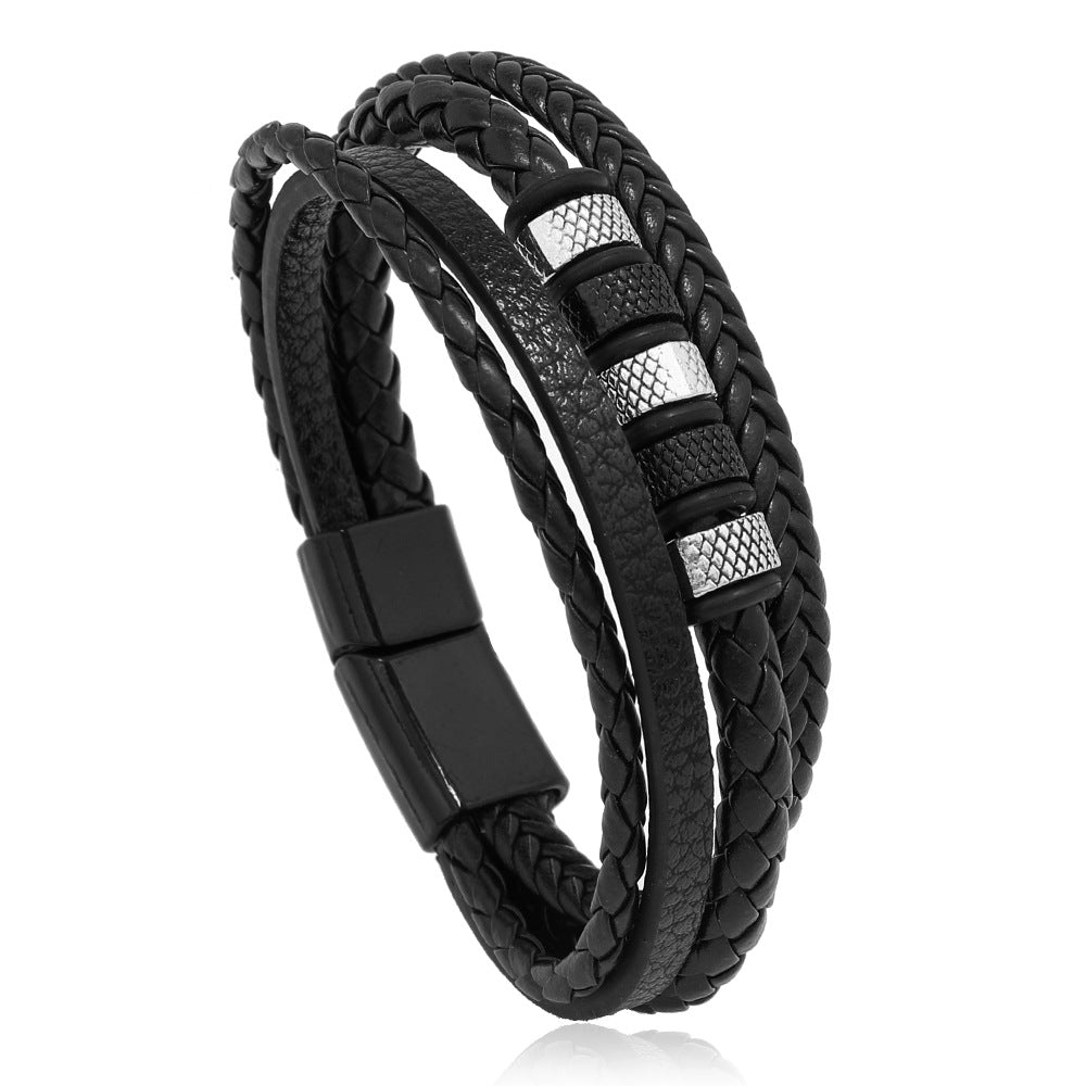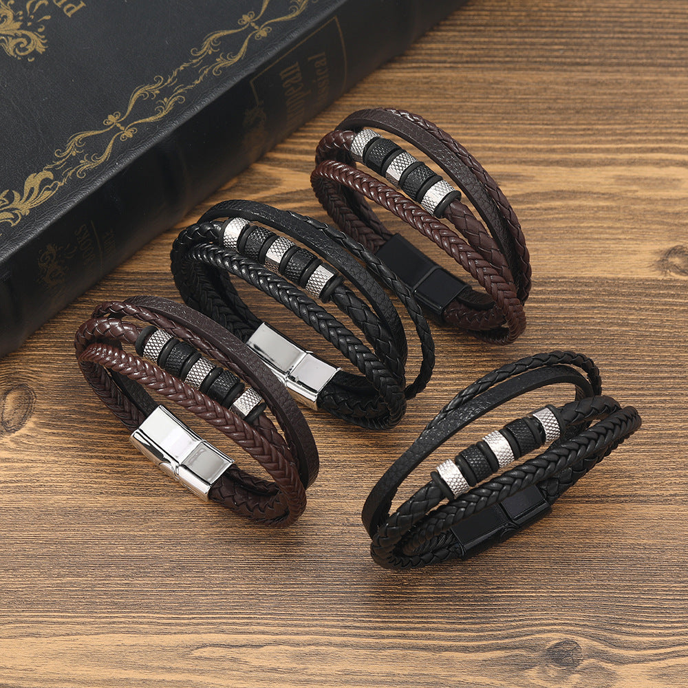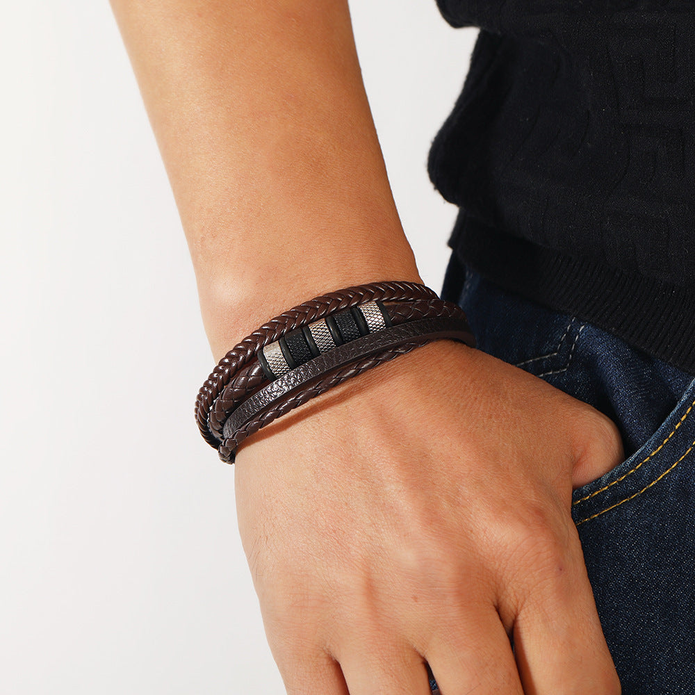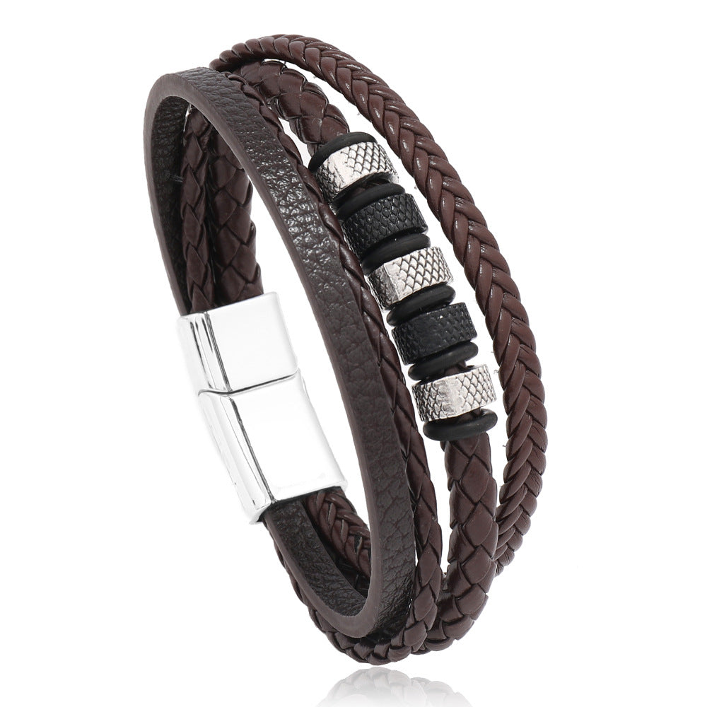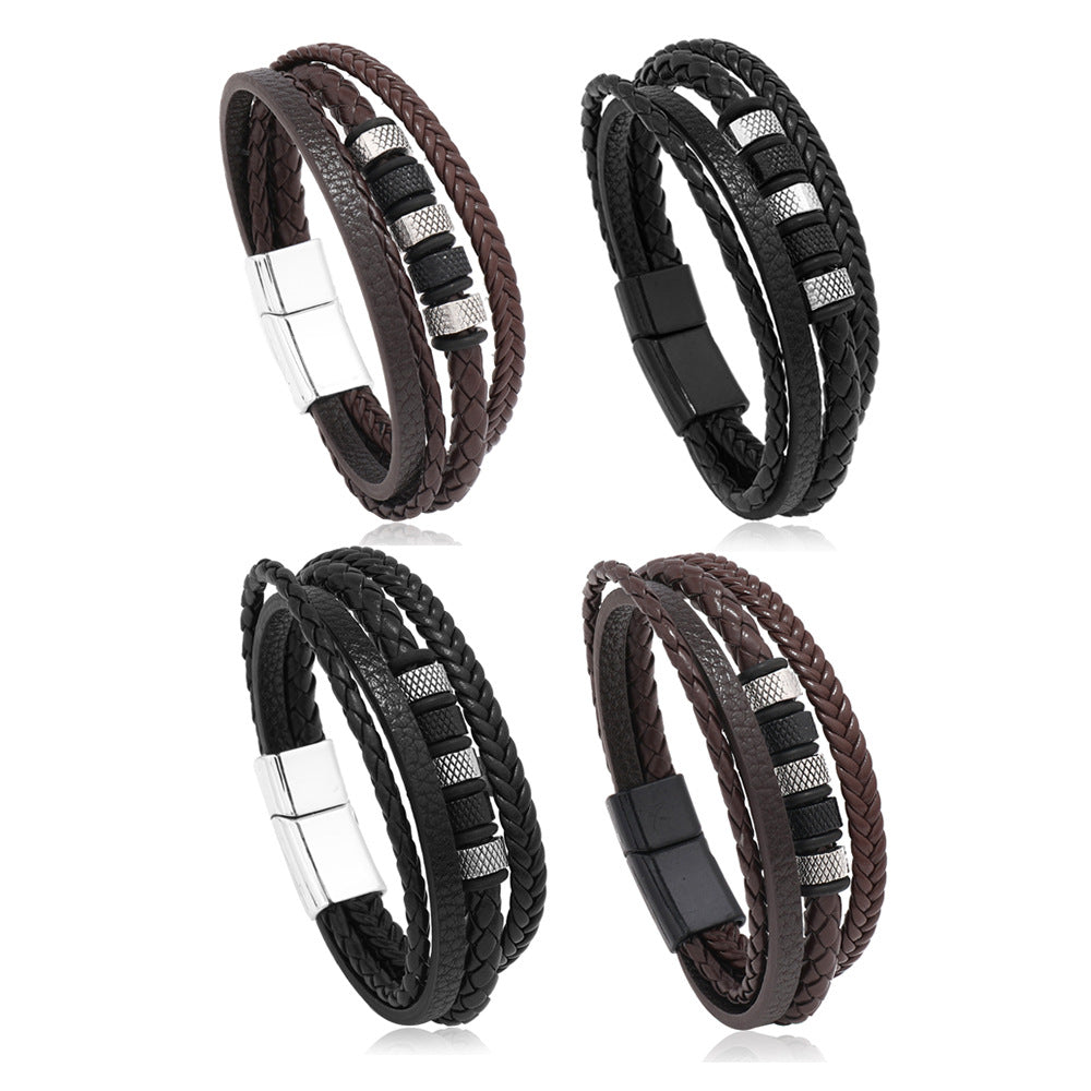 This bracelet features a magnet buckle design with braided leather ropes, perfect for men who appreciate unique accessories.