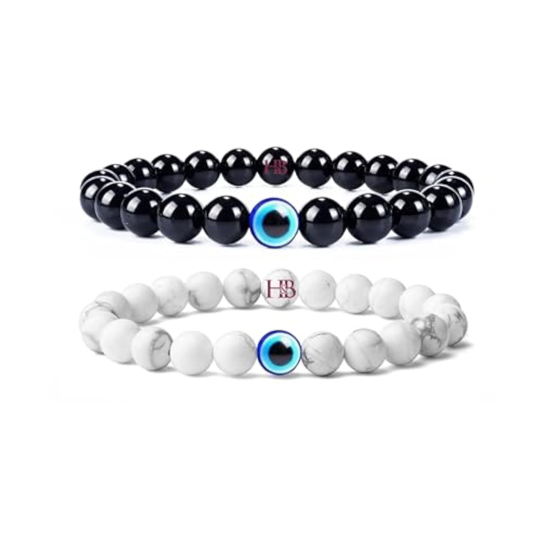 Enhance harmony and protection with this natural stone bead evil eye couple combo bracelet set. The set brings positive energy and safeguards your relationship.