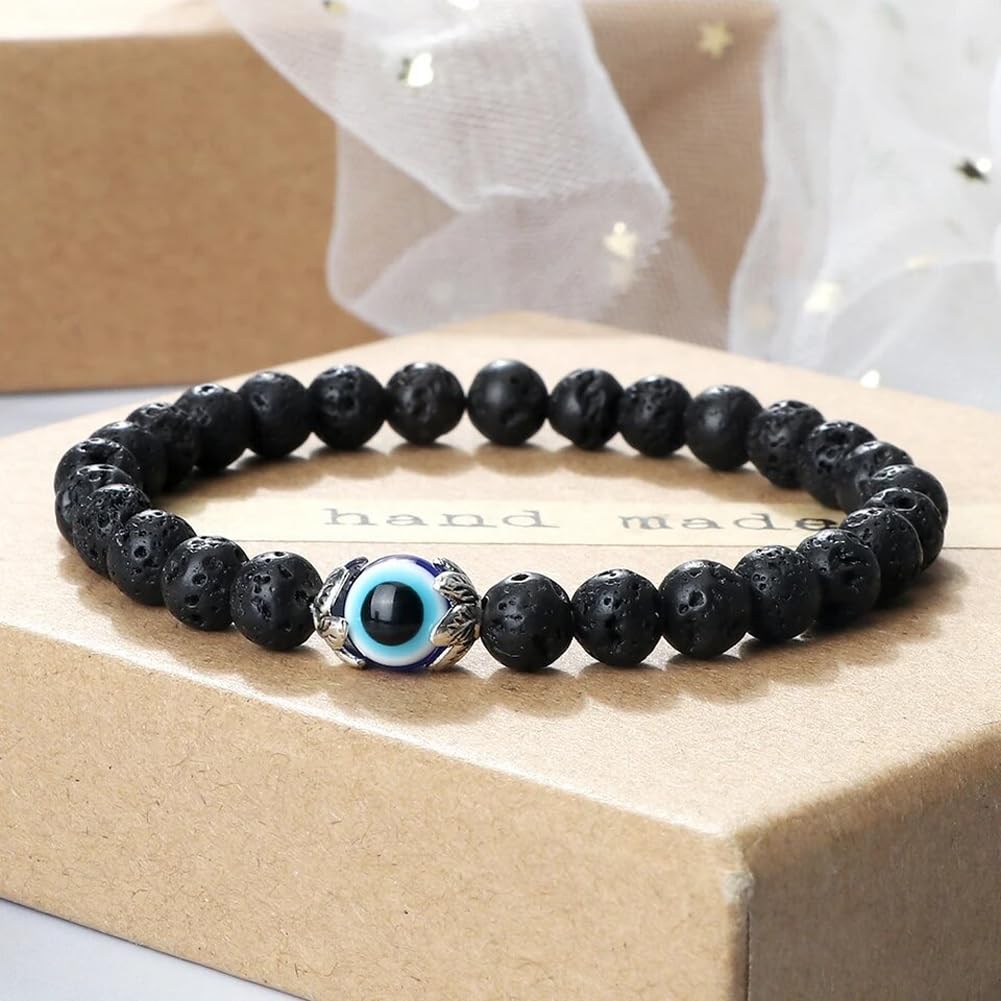 Keep negativity at bay with this evil eye stone bracelet. The protective charm design is believed to ward off the evil eye and bring good luck.