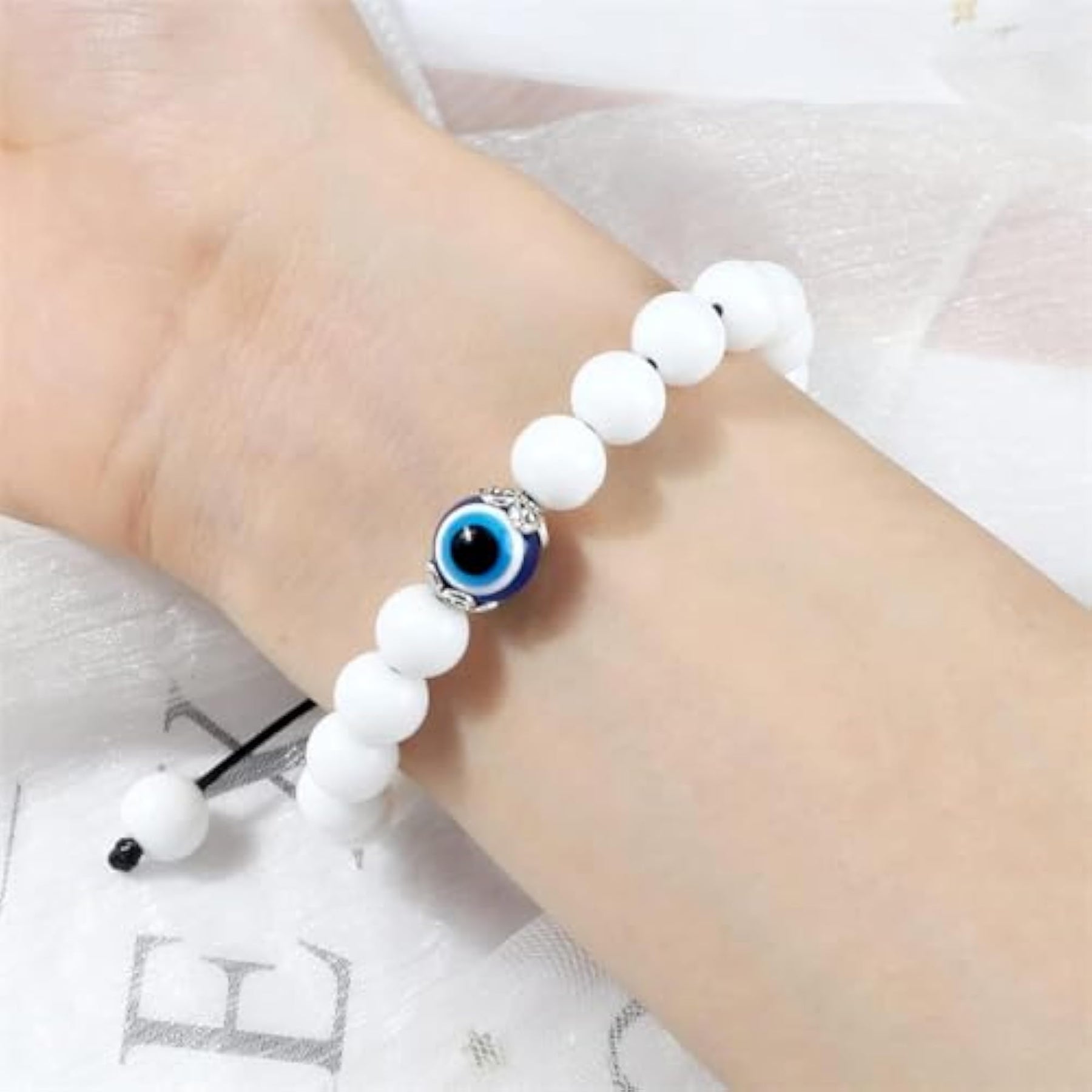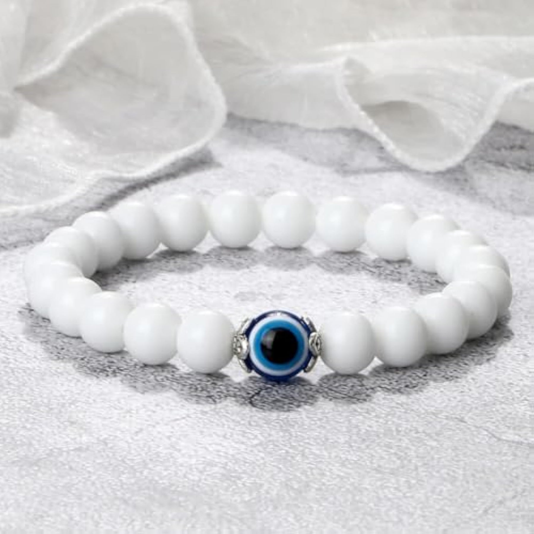 Ward off negativity with this beautiful Evil Eye stone bracelet. A stylish accessory that also offers protection.