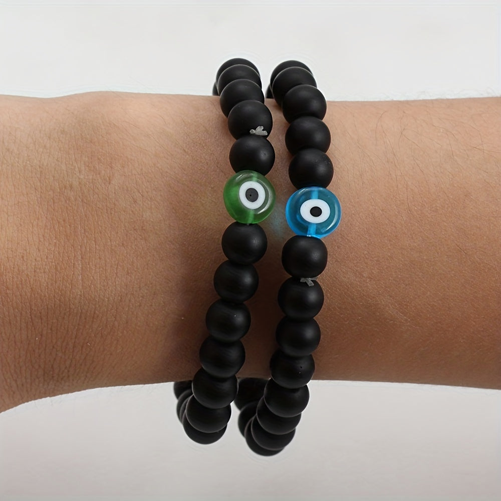 Add a touch of charm to your daily look with this natural stone beaded bracelet featuring an Evil's Eye design. Perfect as a gift for family and friends on birthdays or holidays.