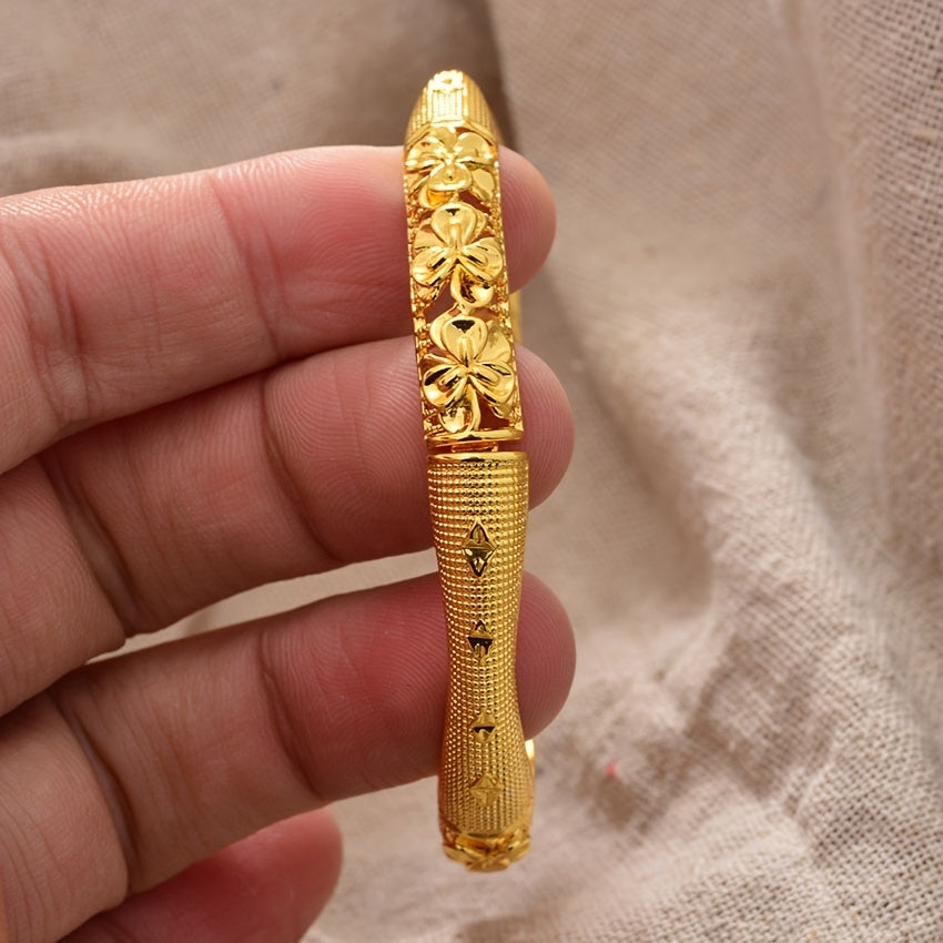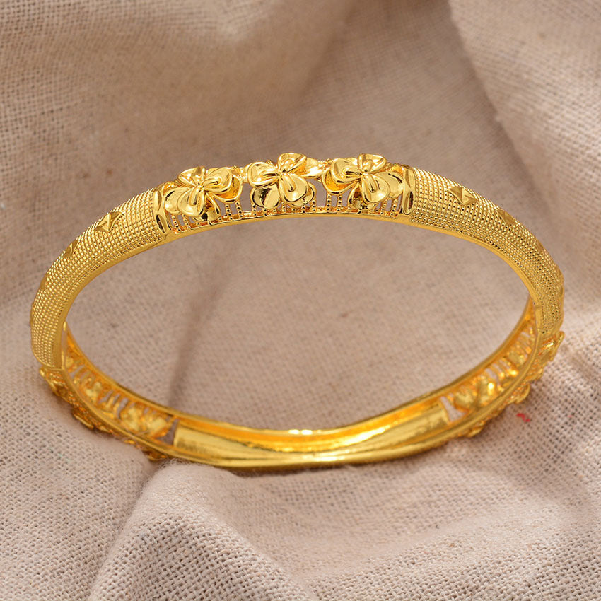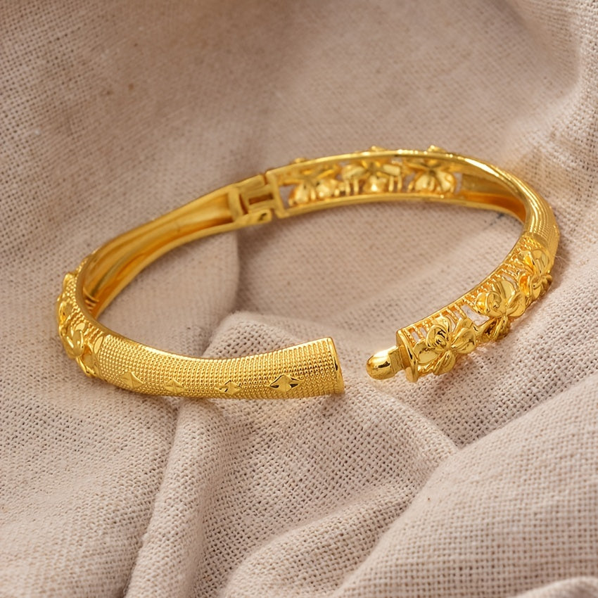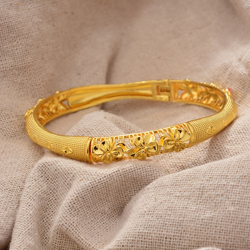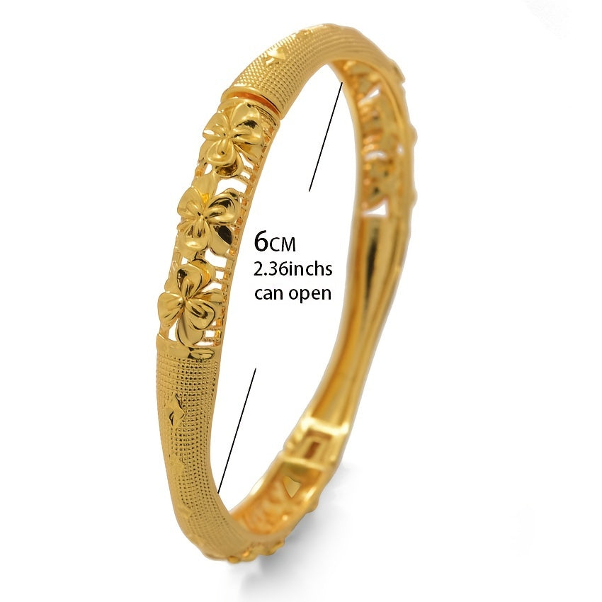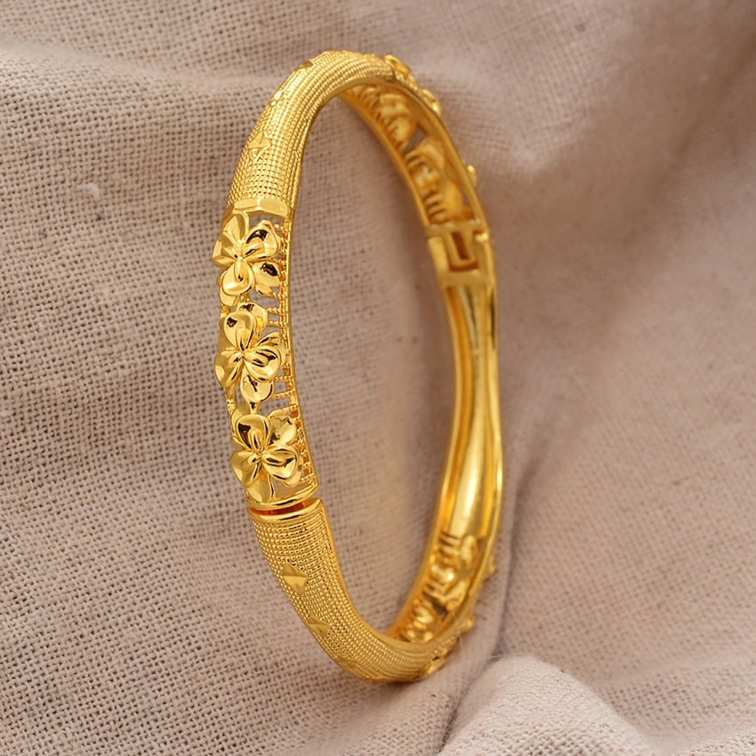 Flower Pattern Copper Bangle Bracelet 18K Plated Hand Jewelry For Women
