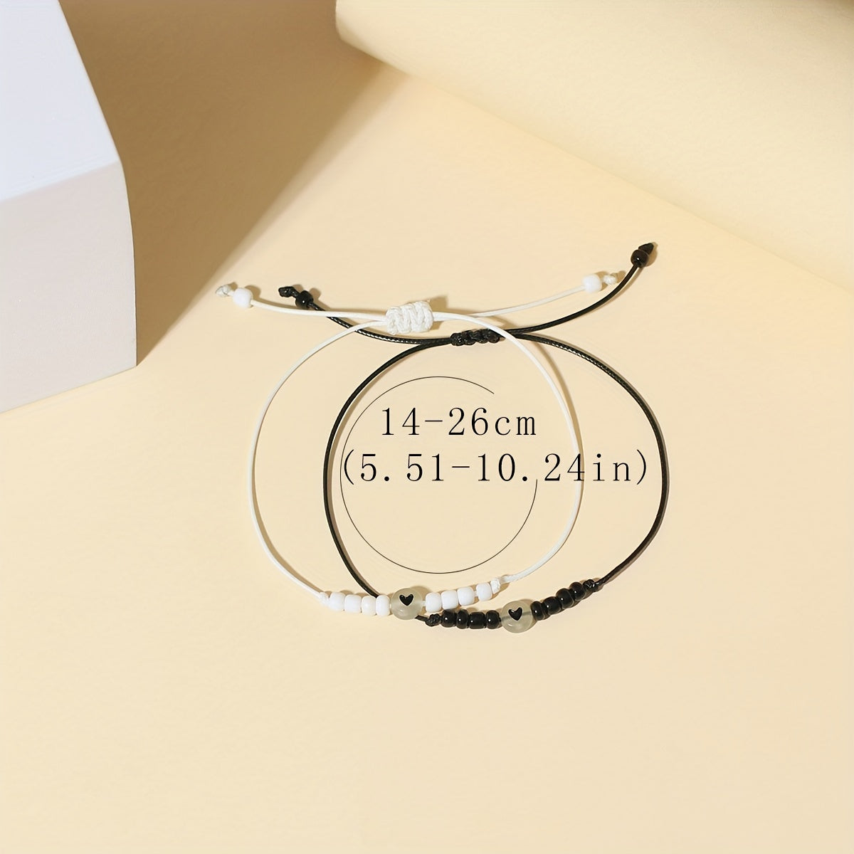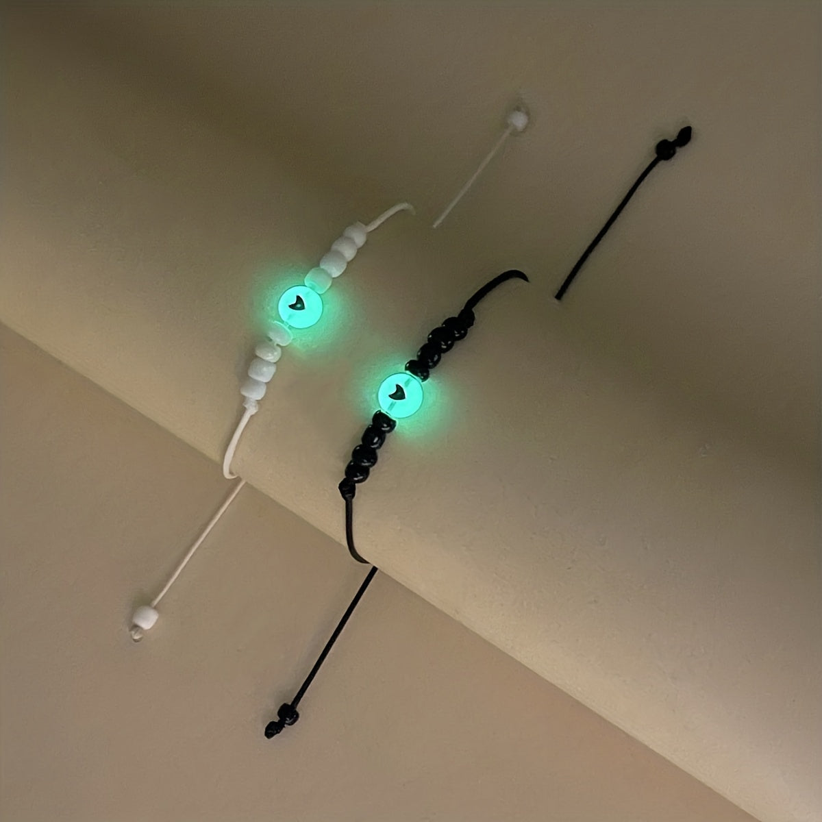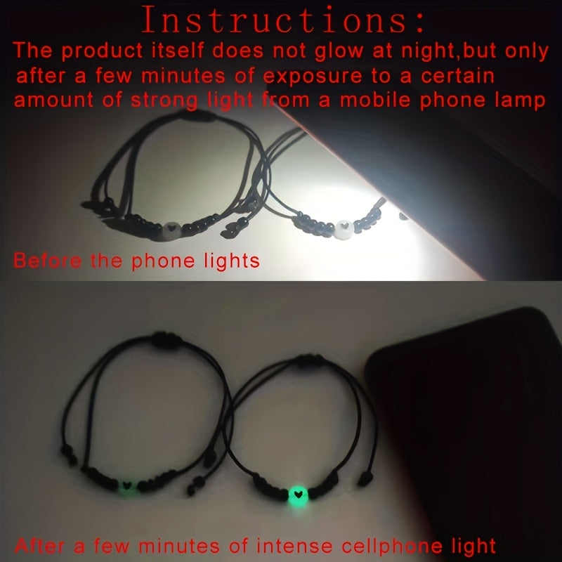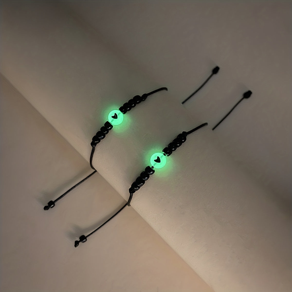 Embrace the luminous love with this heart and rice beads braided bracelet set that glows in the dark. Ideal for a unique style statement.