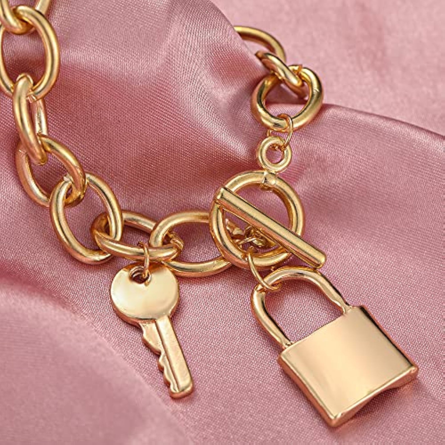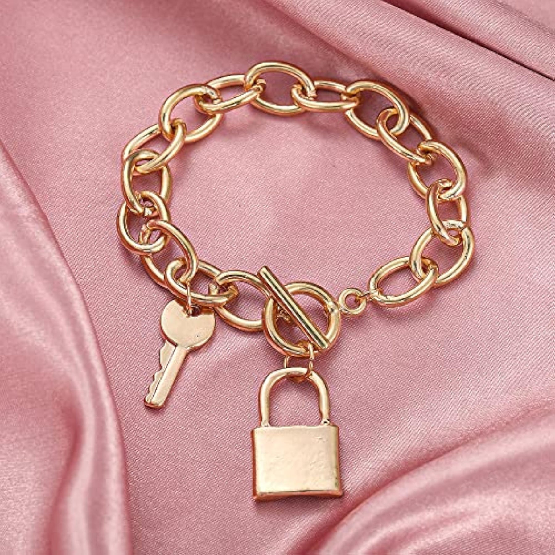 Elegant bracelet featuring various charms plated in gold, perfect for any occasion.