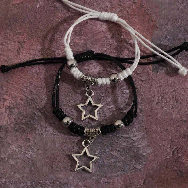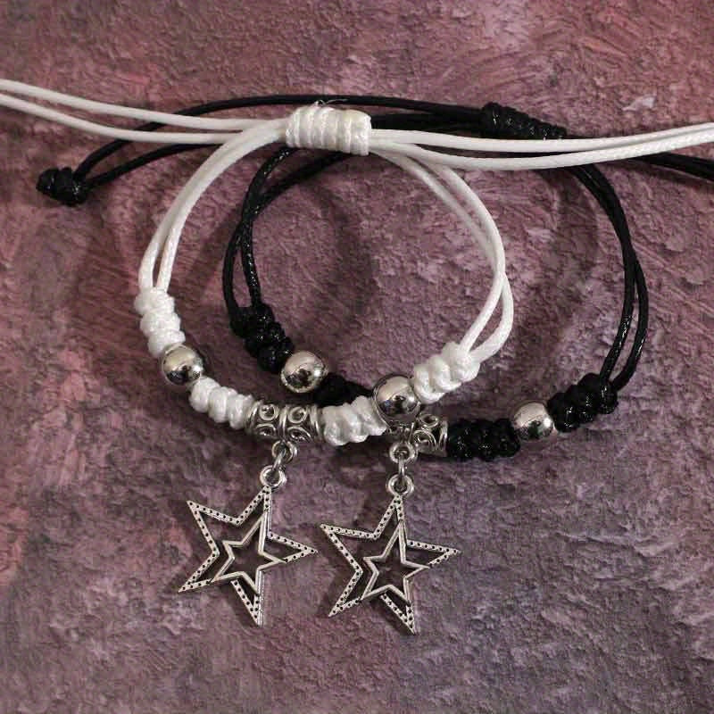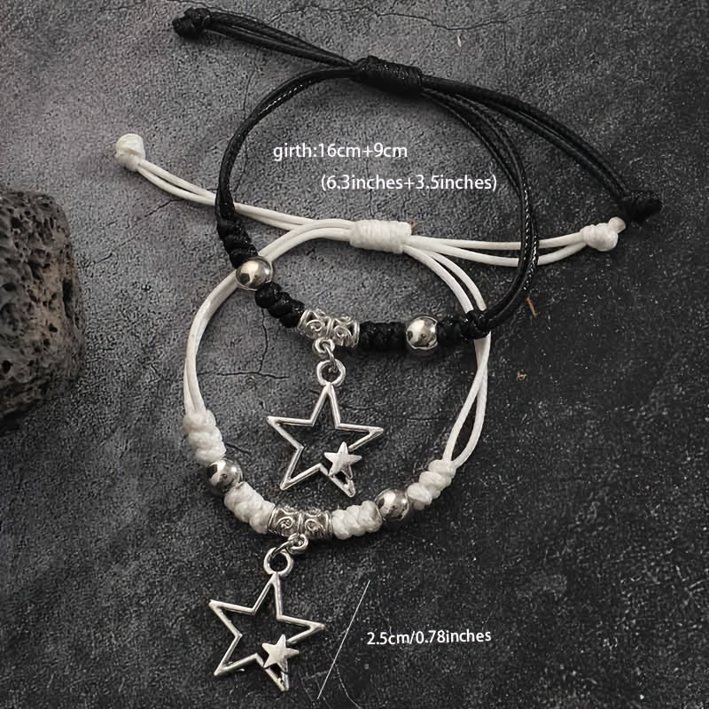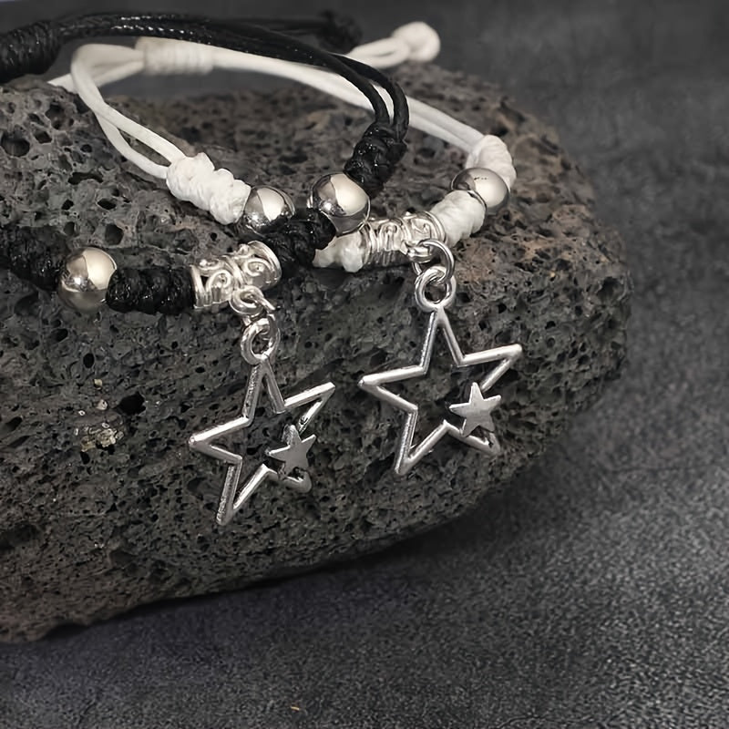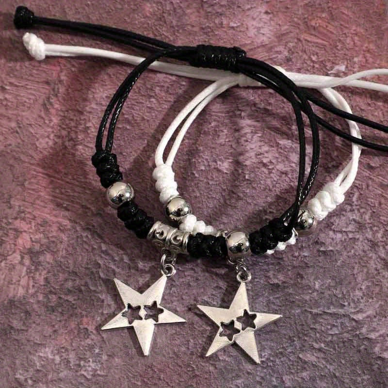Gothic Retro Star Bracelet Hand Rope Set, Couple Bracelet