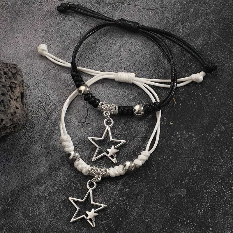 This set includes 2pcs of Gothic retro star bracelets that are adjustable. Perfect for men and women, these couple bracelets add a touch of style to any outfit.