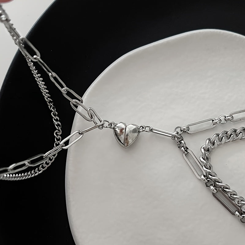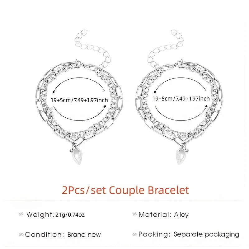 Halves Heart Magnetic Couple Bracelets Love Chain Bracelets Set Gift