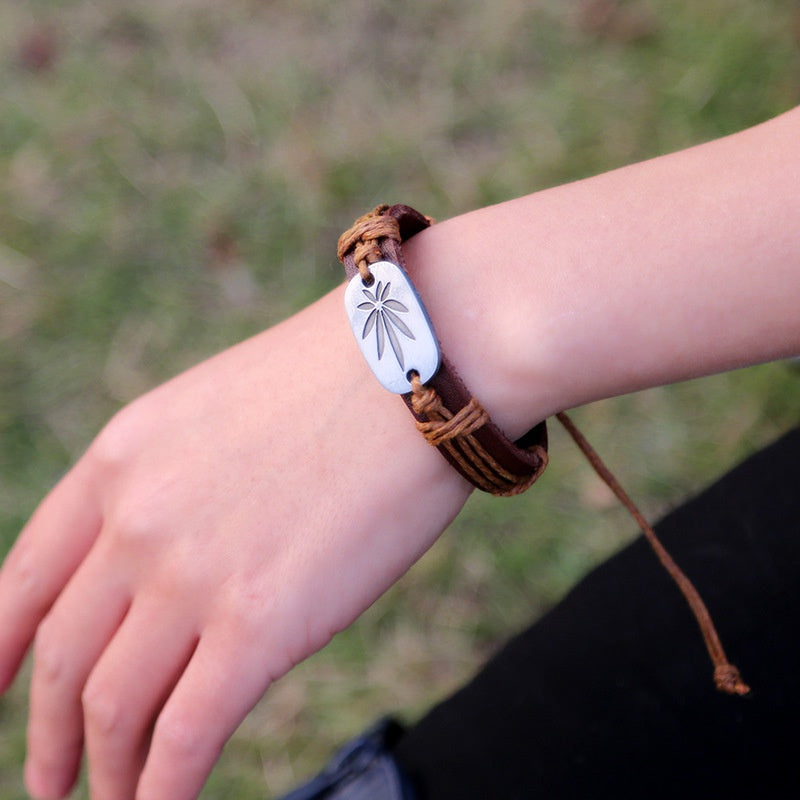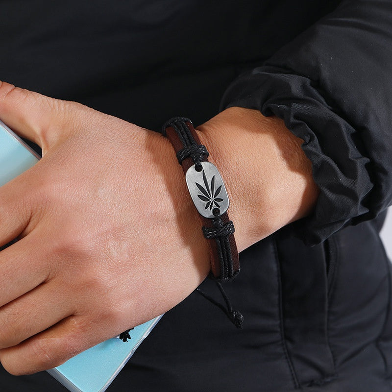 Add a touch of vintage style to your look with this hand woven Maple PU leather bracelet. The adjustable stretch design makes it easy to wear and layer with other bracelets.