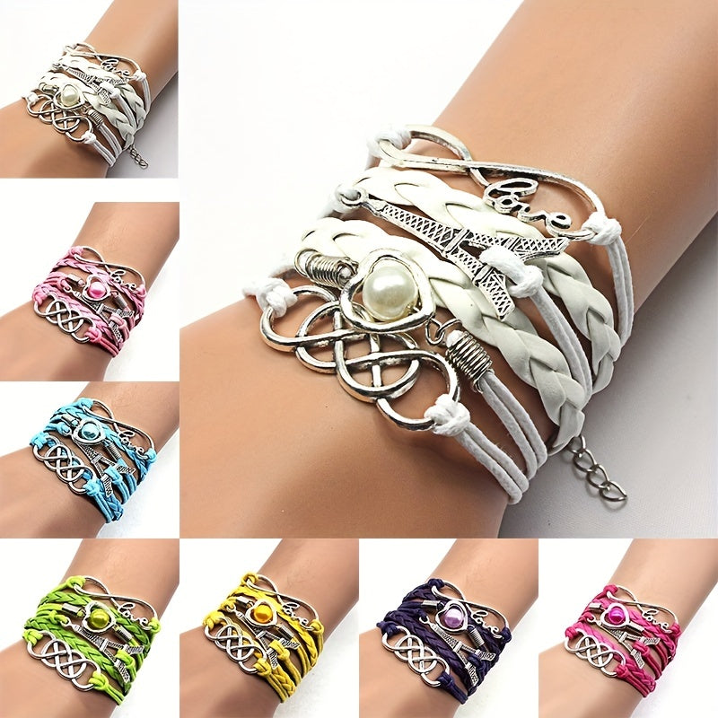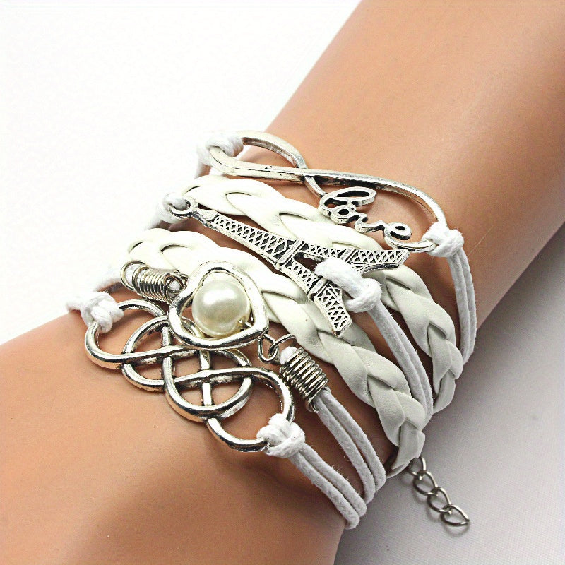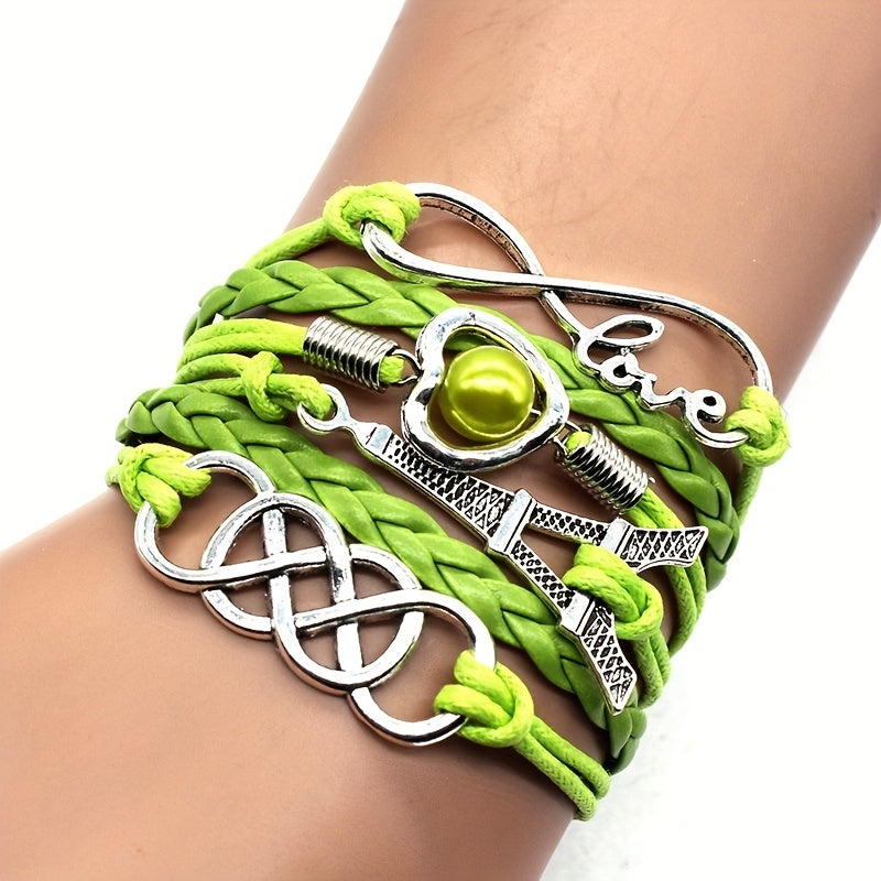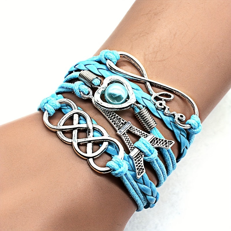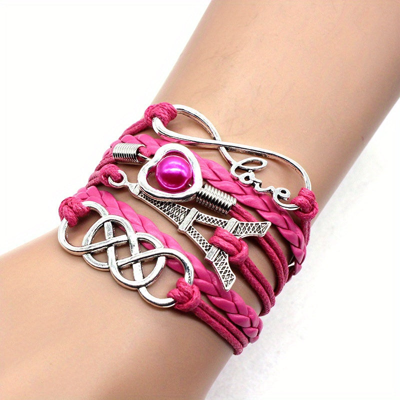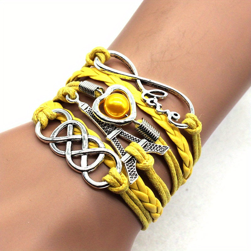 Embrace a touch of nostalgia with this fashionable and vintage handwoven bracelet featuring a charming heart and tower pattern. Suitable for both men and women.