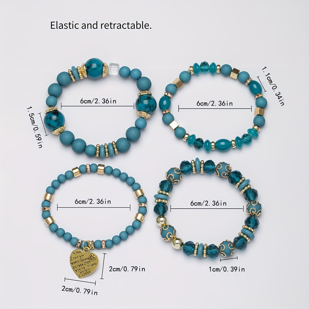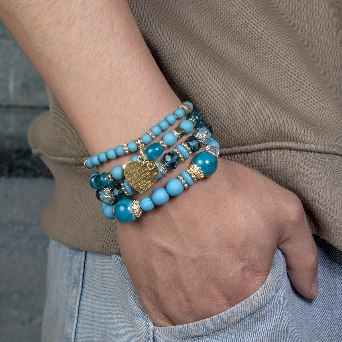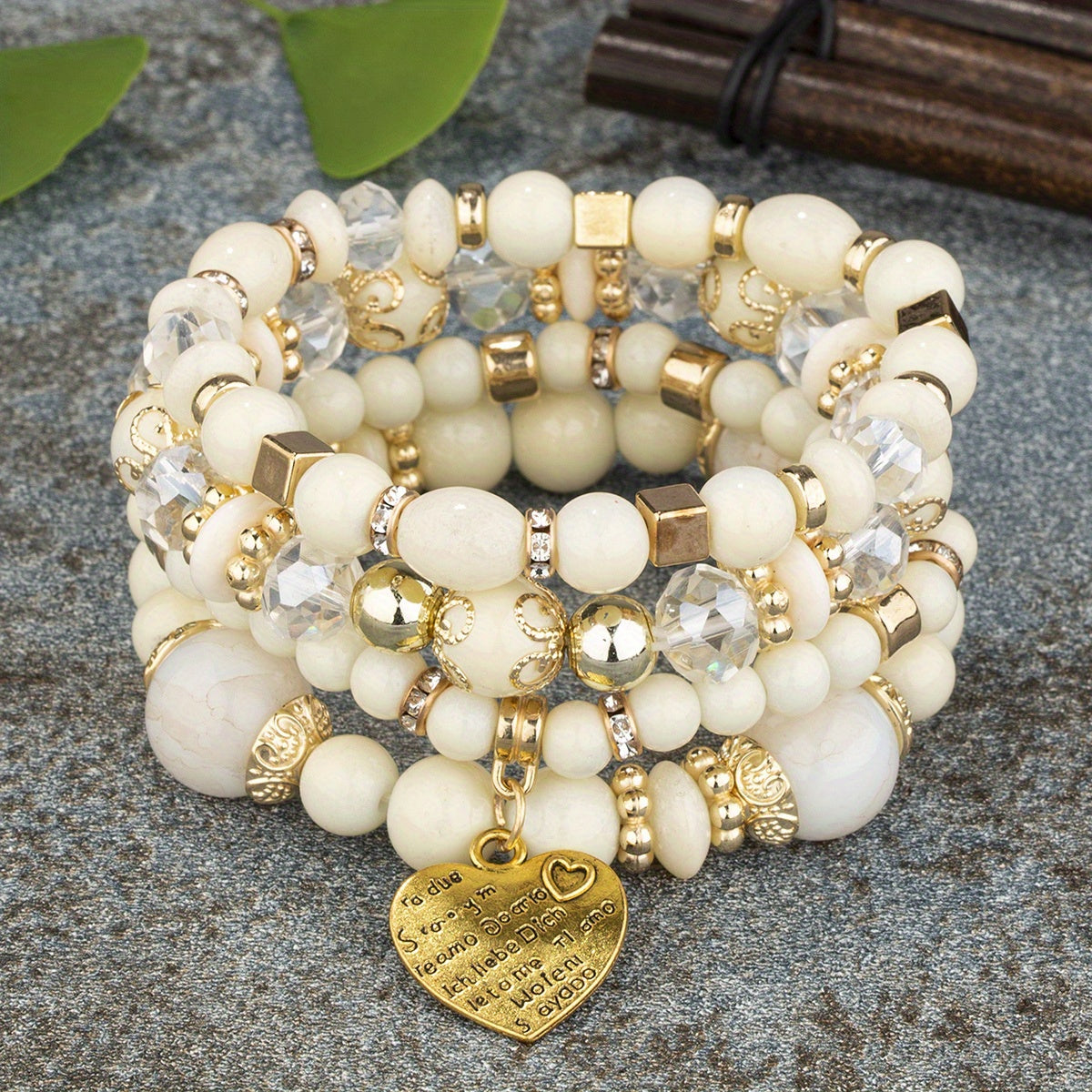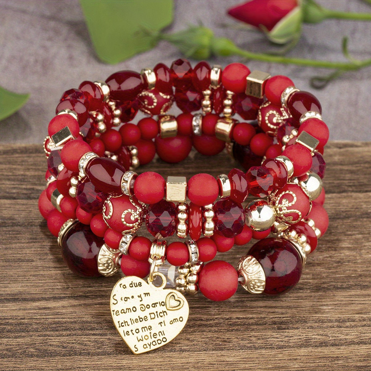 Heart Charm Beads Layered Bracelet Set Vintage Jewelry Gift