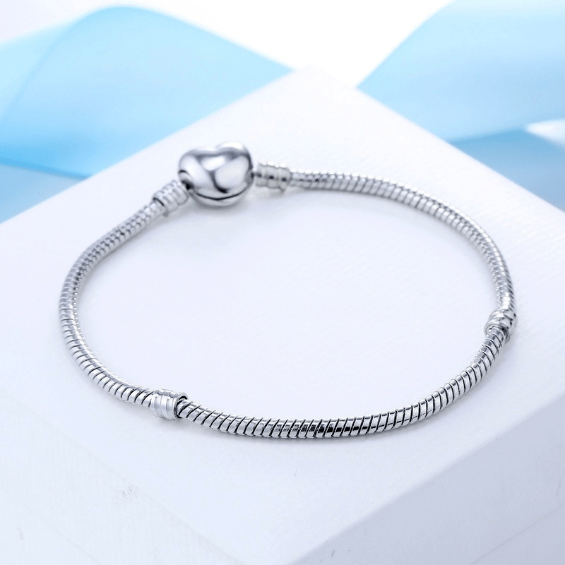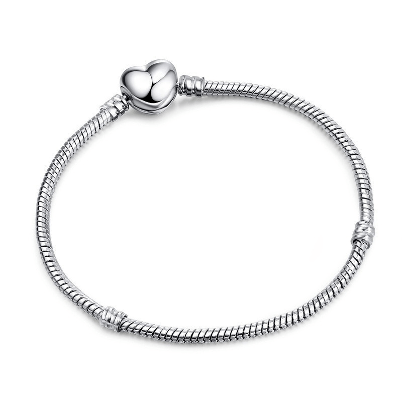 Heart Decor Silvery Bangle Snake Chain Bracelet For Men Gift