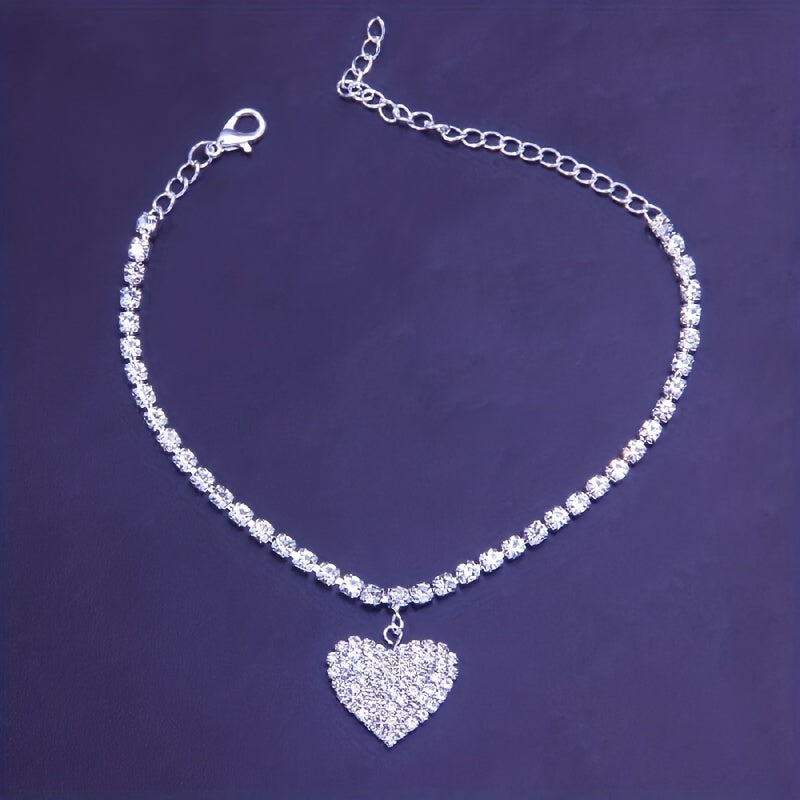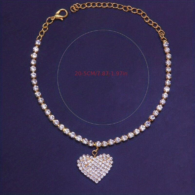 Adorn your ankle with this bling bling ankle bracelet featuring a heart shape pendant inlaid with rhinestones. Perfect for adding a touch of sparkle to your outfit.