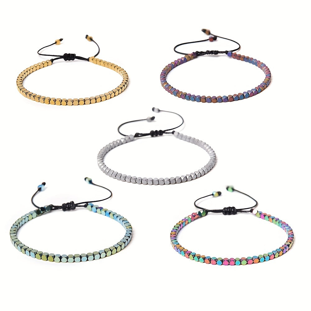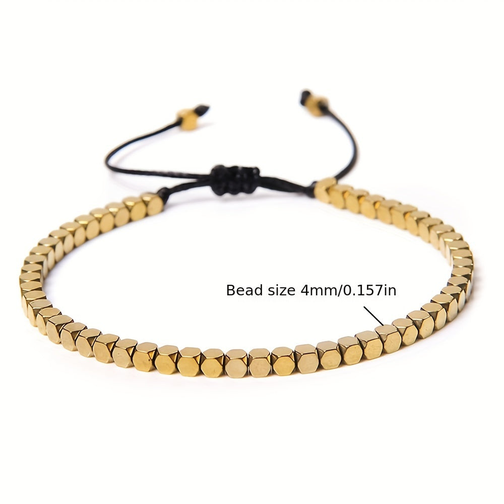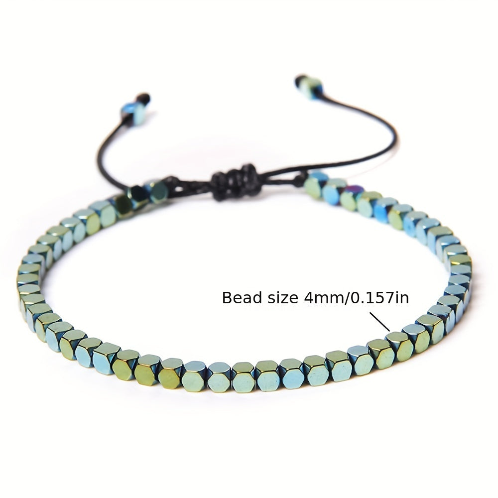 This stylish bracelet features braid design with electroplated hematite natural stone beads. It is adjustable to fit various wrist sizes, making it a versatile accessory for everyday wear or special occasions.