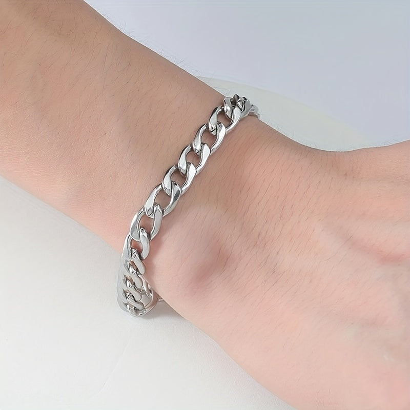 Add a touch of style to your outfit with this creative stainless steel bracelet. Perfect for holiday parties or as a gift for both men and women.