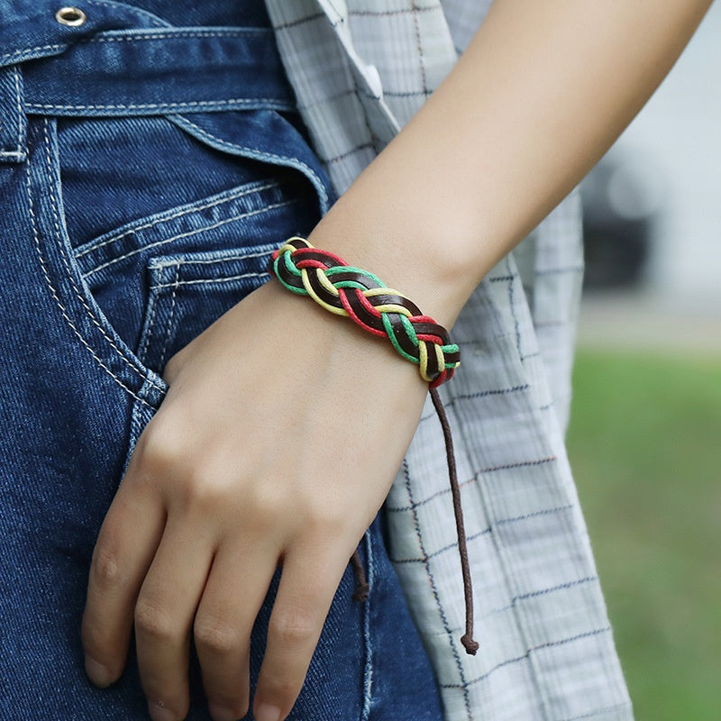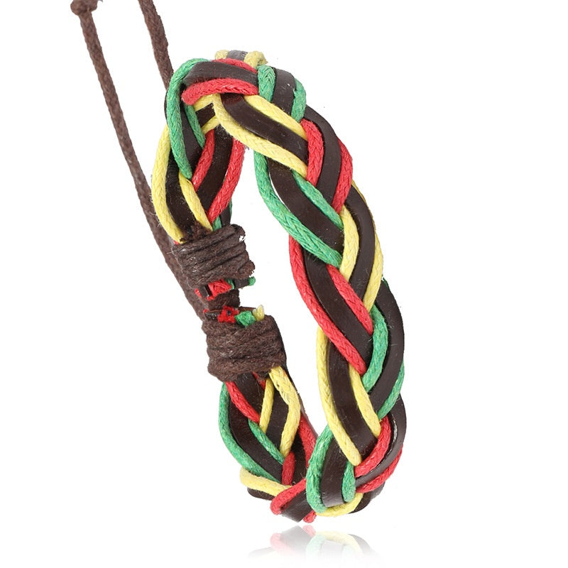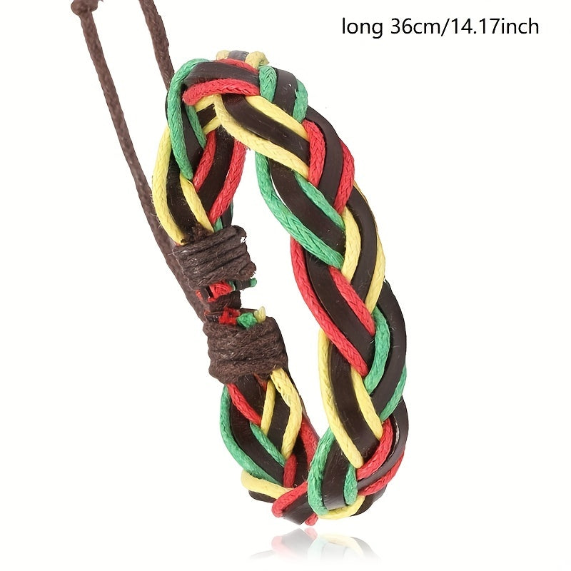 Add a touch of Jamaican style with this vintage braided cowhide bracelet for men, featuring the colors of the Jamaican flag.