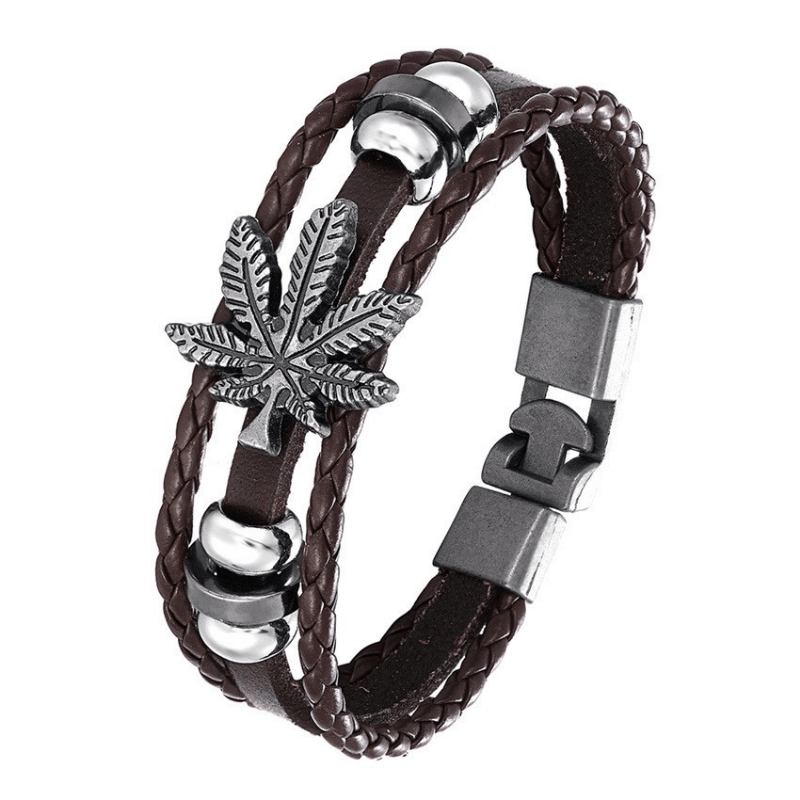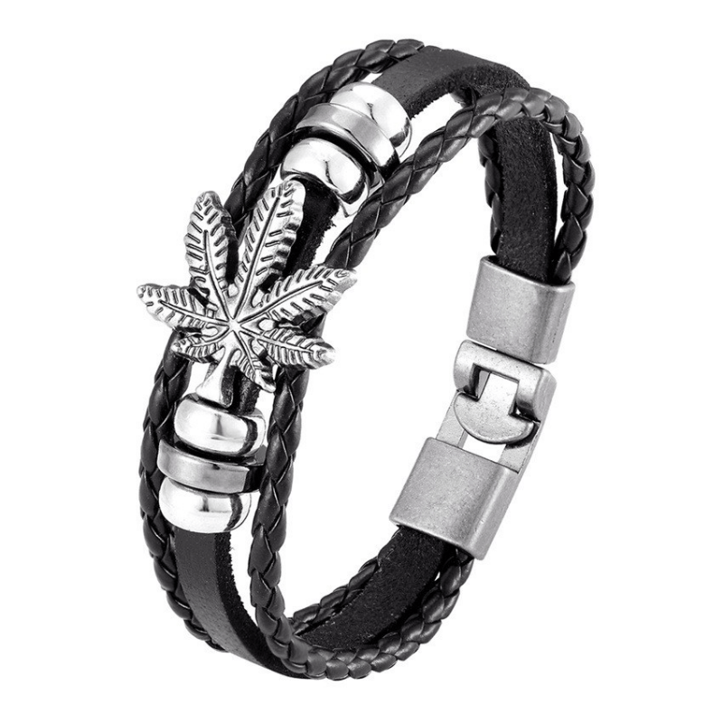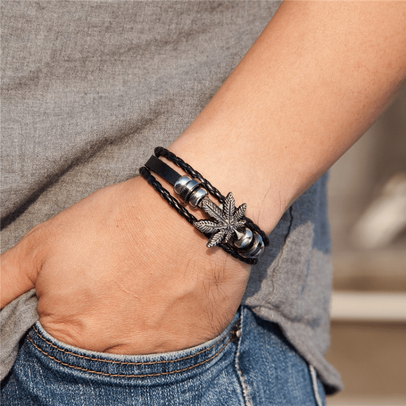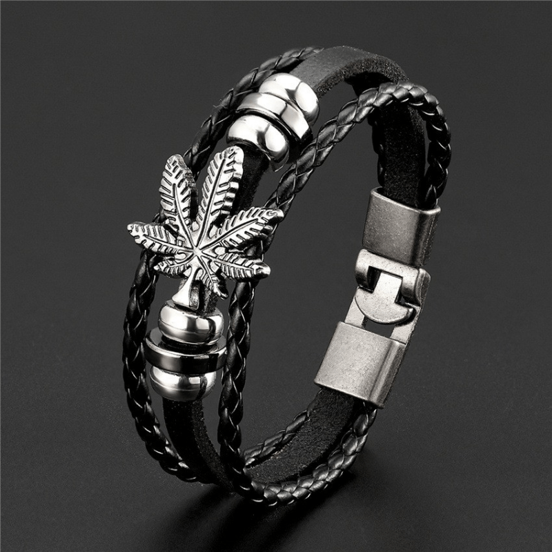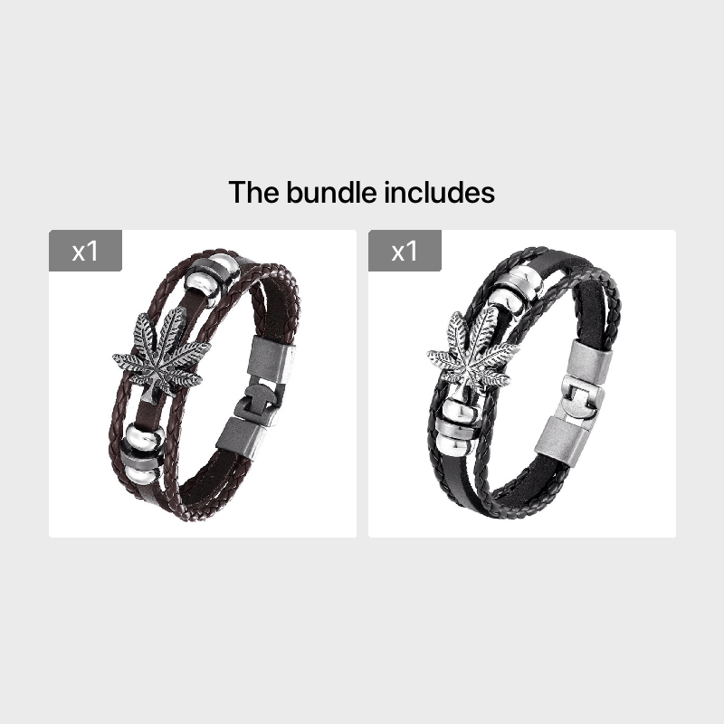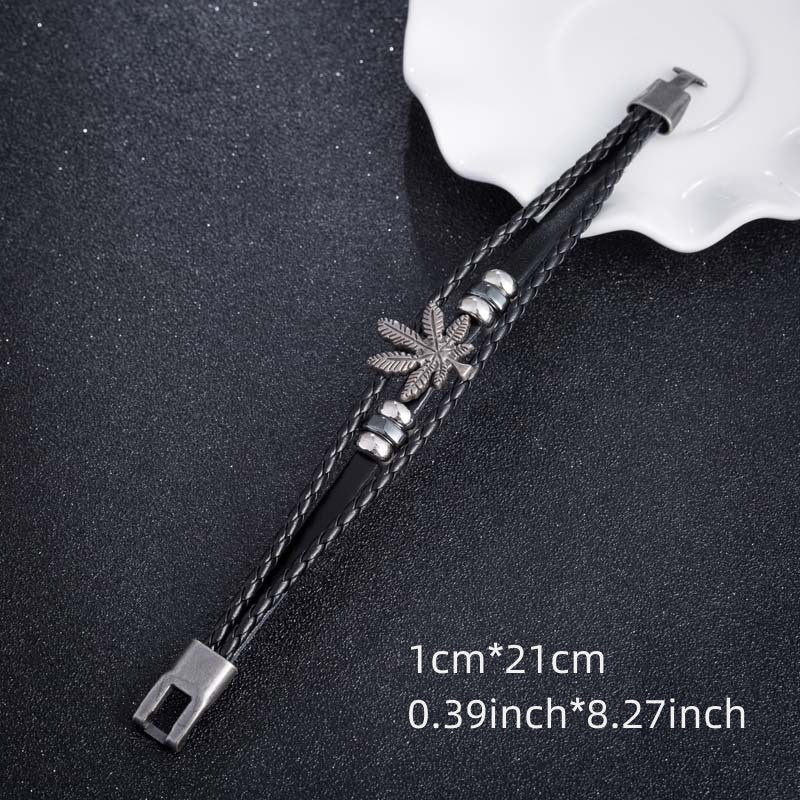 This stylish bracelet features a layered design with braided leather and retro leaf charm. It's a perfect accessory to complement your outfit.