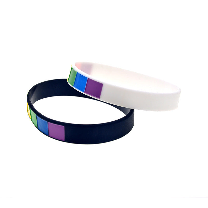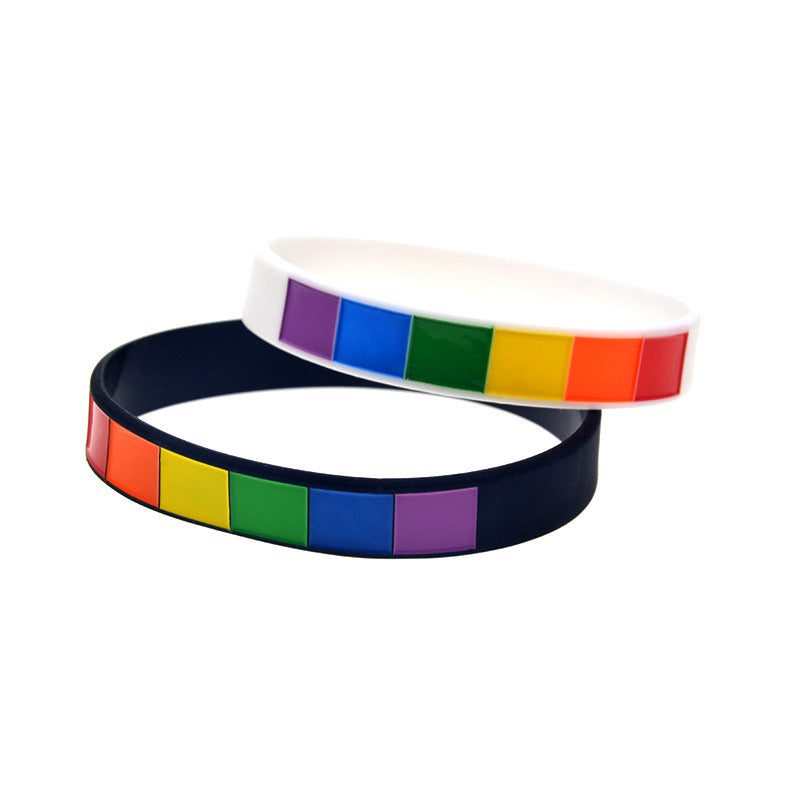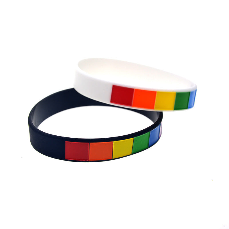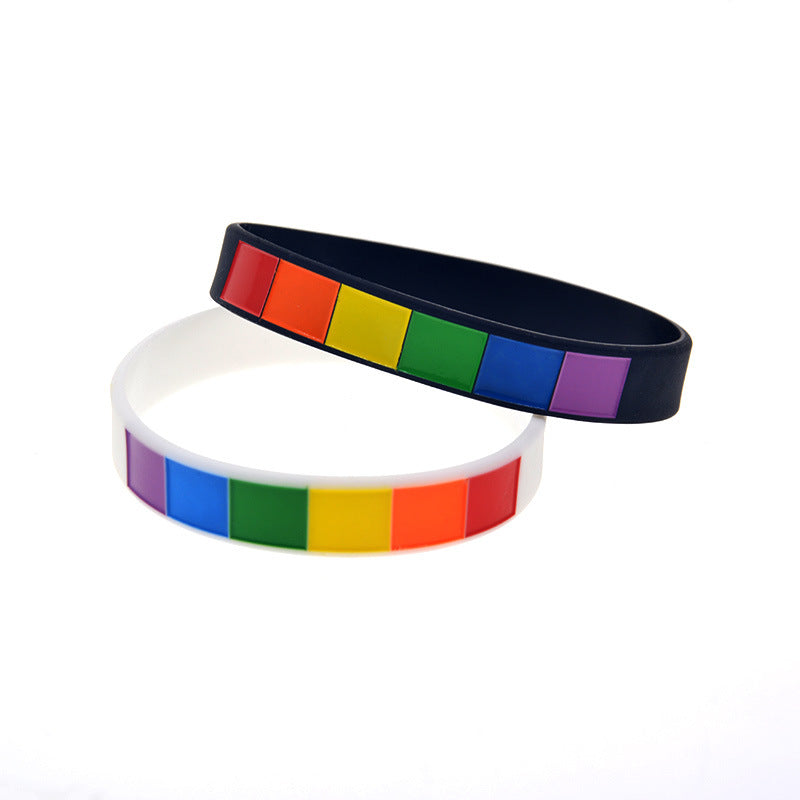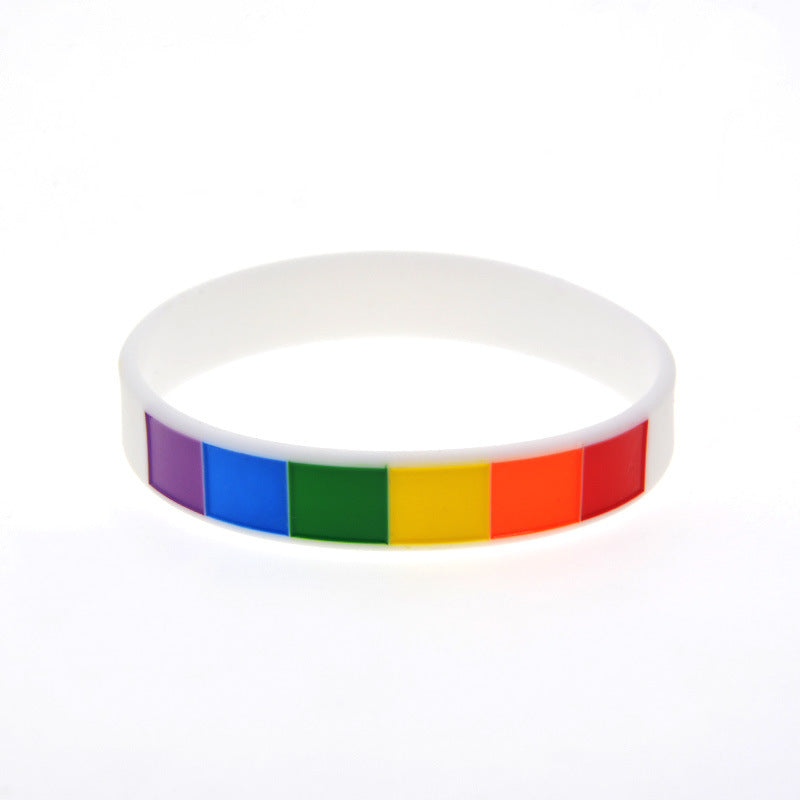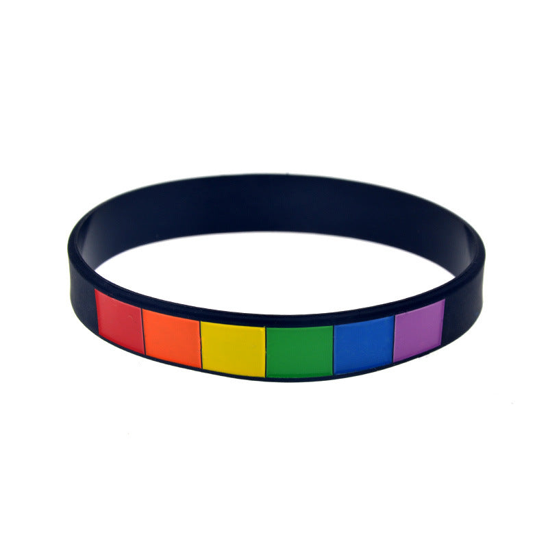 Show your support with this colorful LGBT silicone bracelet featuring the rainbow colors and a blank design. It's a perfect accessory to express pride and love.