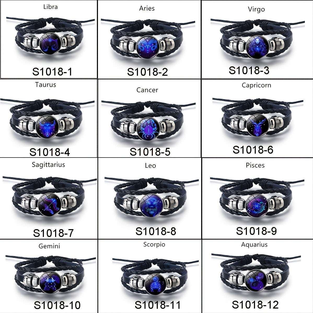 Illuminate your style with this stunning bracelet featuring all 12 zodiac signs. The glow-in-the-dark design adds a mystical touch to your look.
