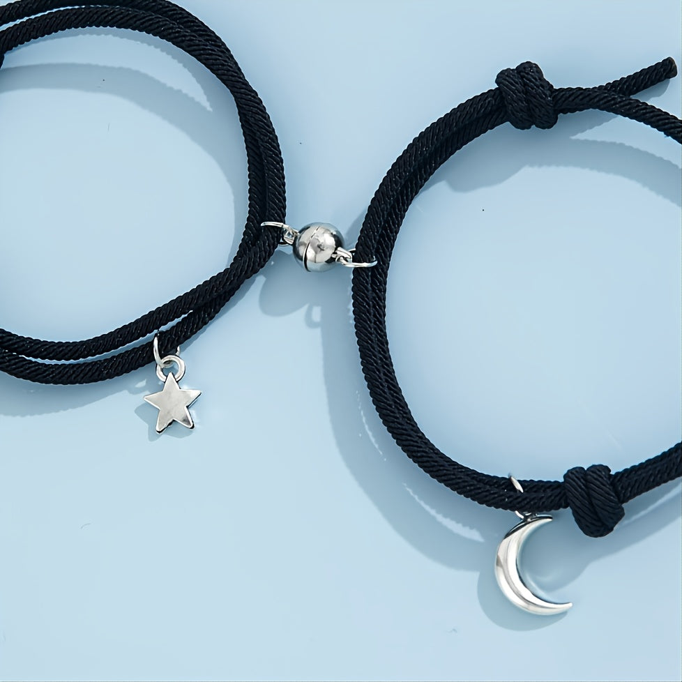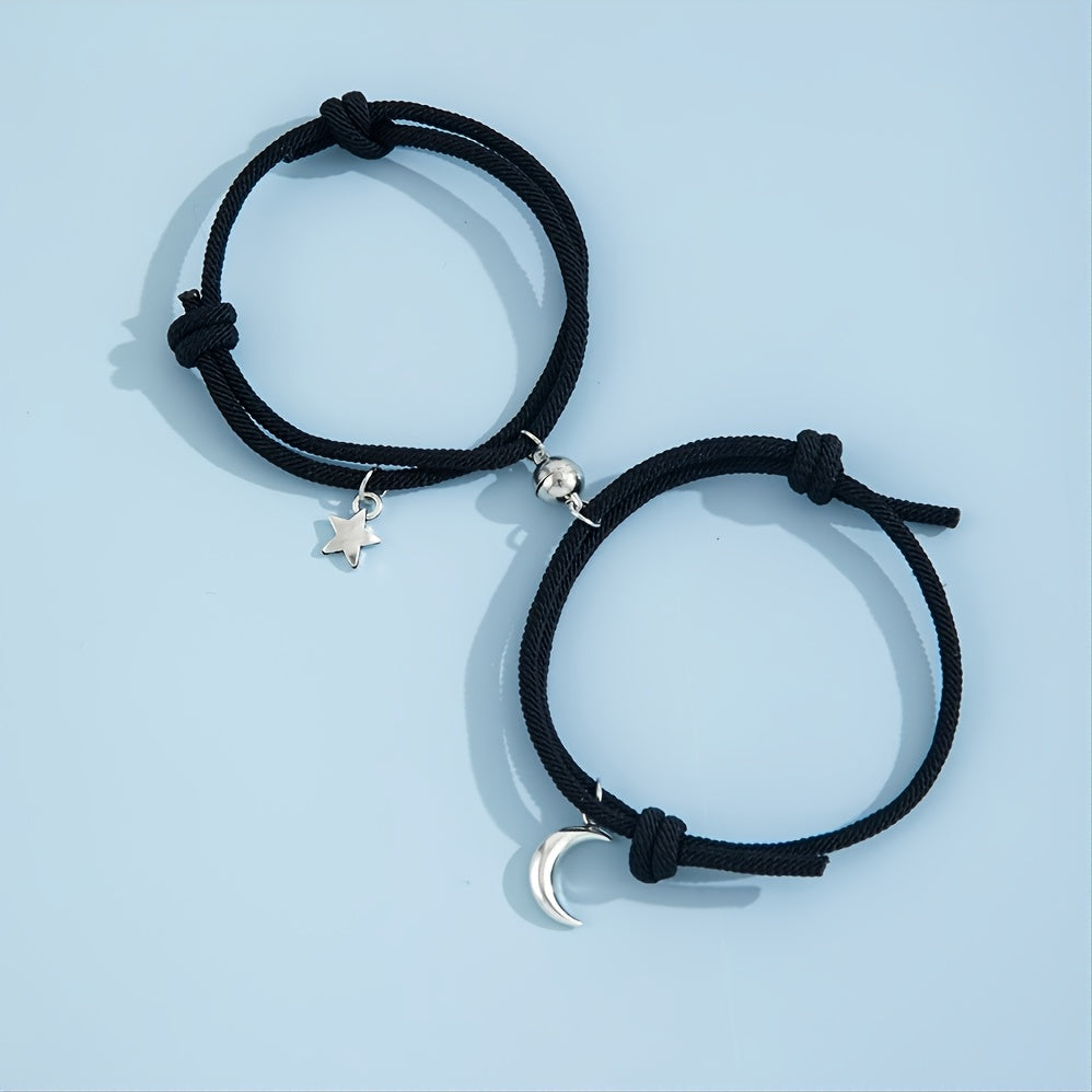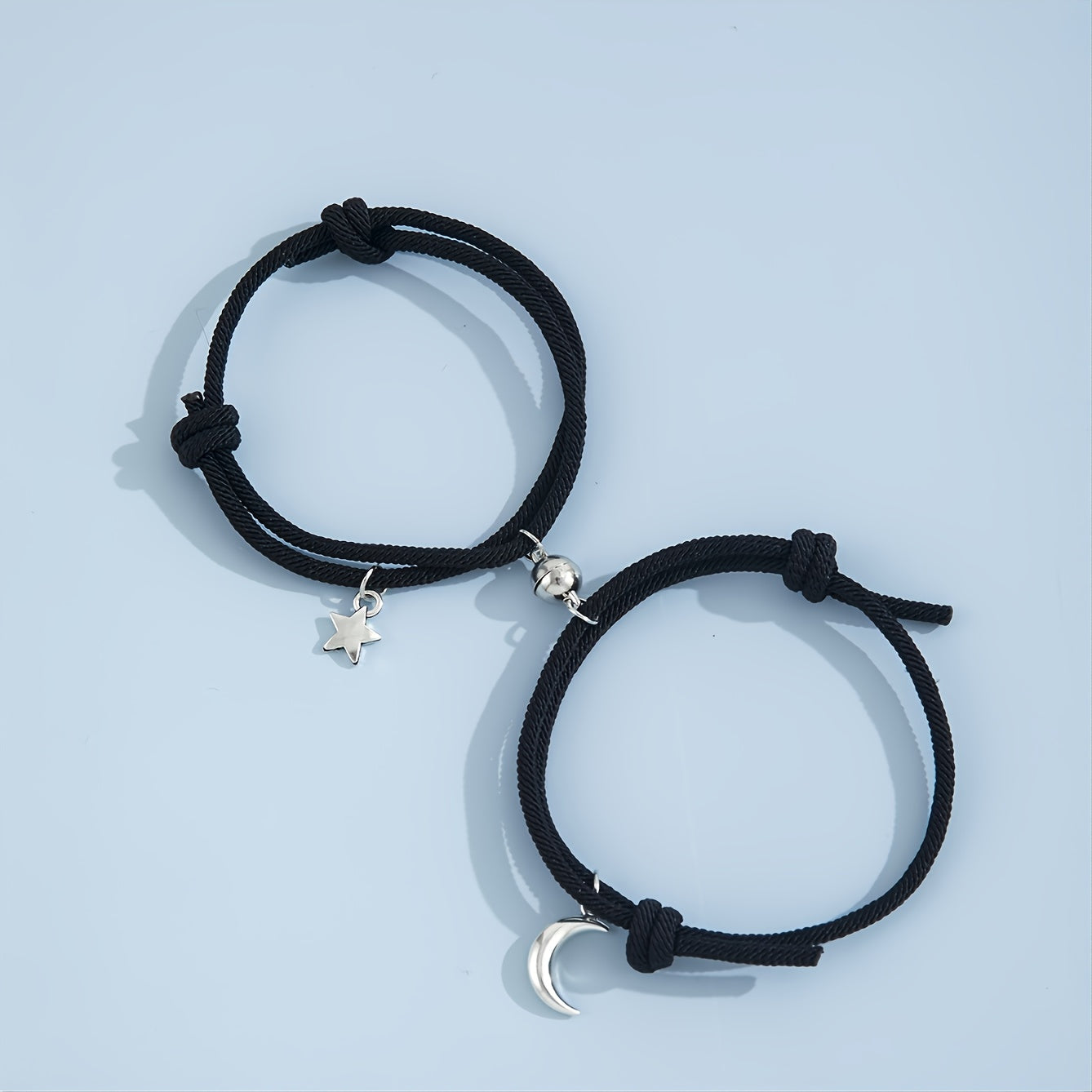 Magnet Star Moon Handwoven Couple Bracelet, Valentine&