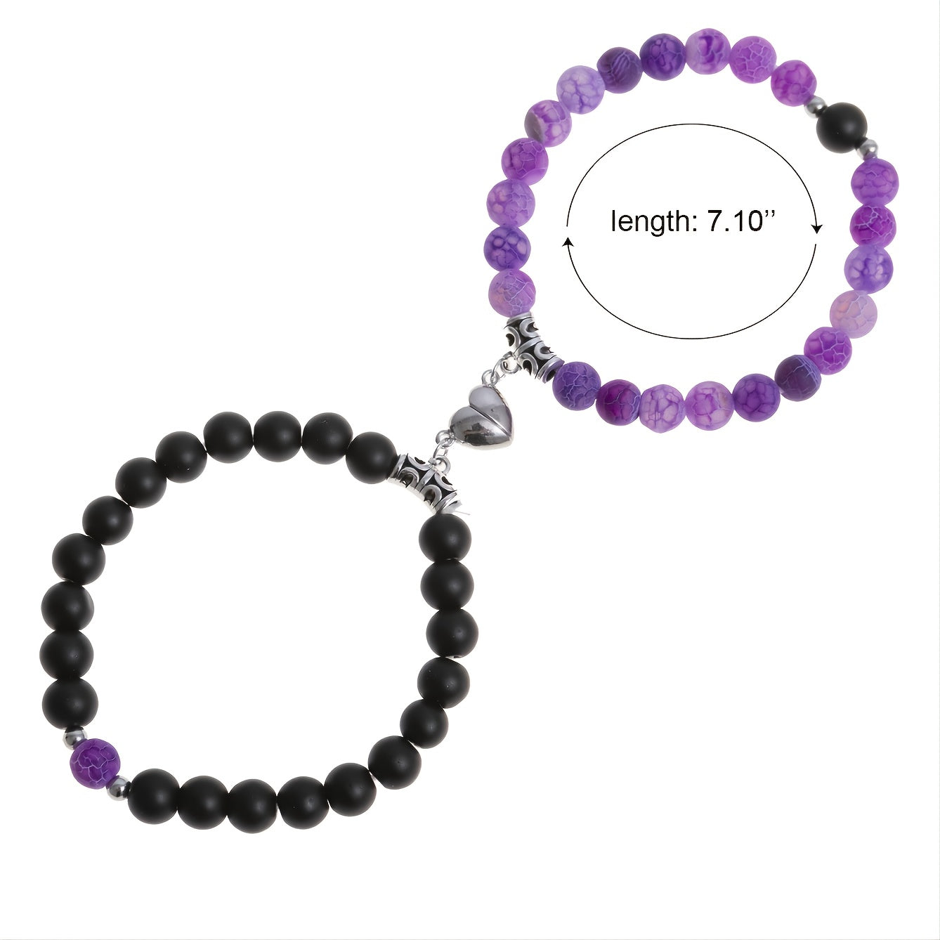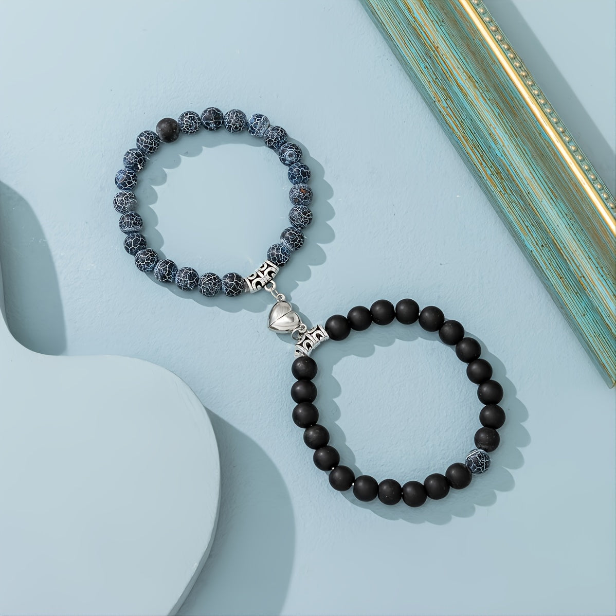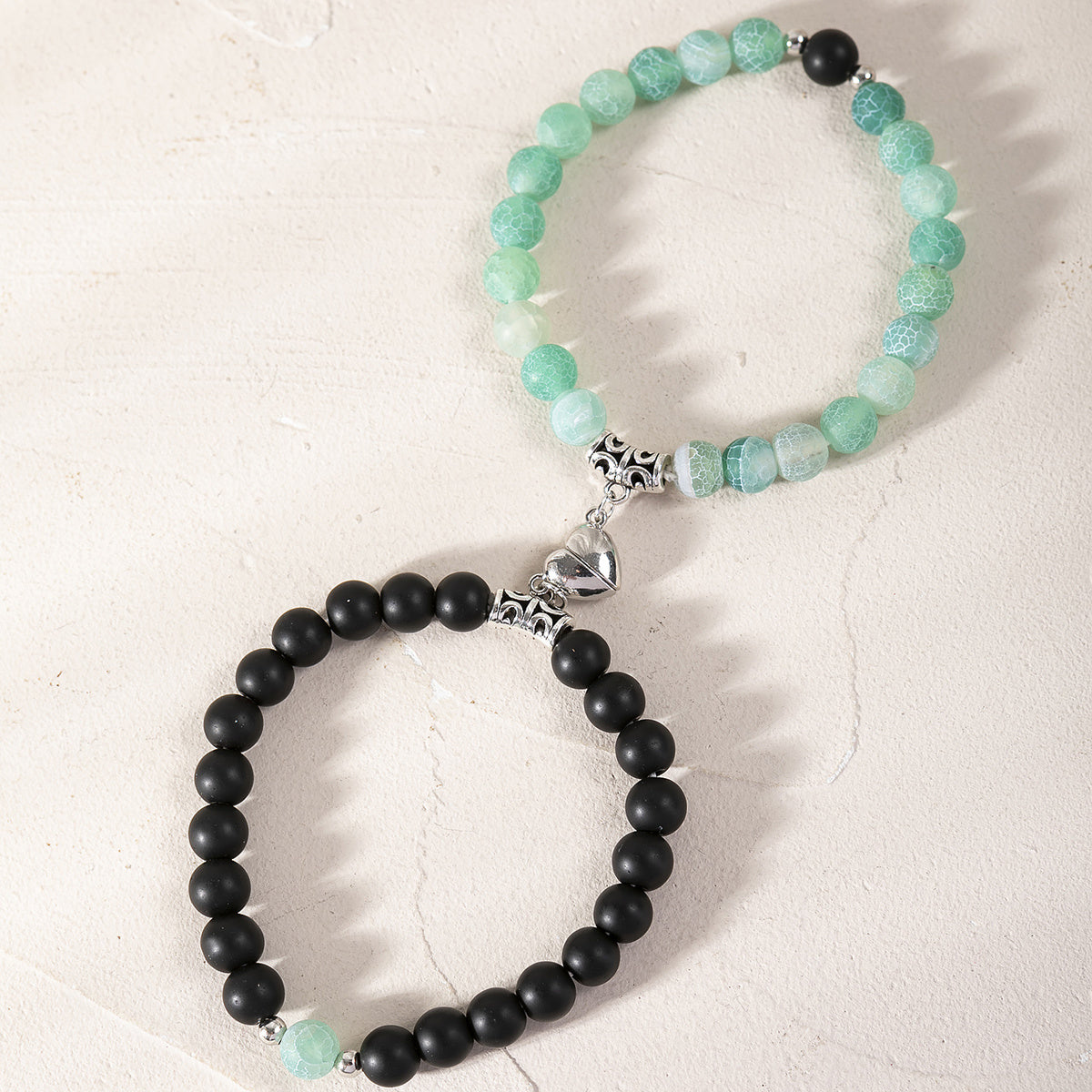 Magnetic Suction Beaded Bracelet Set - Heart Tone Couple Bracelet Set