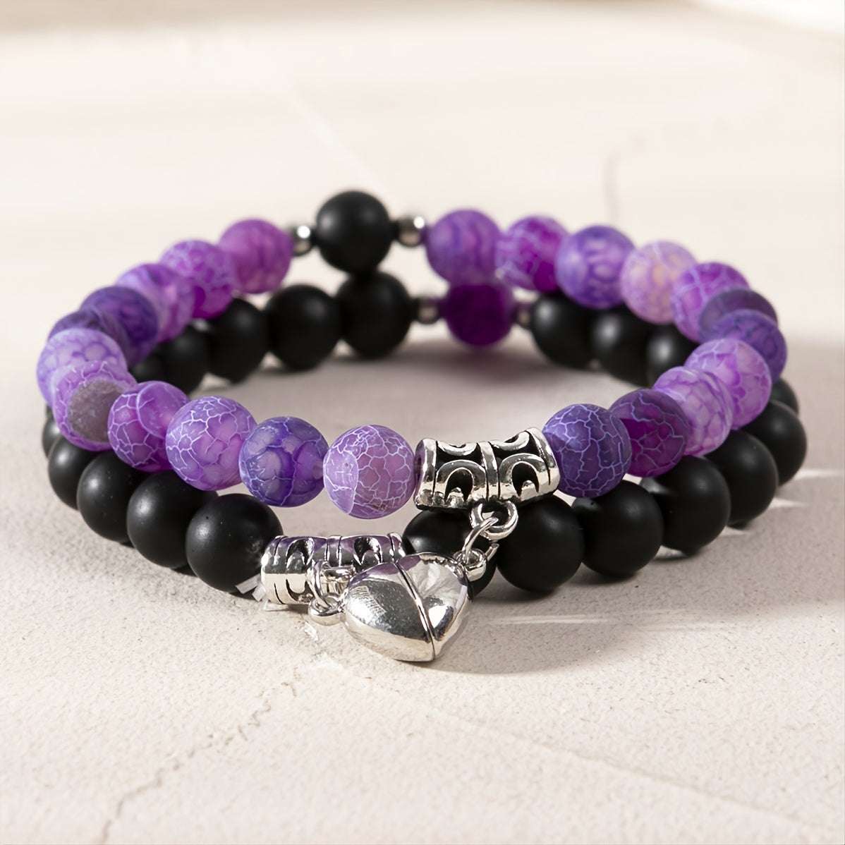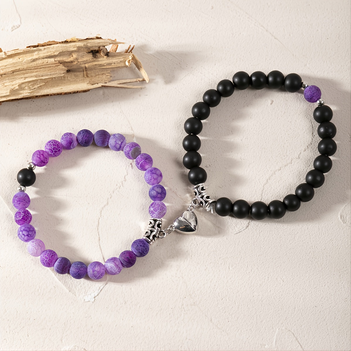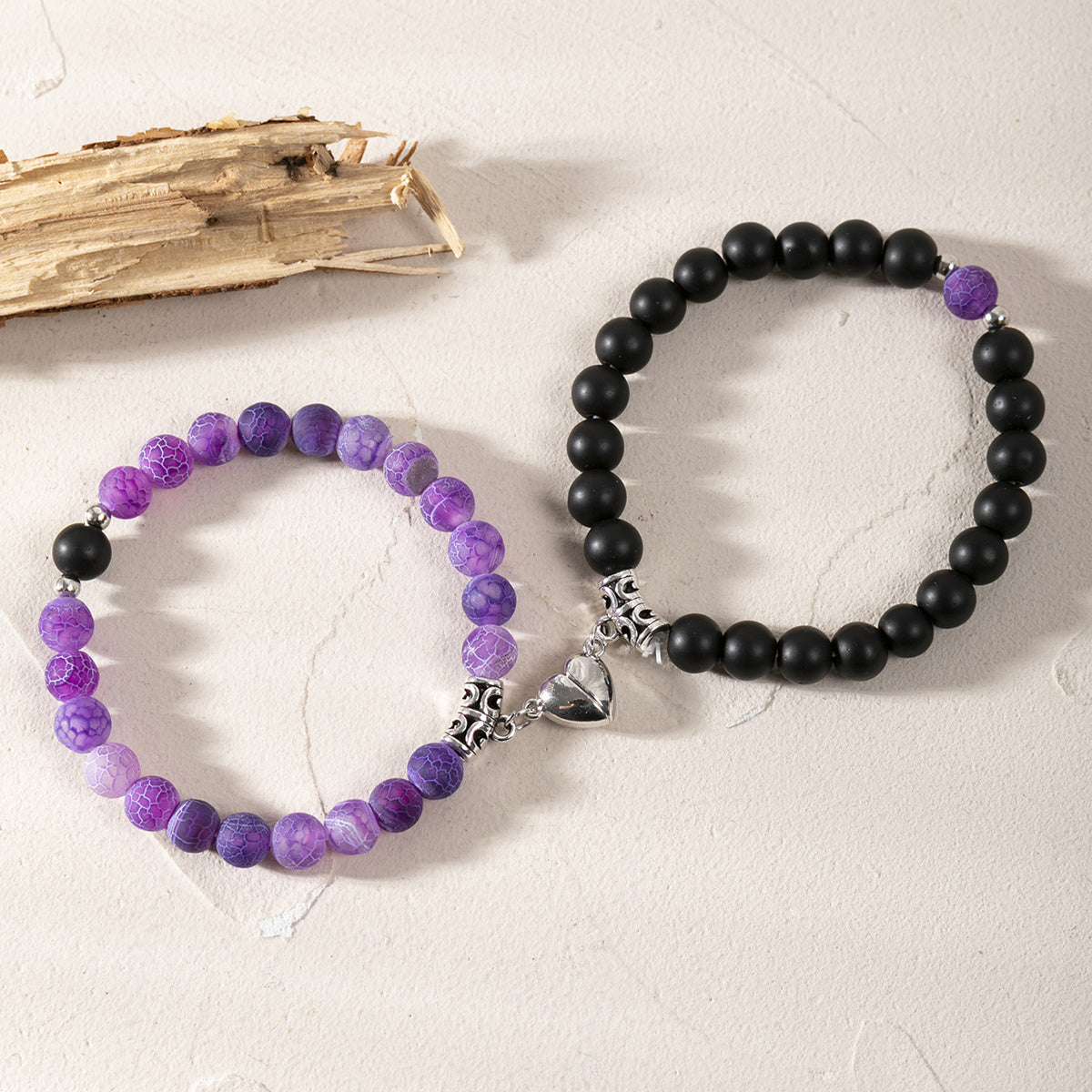 Magnetic Suction Beaded Bracelet Set - Heart Tone Couple Bracelet Set