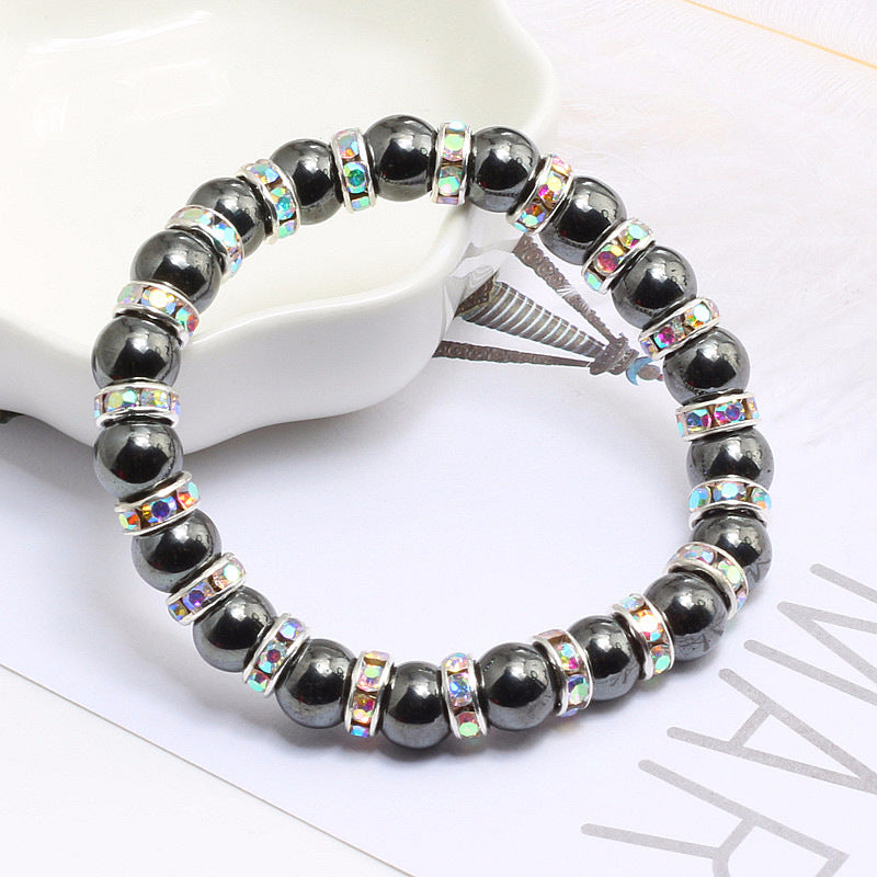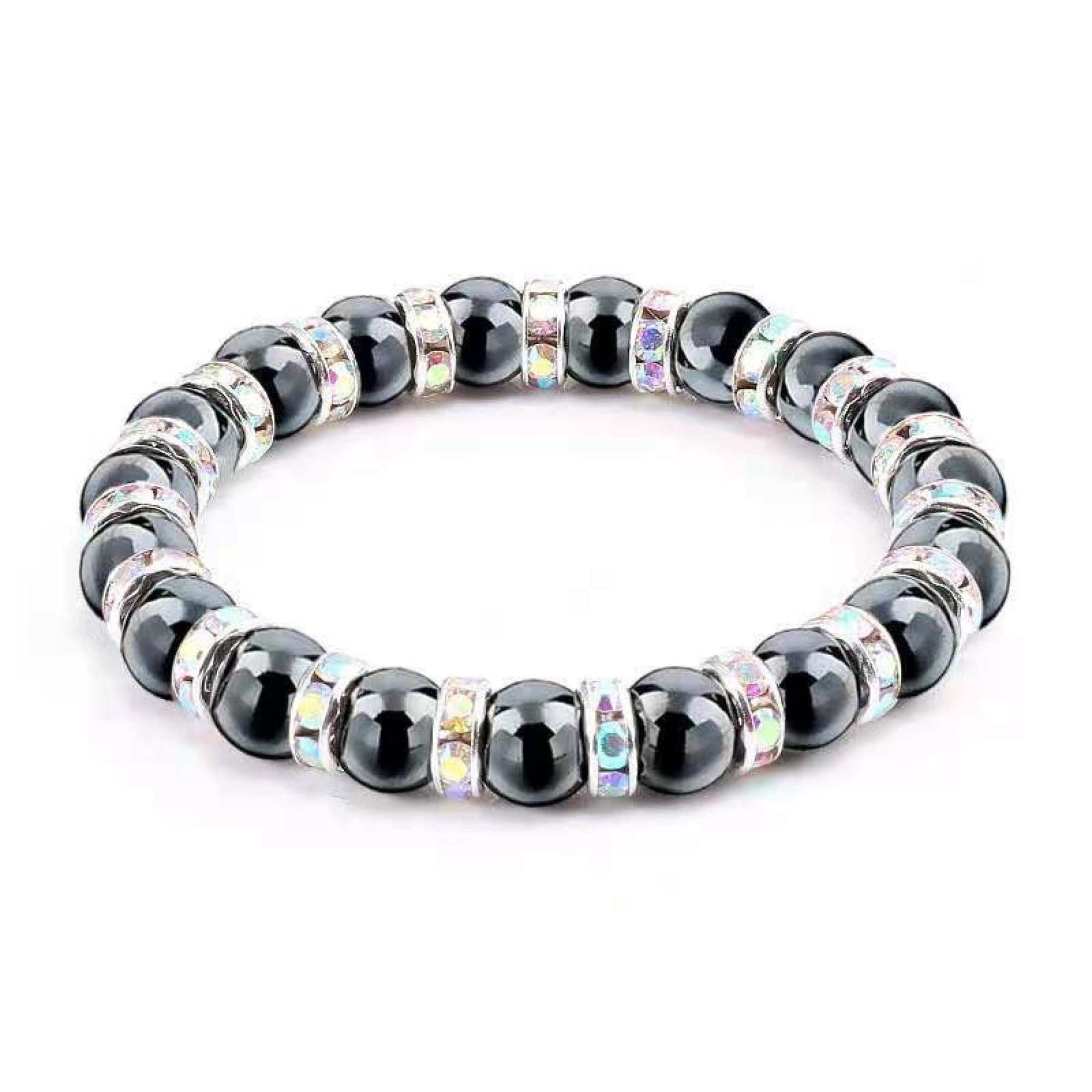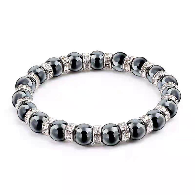 This magnetic therapy bracelet is designed to help with weight loss and promote overall well-being. It features hematite stones and a stretch design that fits both men and women.