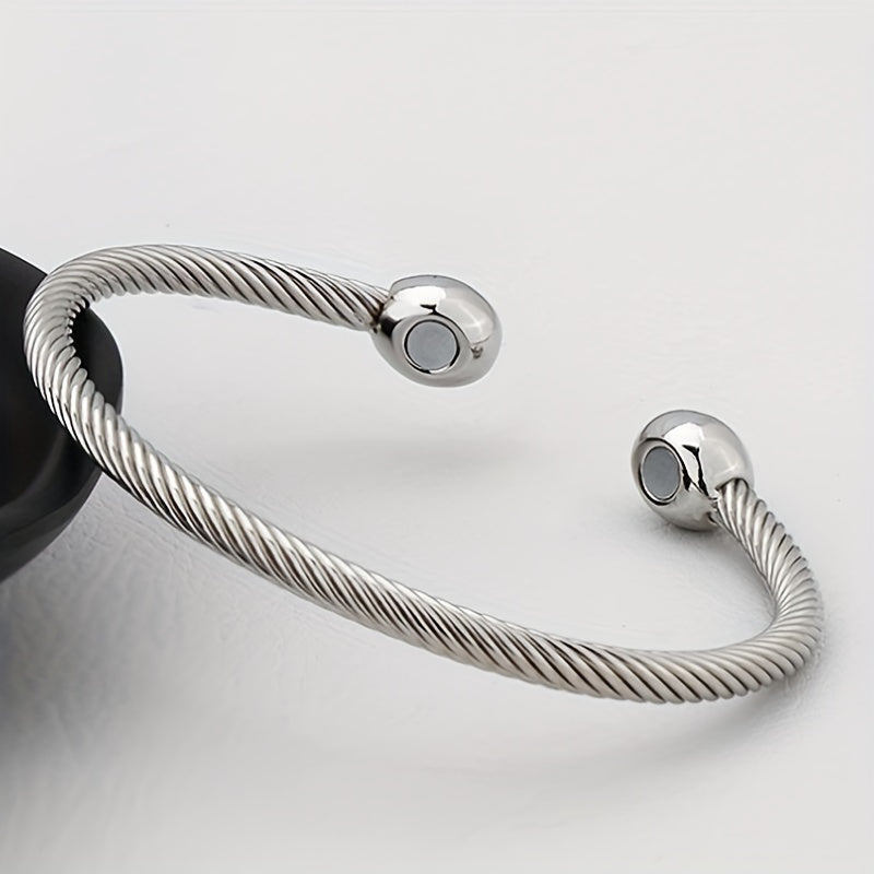 This magnetic bracelet features an open design and twisted pattern, suitable for both men and women. The creative and stylish design makes it a perfect accessory.