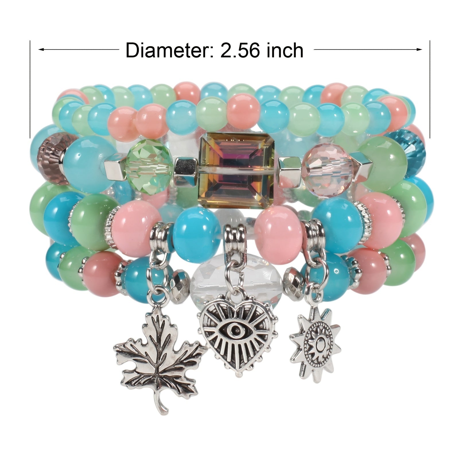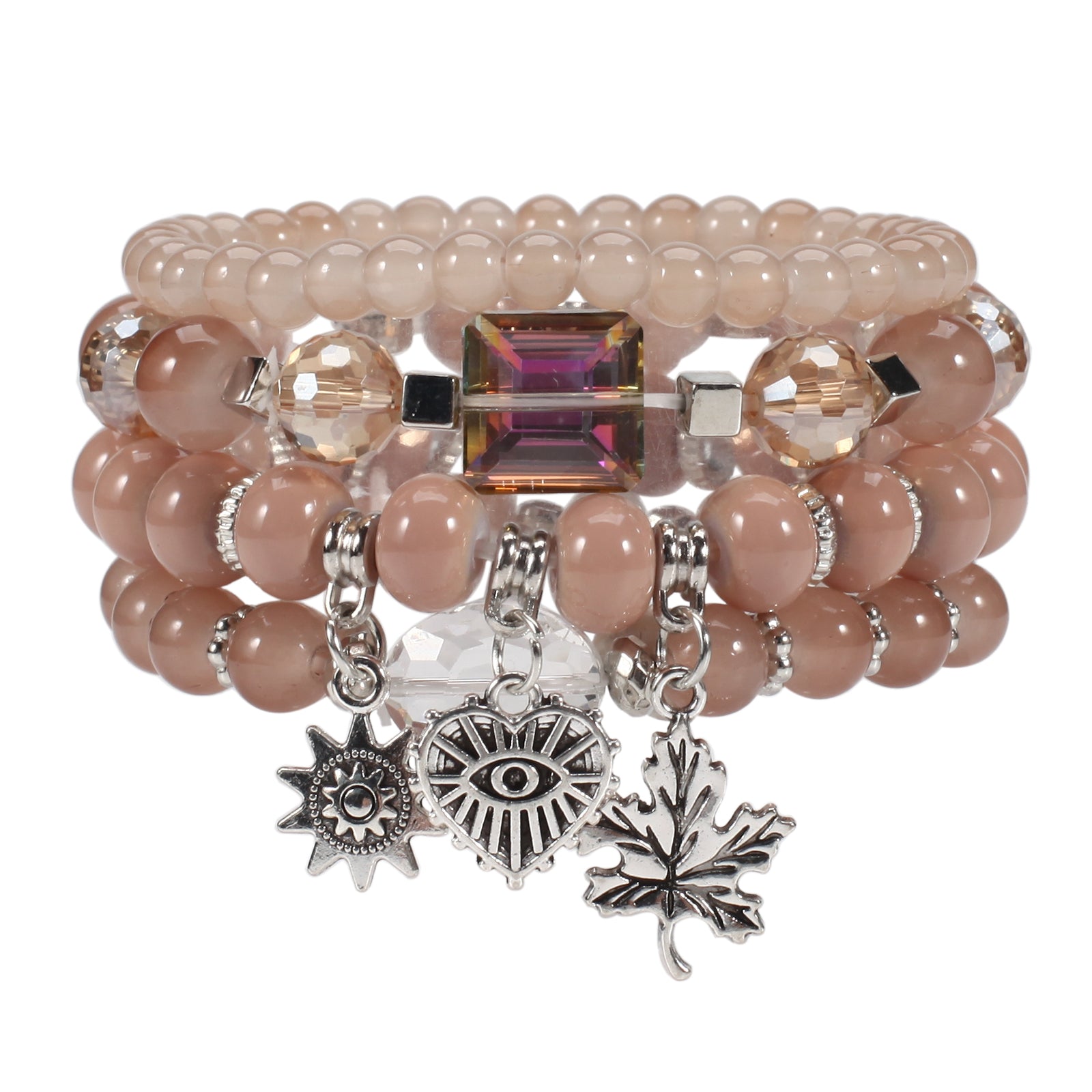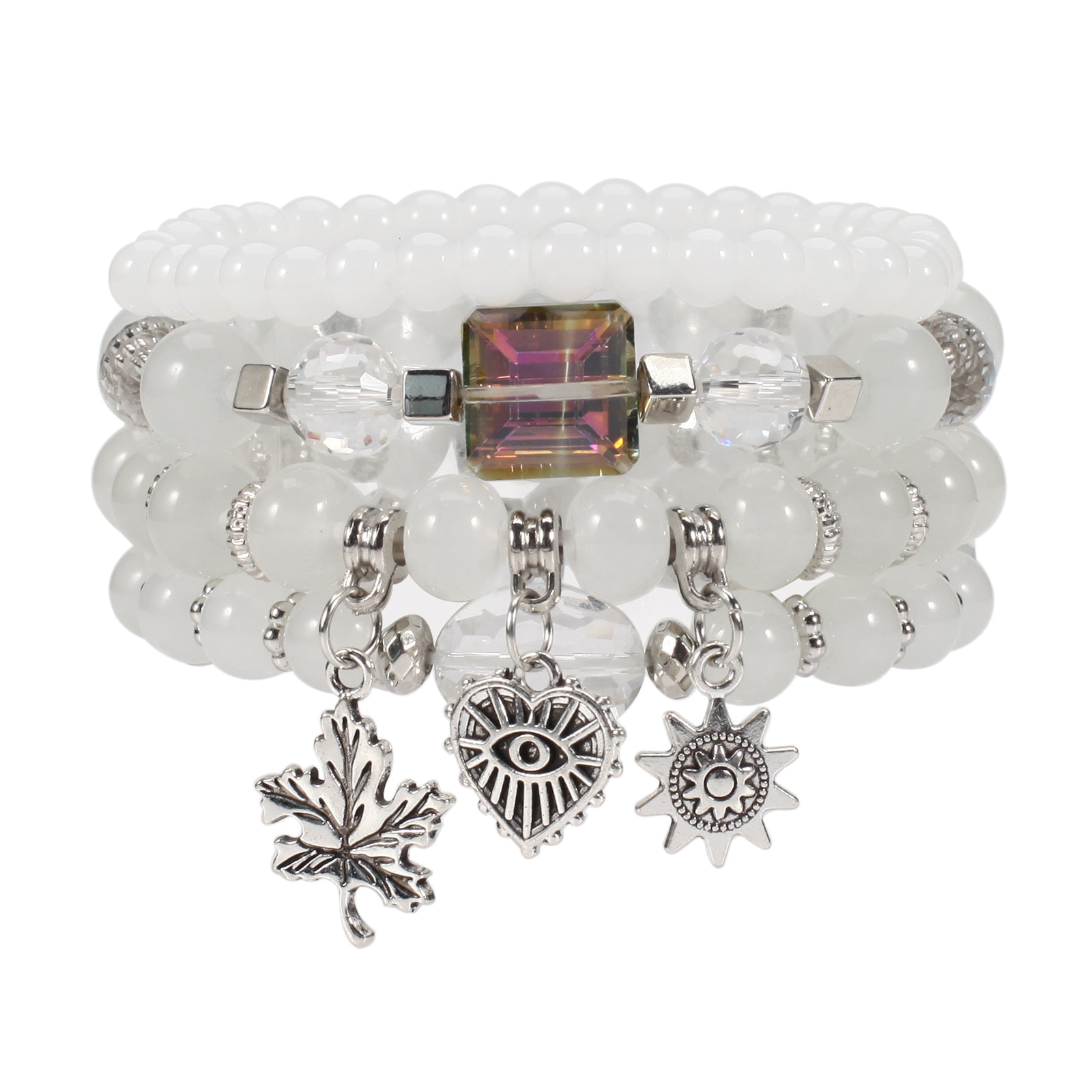 Add a touch of summer beach vibes with this stackable beaded bracelet featuring a maple leaf and heart pendant. Perfect accessory for boho clothing and a great gift for Valentine's Day.