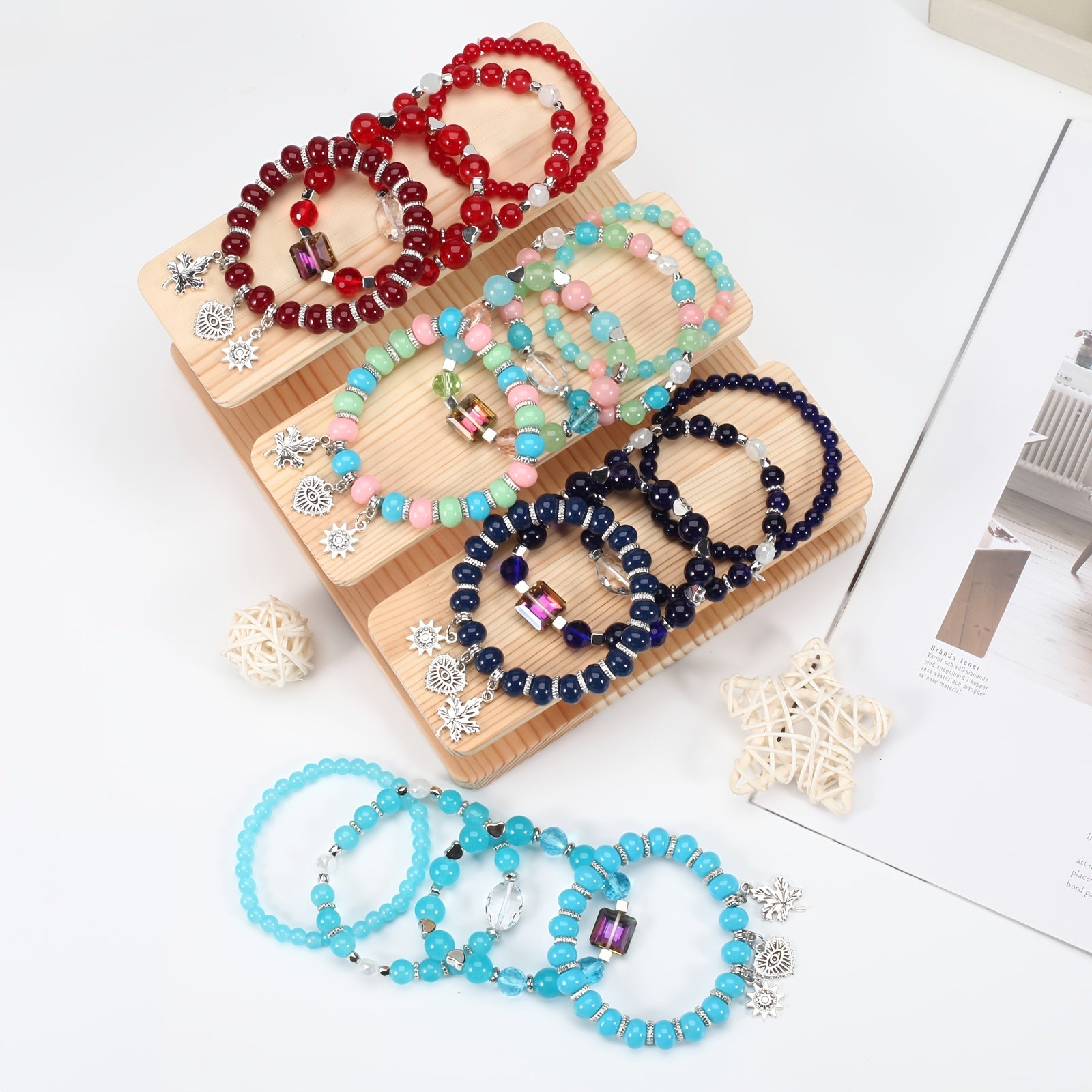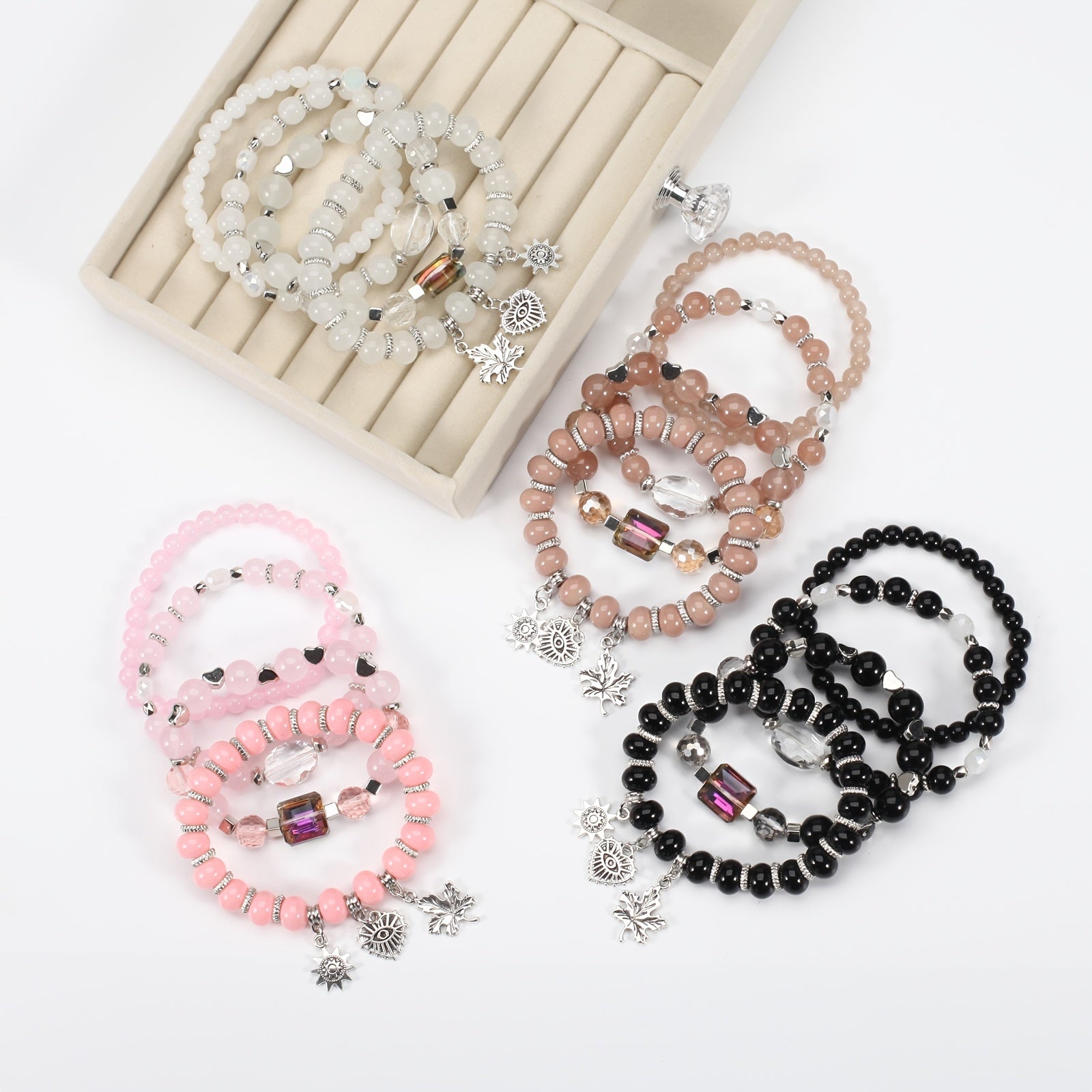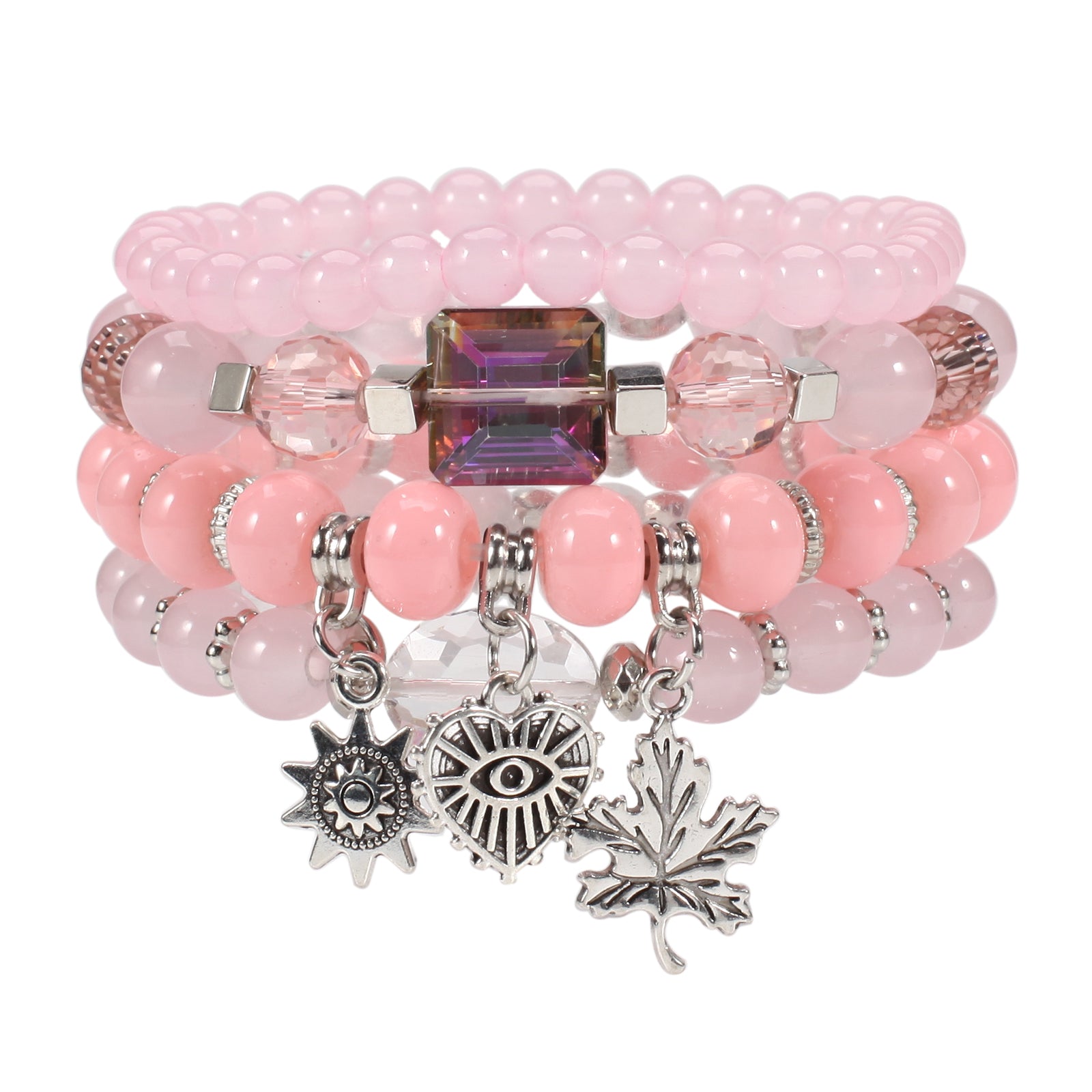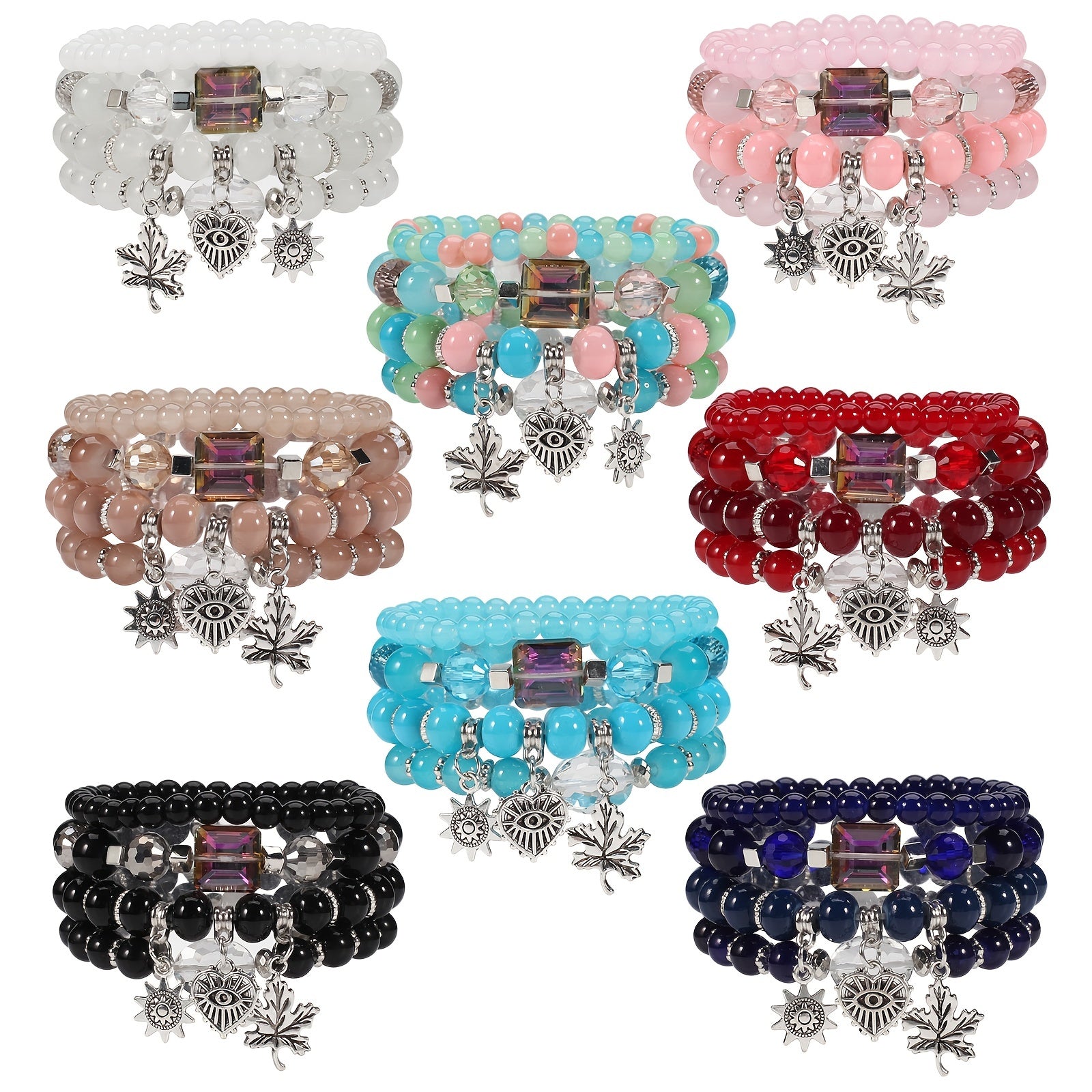 Add a touch of summer beach vibes with this stackable beaded bracelet featuring a maple leaf and heart pendant. Perfect accessory for boho clothing and a great gift for Valentine's Day.