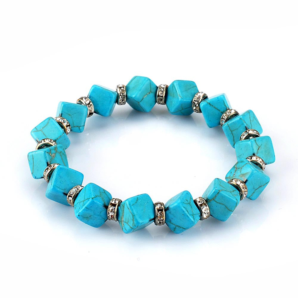 This marbling beaded bracelet features multiple shapes of faux turquoise pearls. It is a stretchable bracelet that brings good luck and is perfect as a gift for friends or lovers.