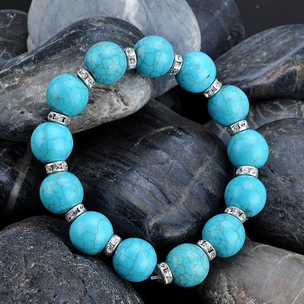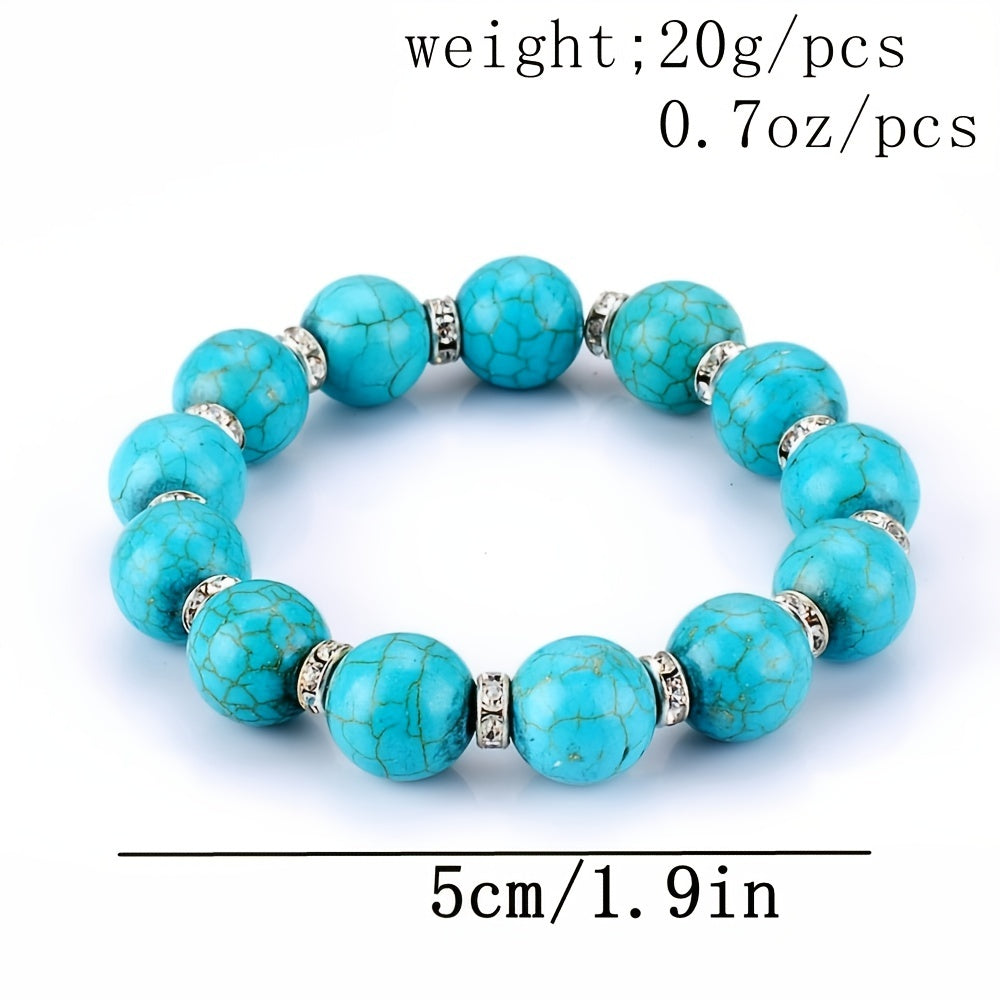 Marbling Beaded Bracelet Faux Turquoise Pearls Stretchable Good Luck Jewelry
