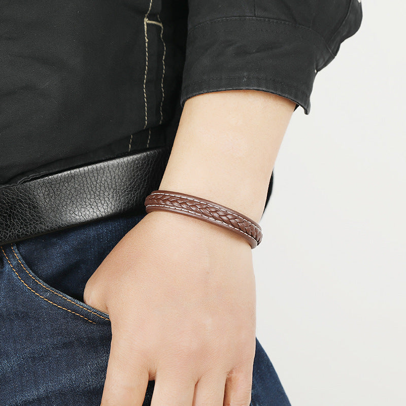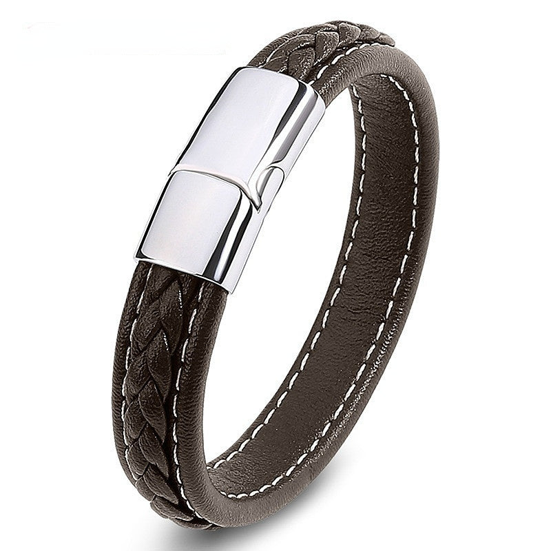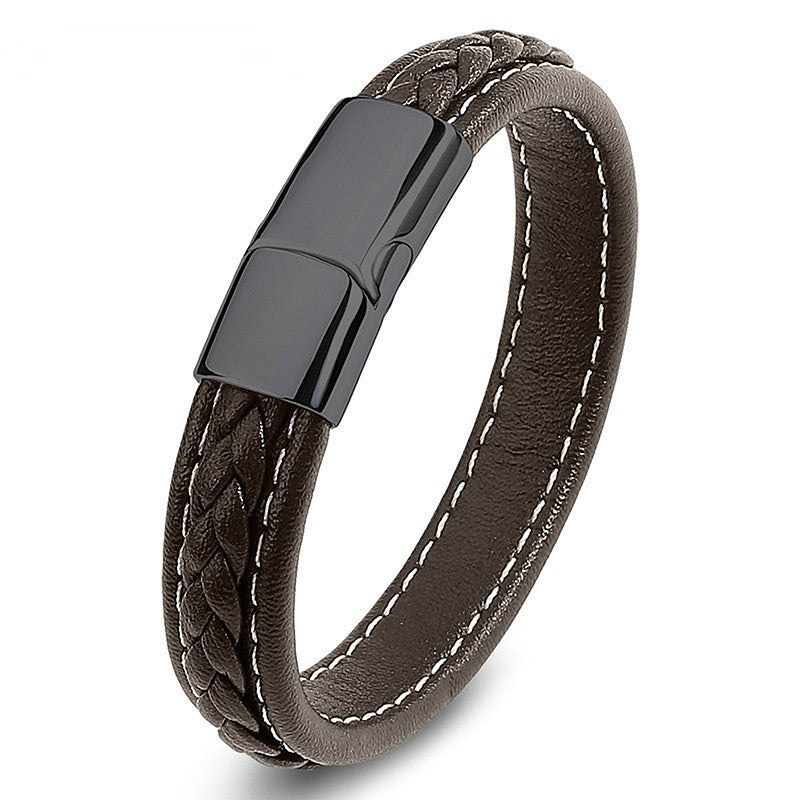 This braided leather bracelet features a magnetic buckle and is perfect for men who love punk jewelry. Makes a great gift idea.